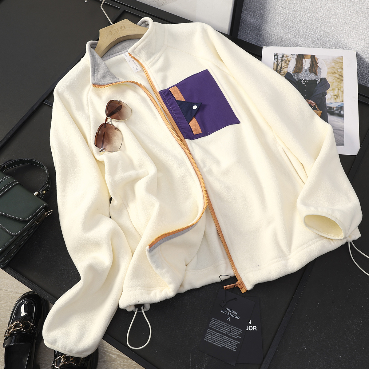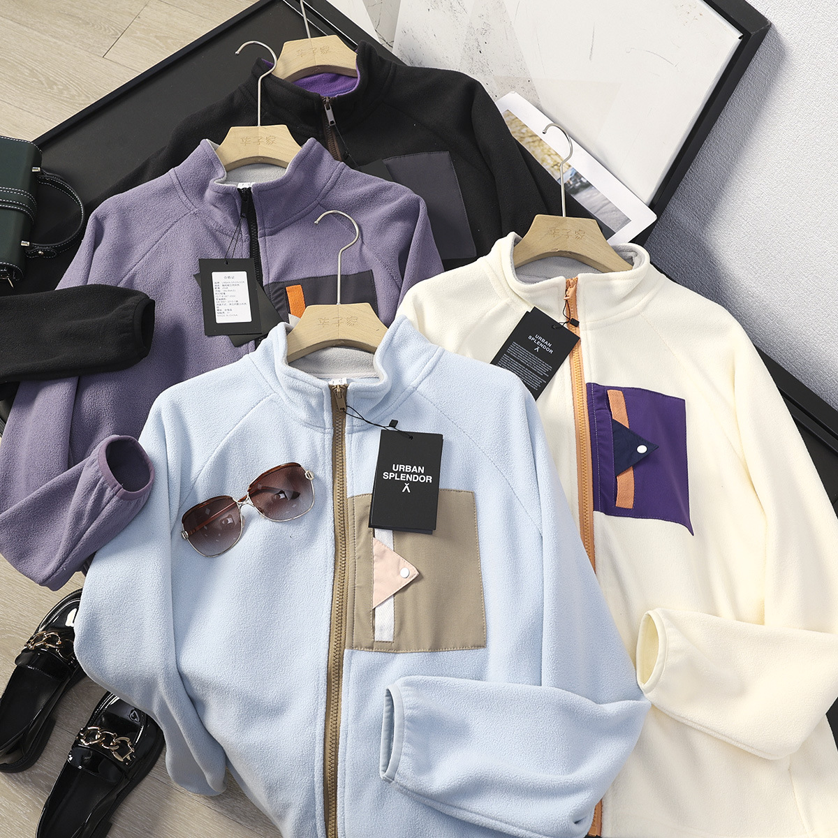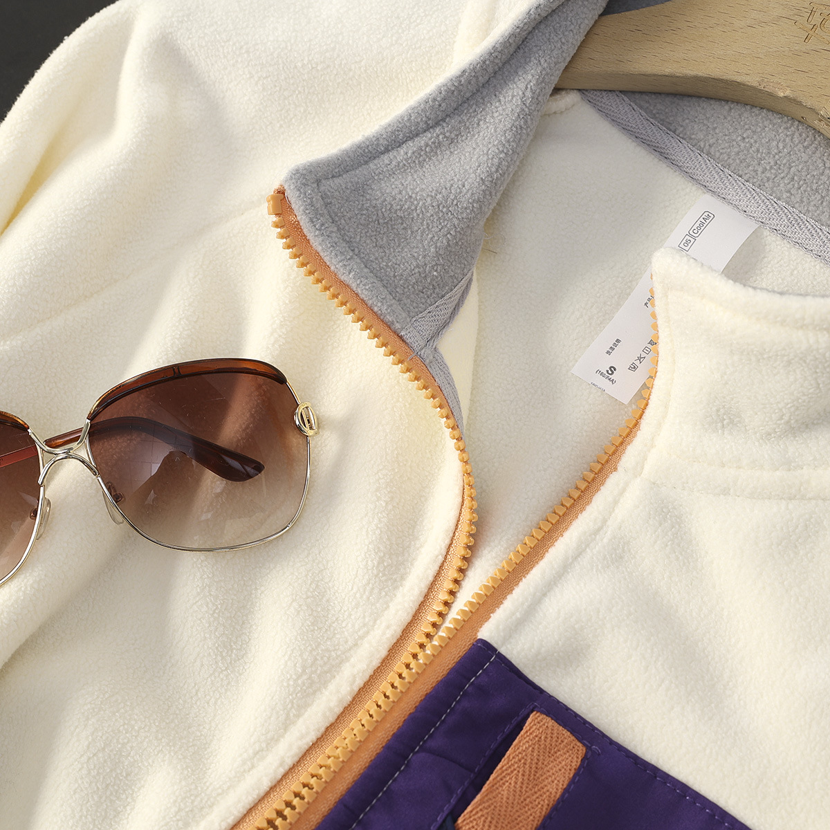 配色好看!2025男女同款云朵绒摇粒绒外套设计感撞色口袋保暖抓绒衣夹克! 商品图3