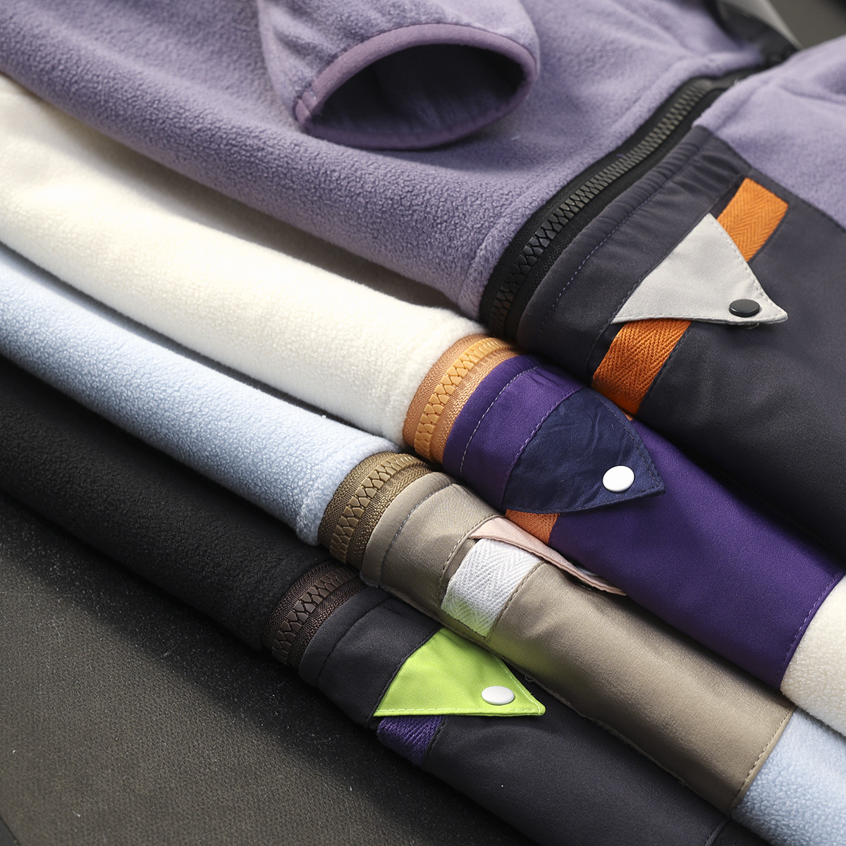 配色好看!2025男女同款云朵绒摇粒绒外套设计感撞色口袋保暖抓绒衣夹克!