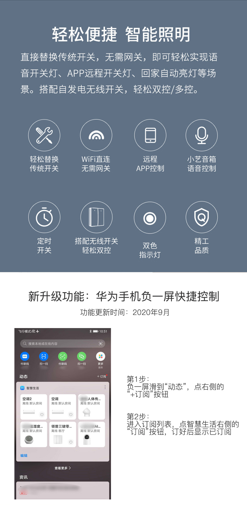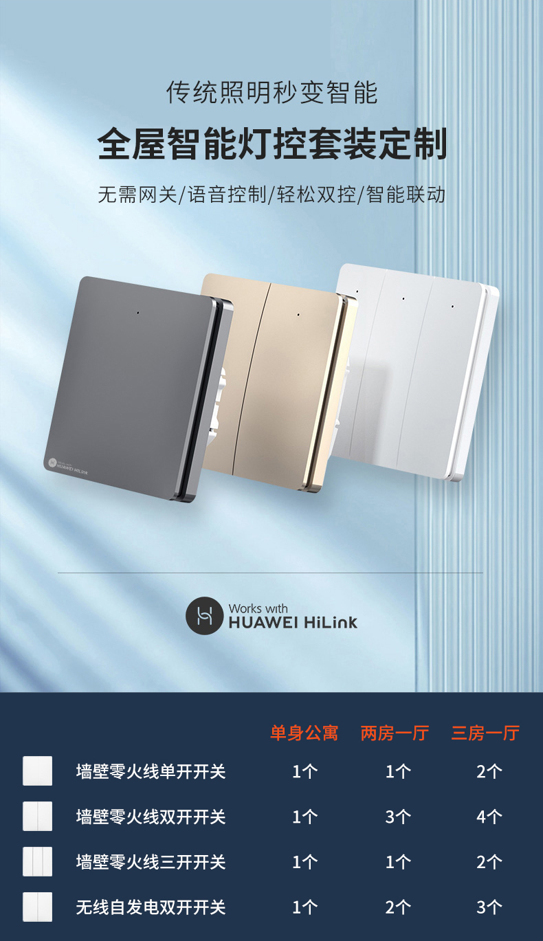 华为智能家居 全屋灯光墙壁开关控制套装定制丨语音定时远程操控