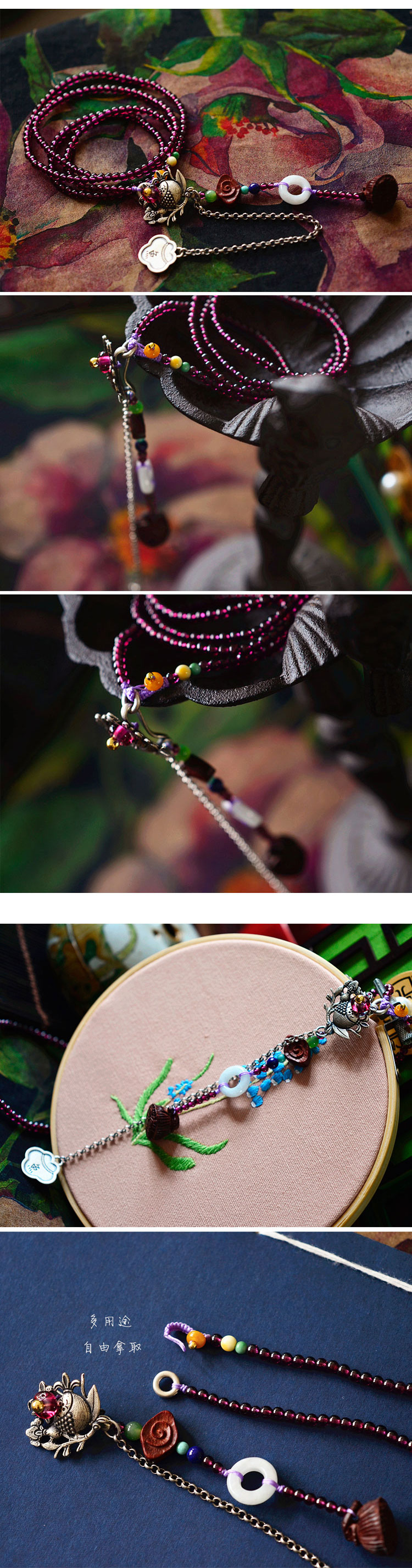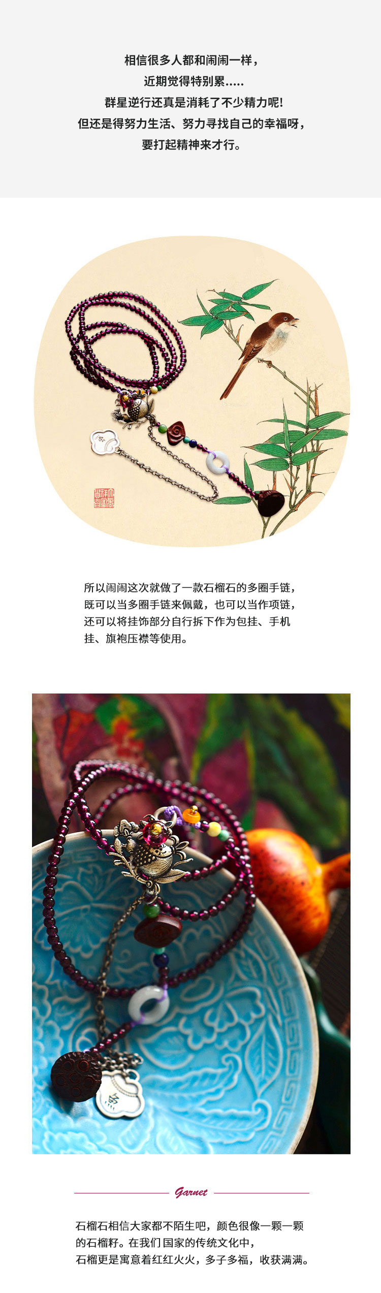 一物多用石榴石多圈手链一物多用包挂手机挂压襟