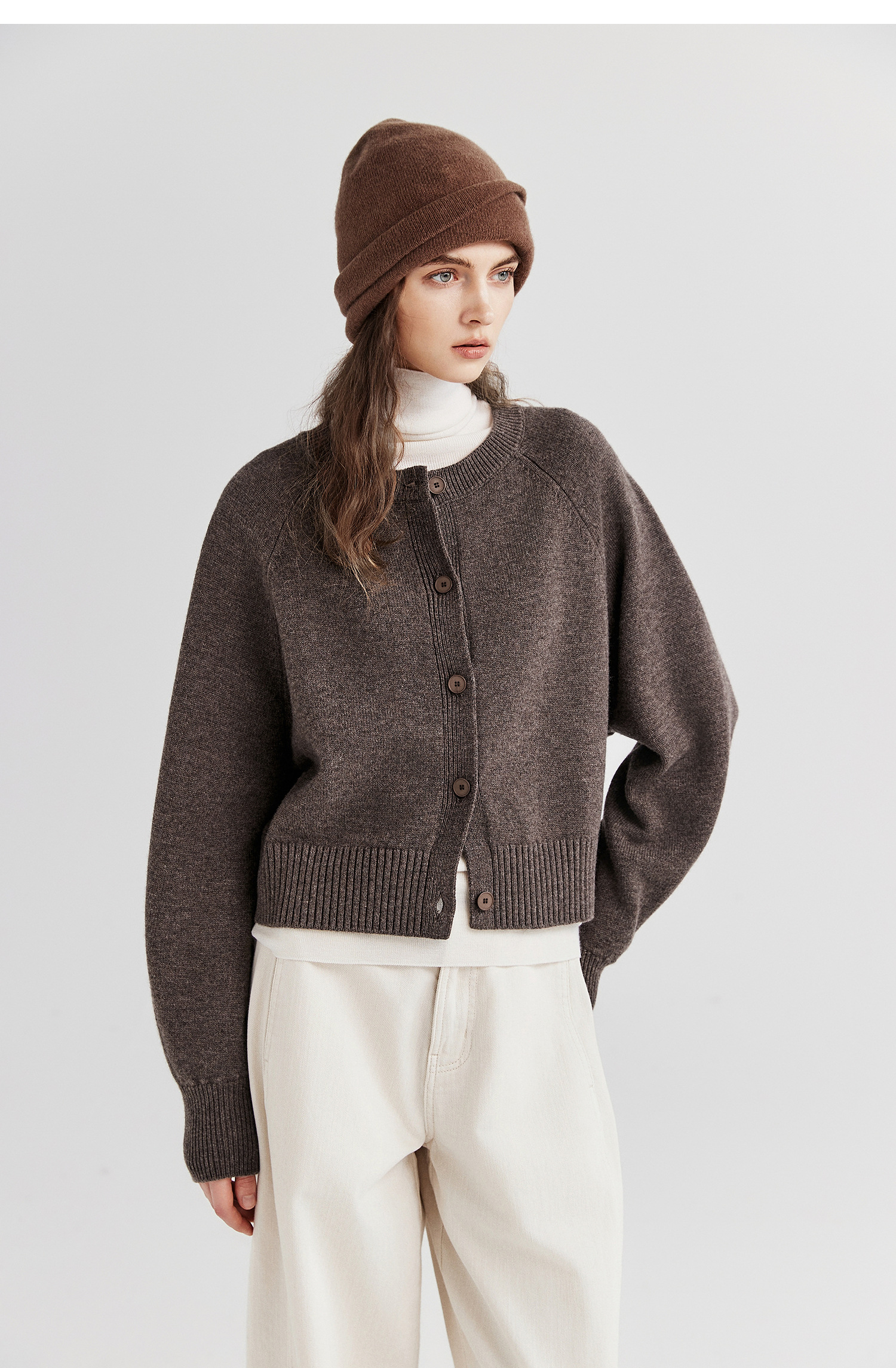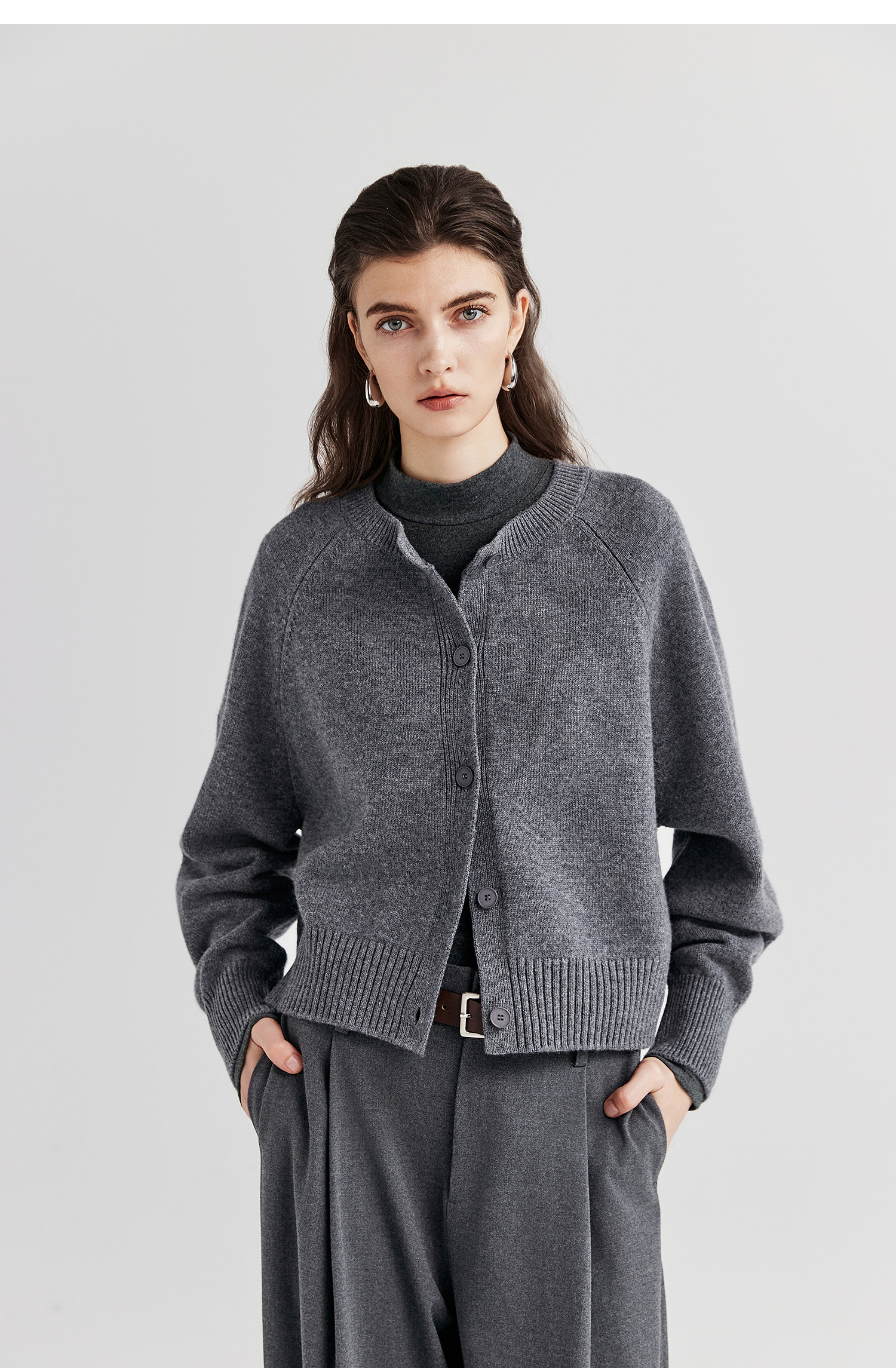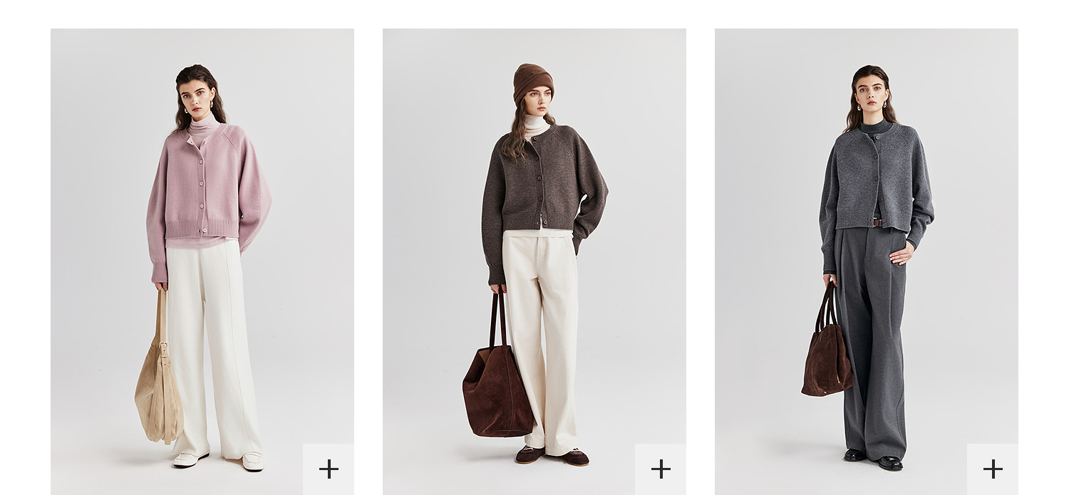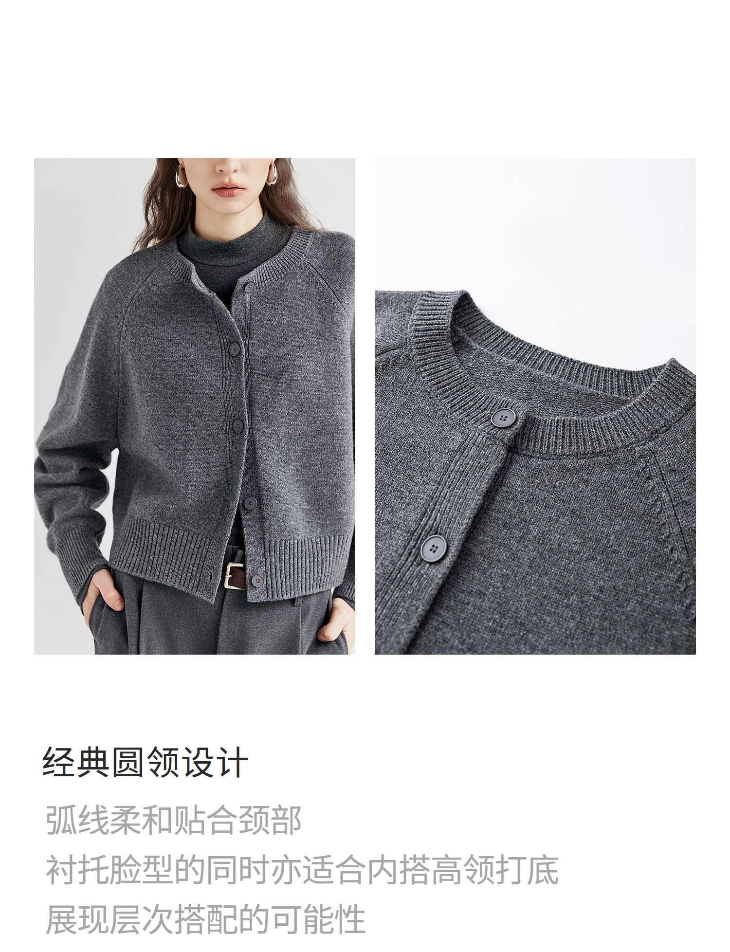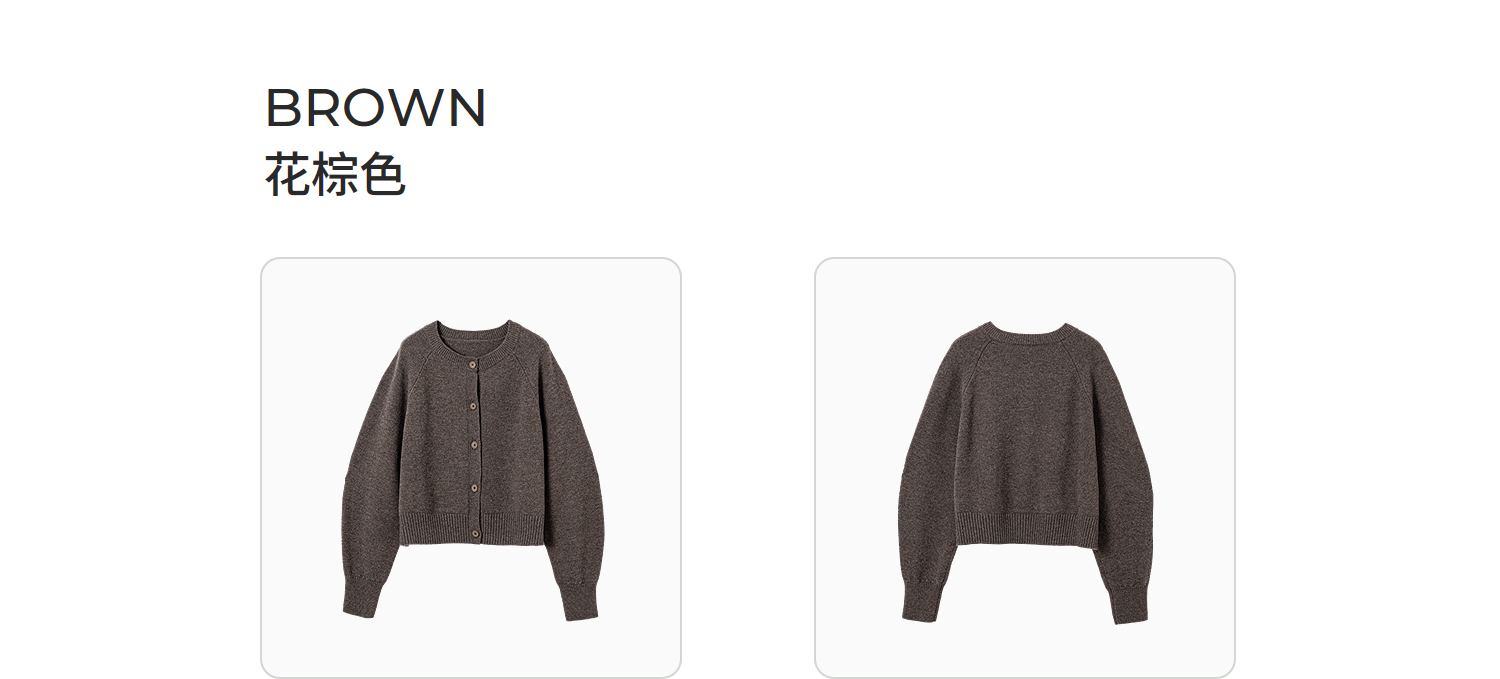 棉仓366605009-圆领短款全羊毛开衫毛衣女25秋冬厚款微宽松开衫外套针织上衣
