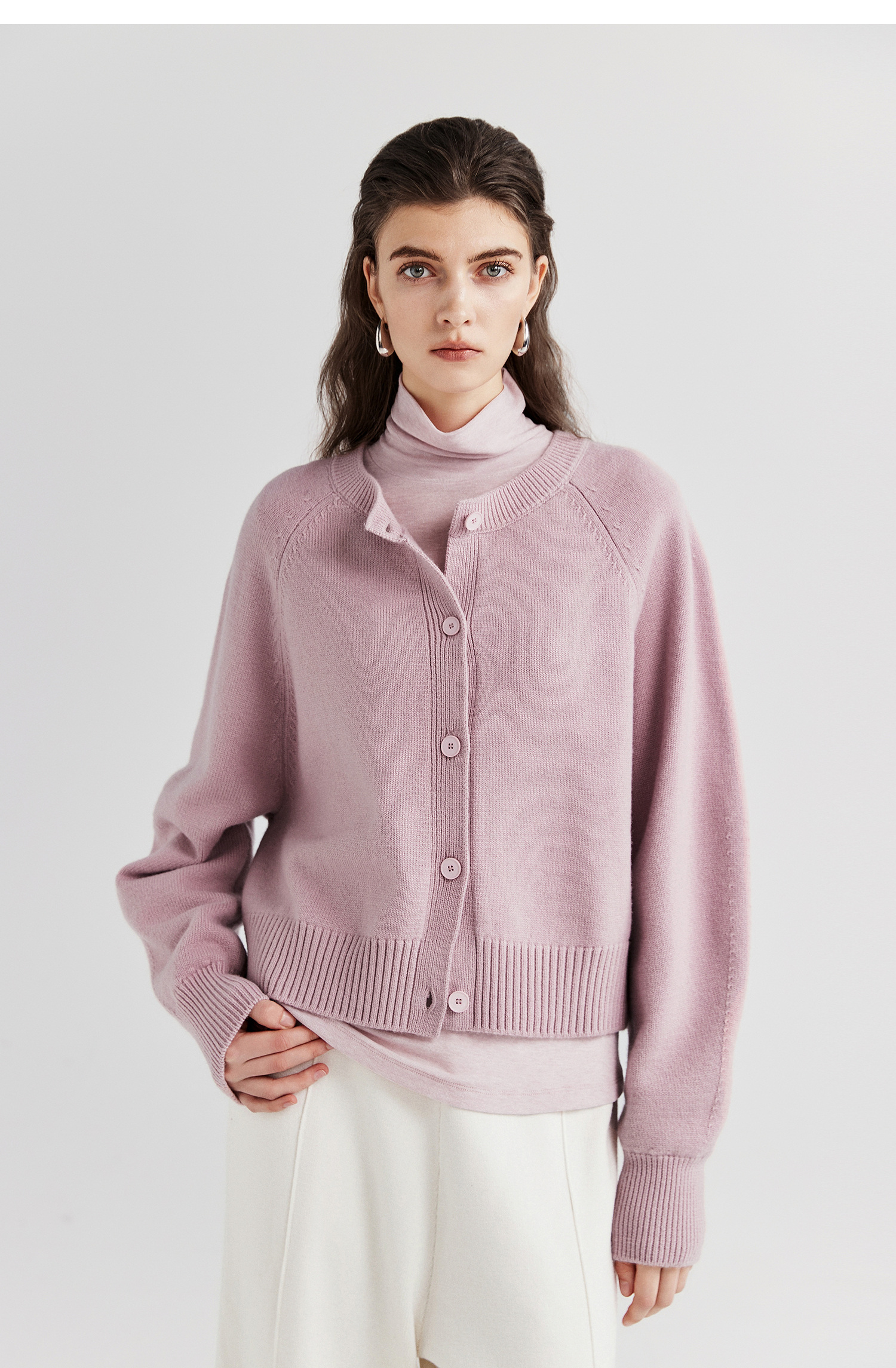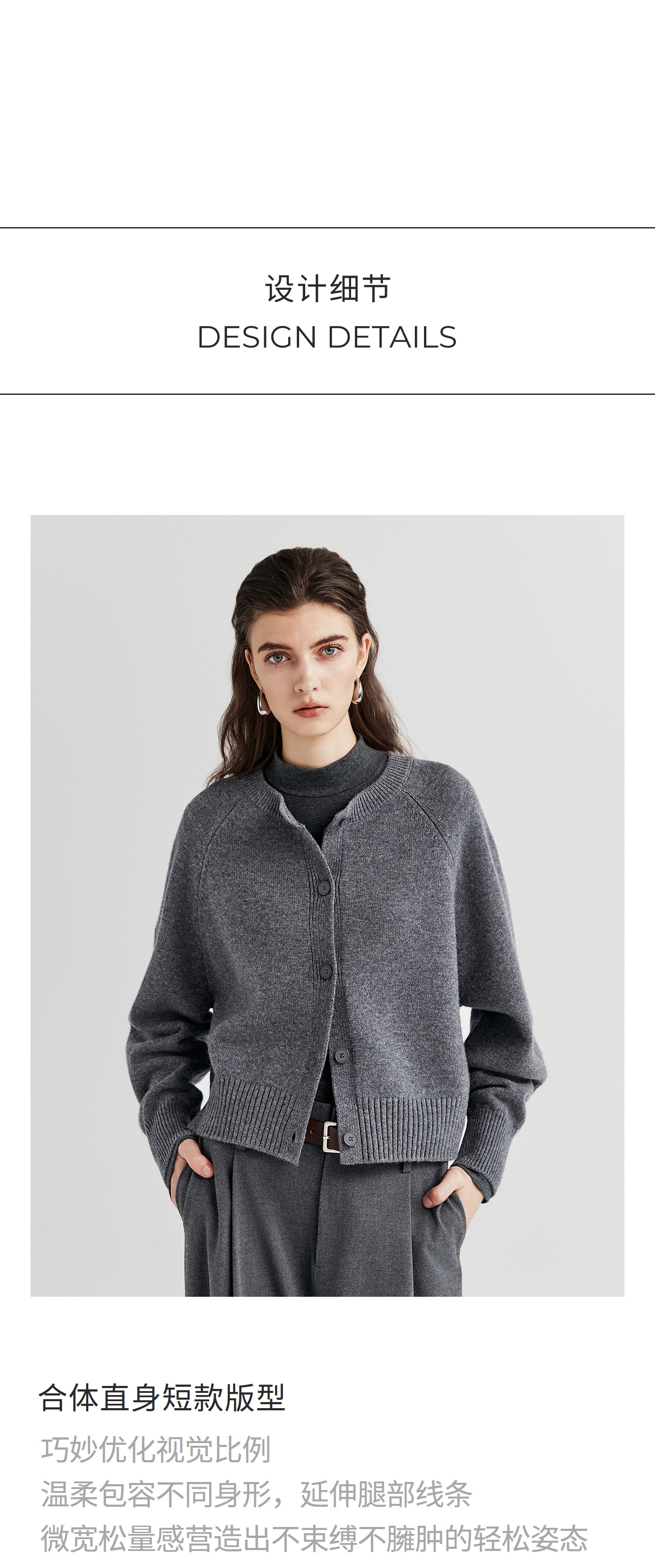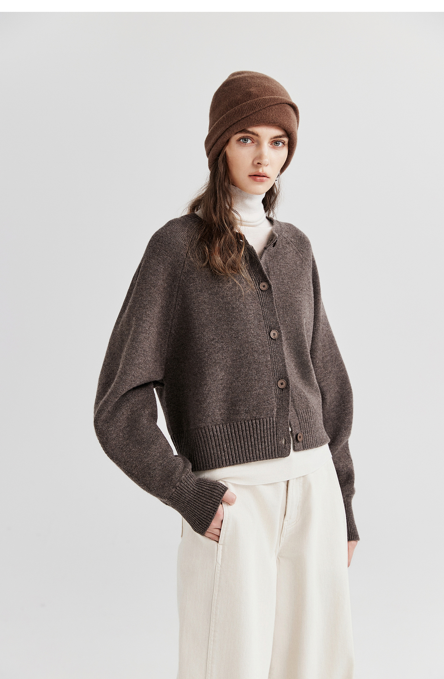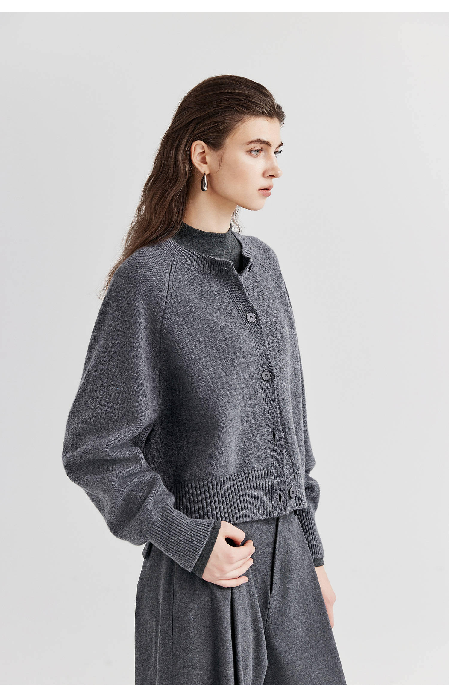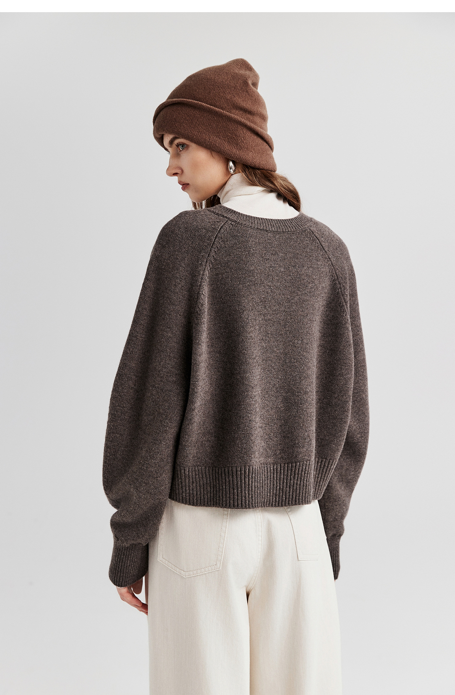 棉仓366605009-圆领短款全羊毛开衫毛衣女25秋冬厚款微宽松开衫外套针织上衣