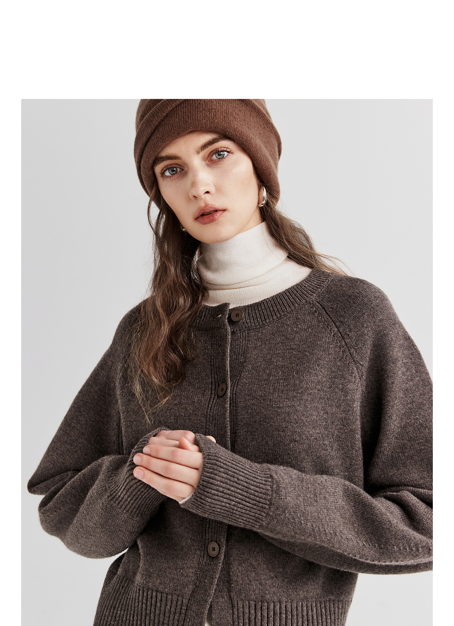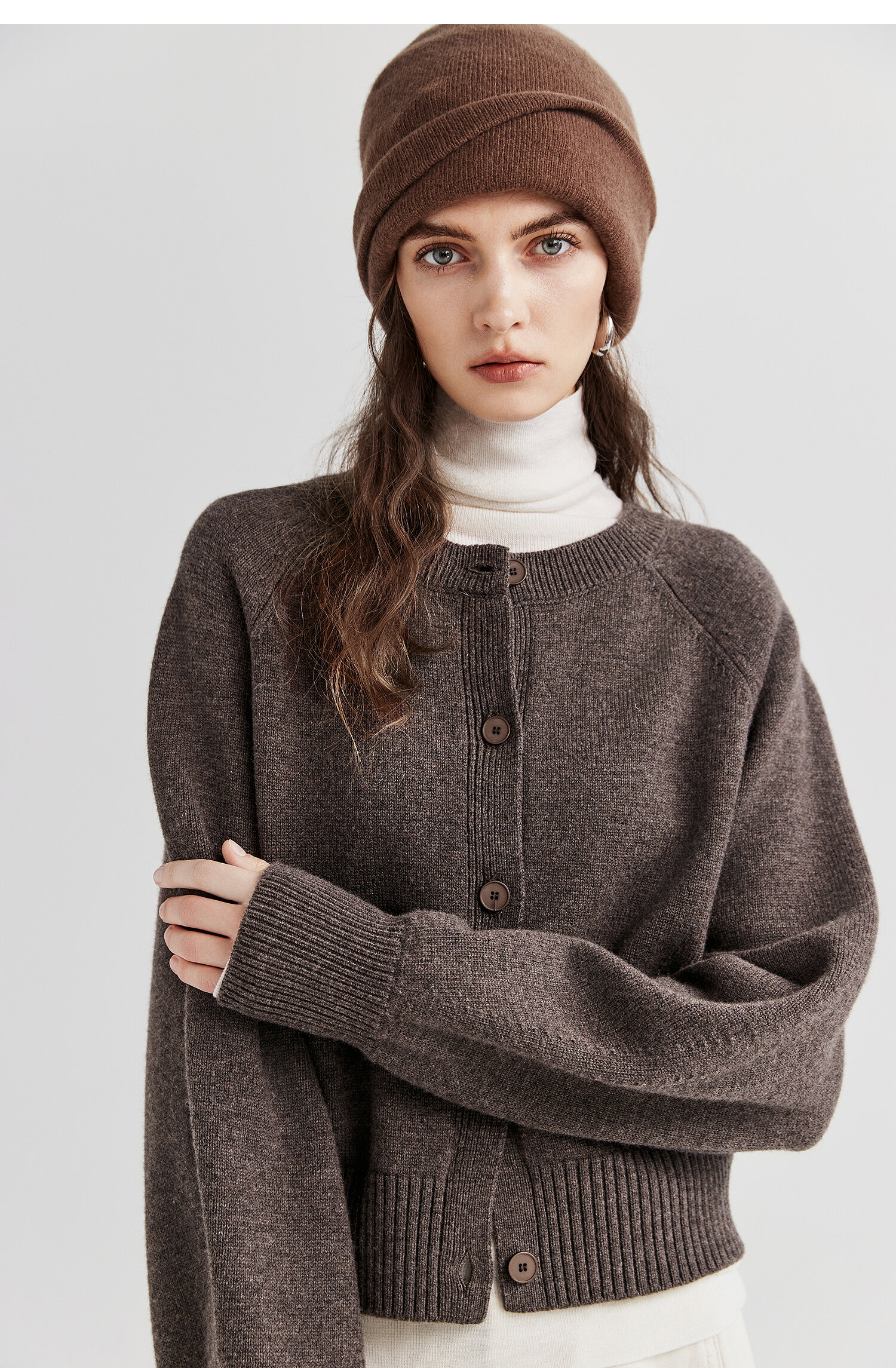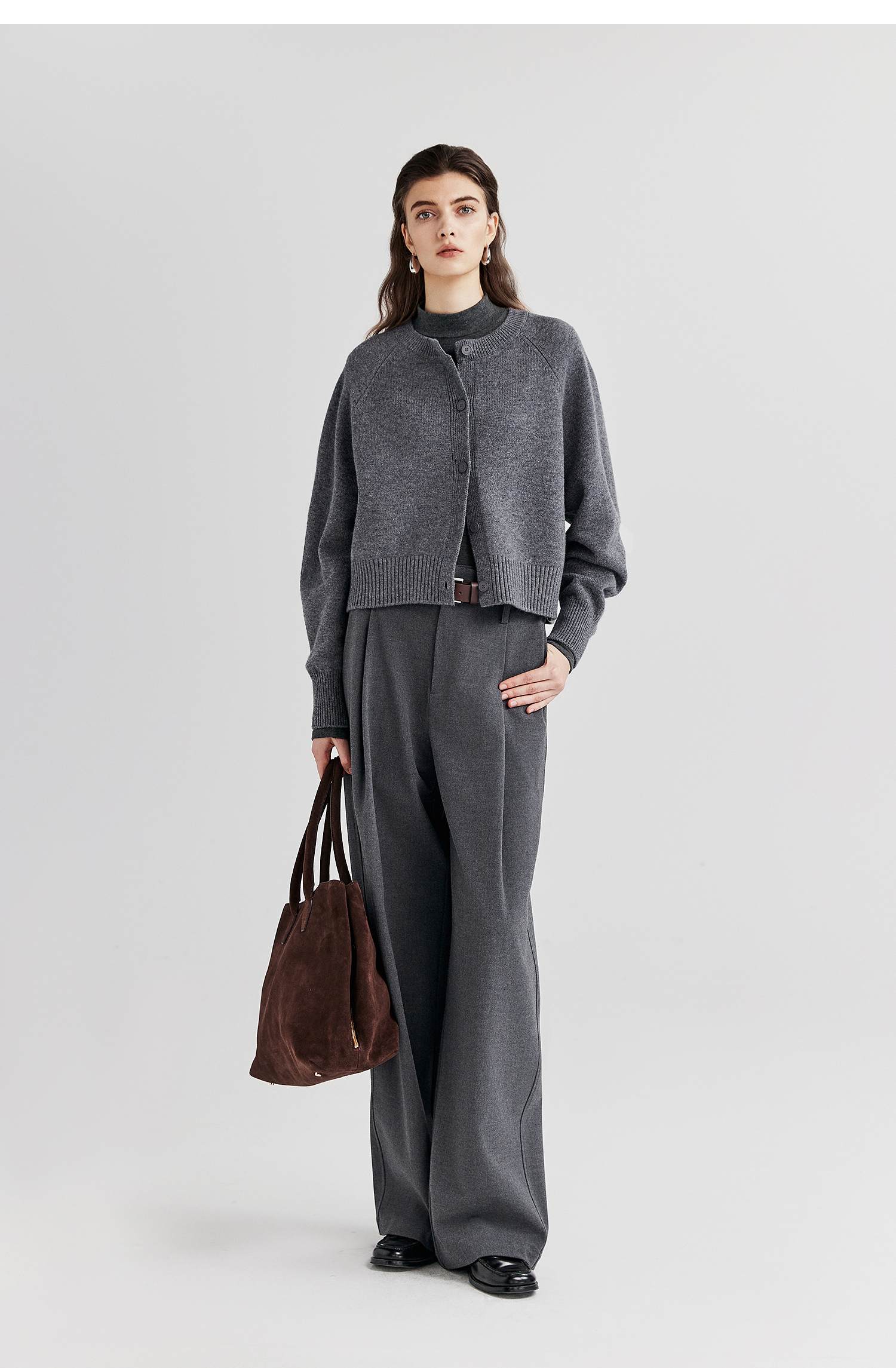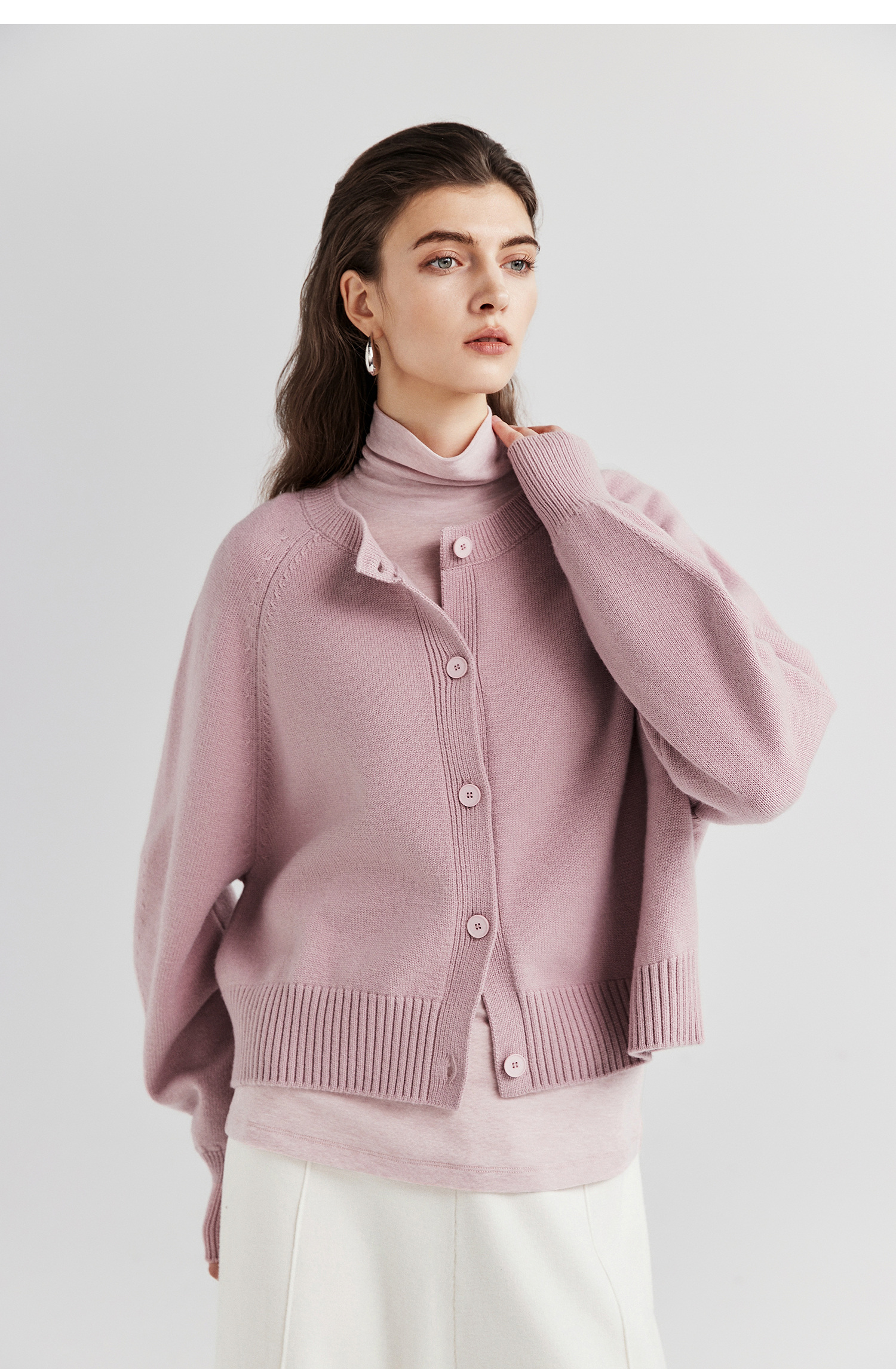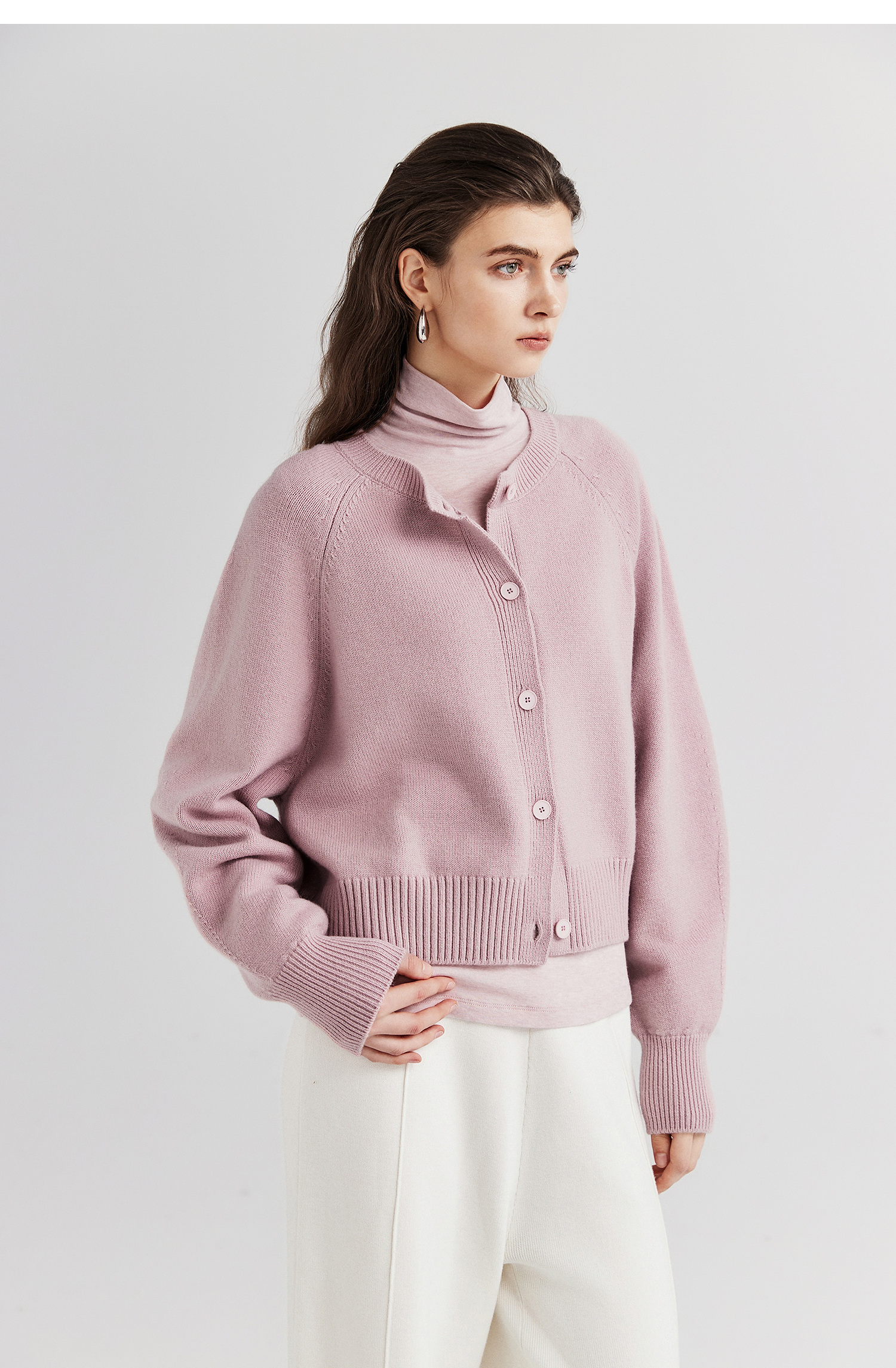 棉仓366605009-圆领短款全羊毛开衫毛衣女25秋冬厚款微宽松开衫外套针织上衣