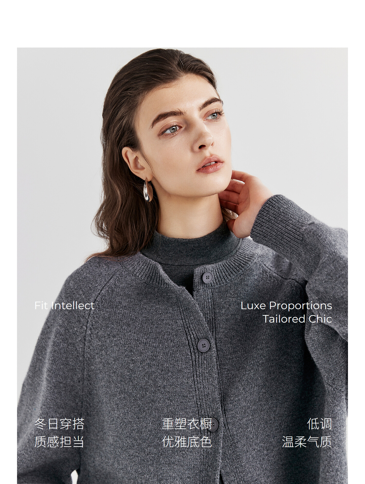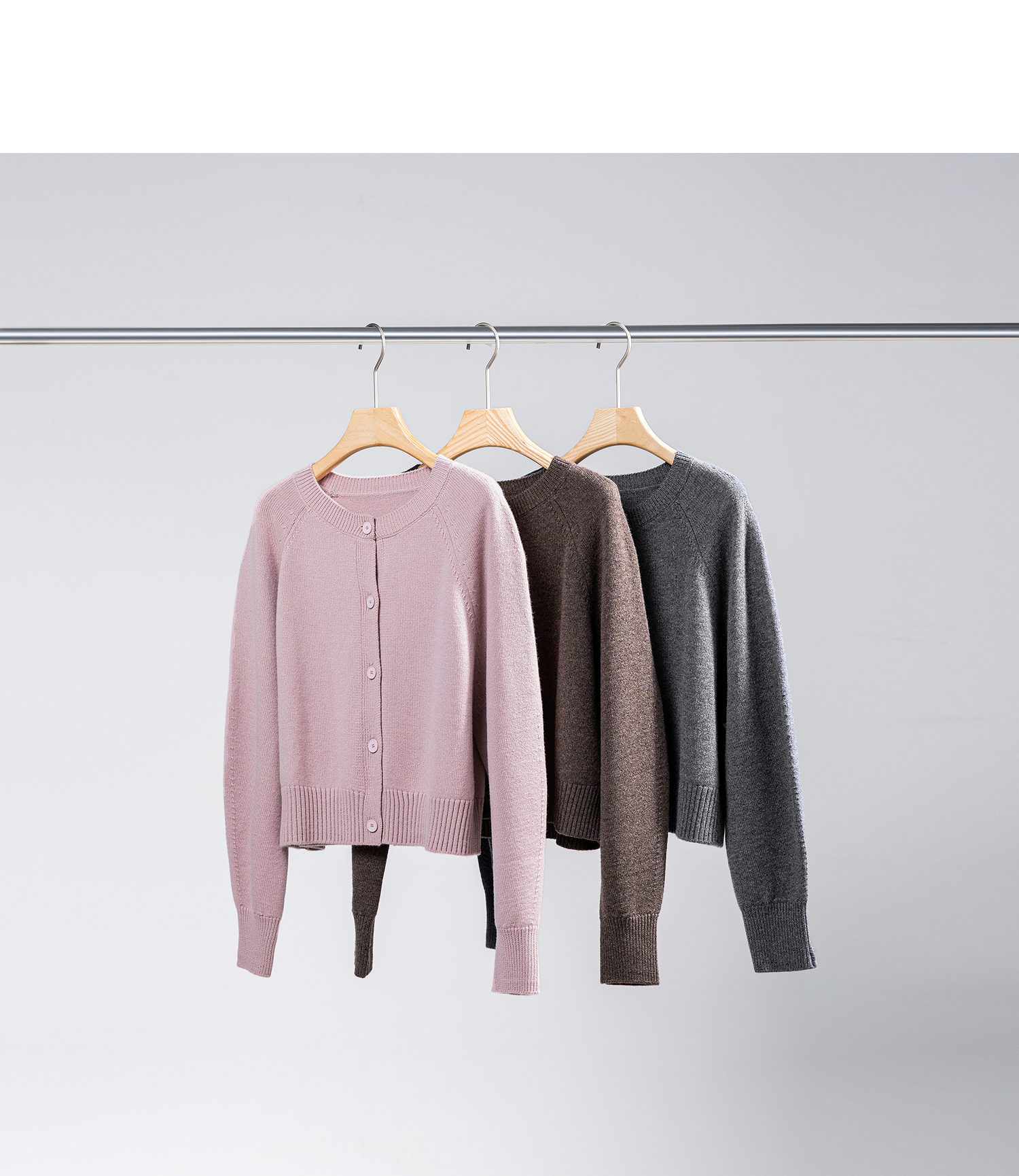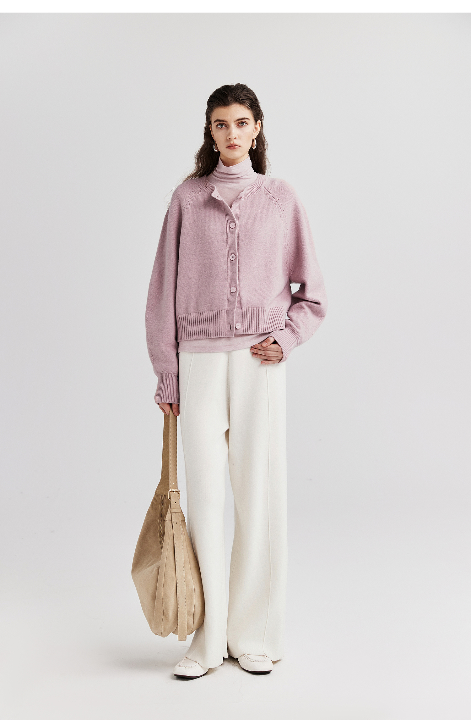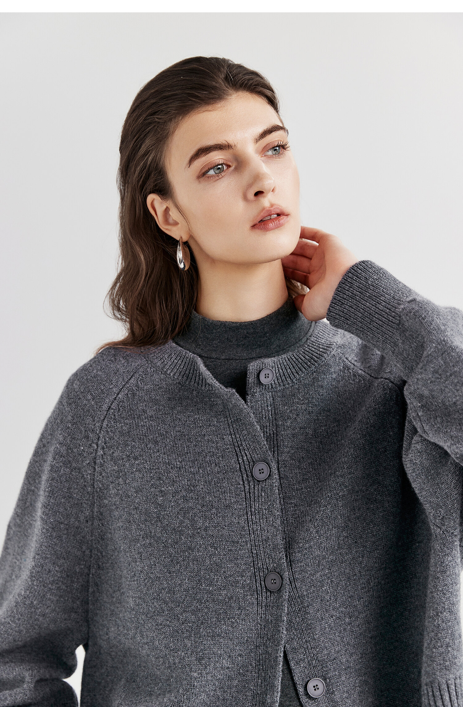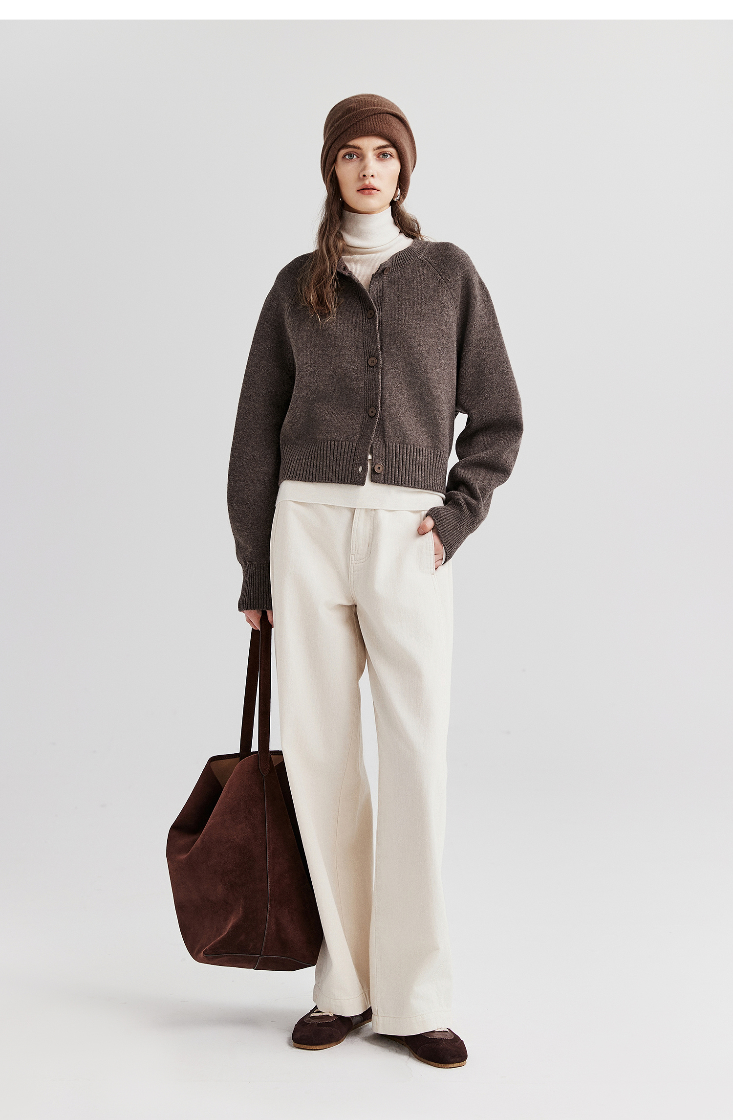棉仓366605009-圆领短款全羊毛开衫毛衣女25秋冬厚款微宽松开衫外套针织上衣