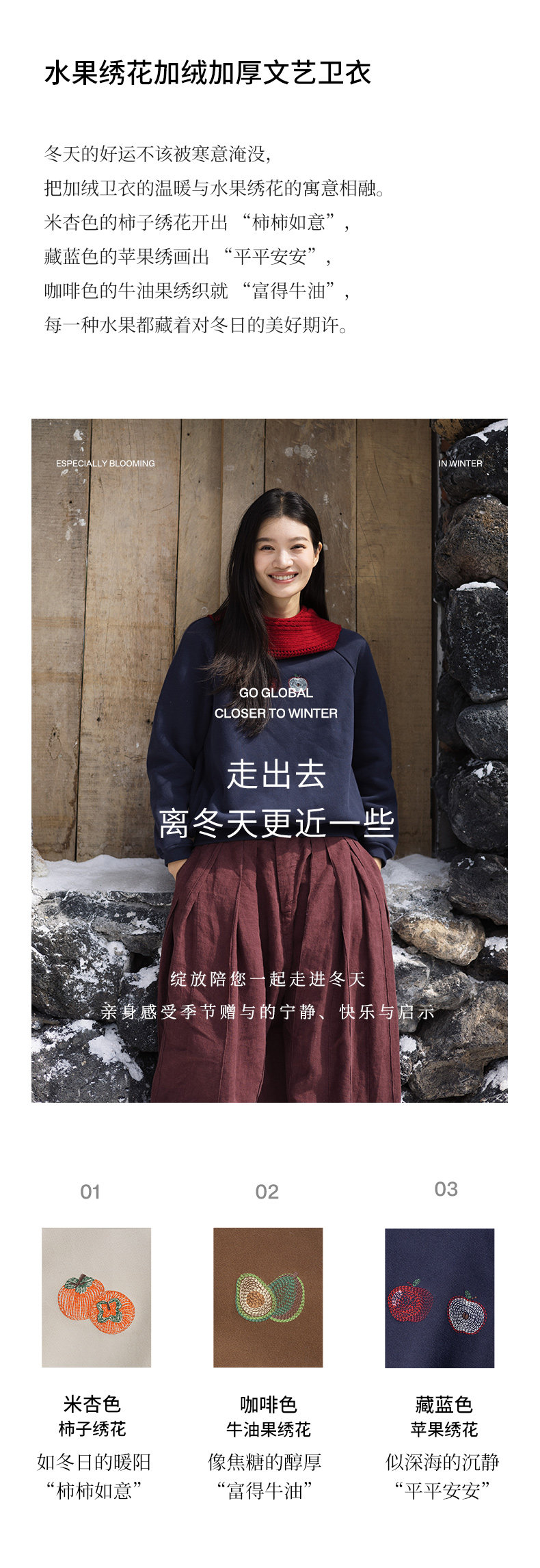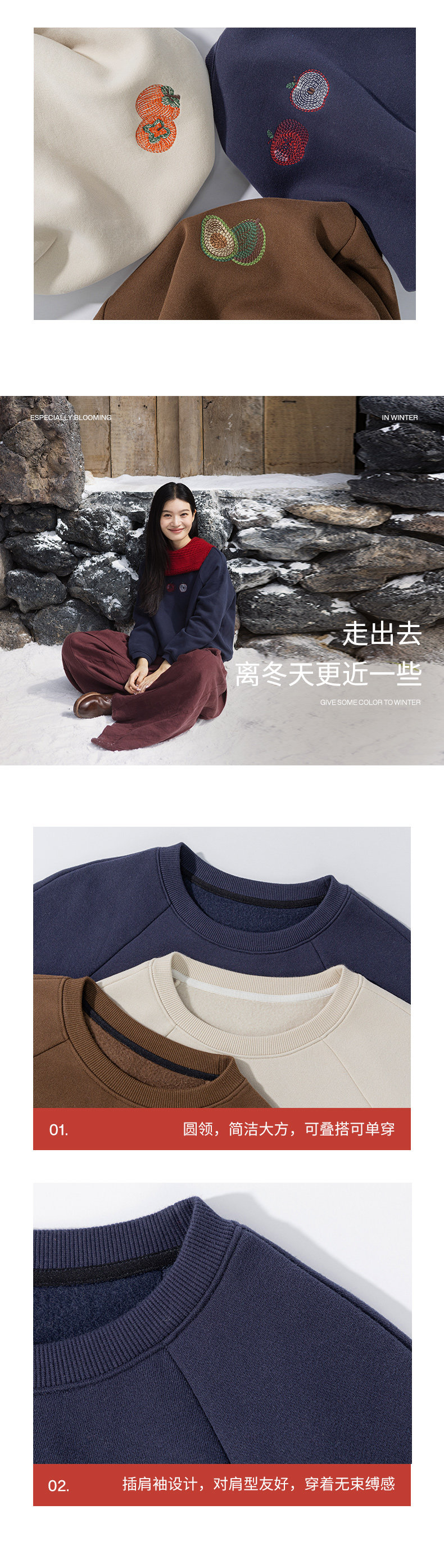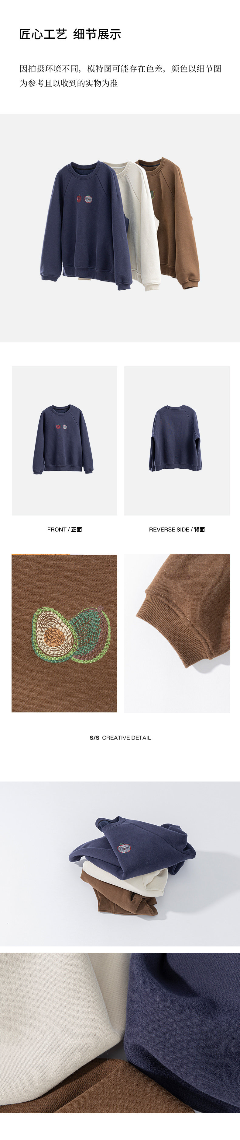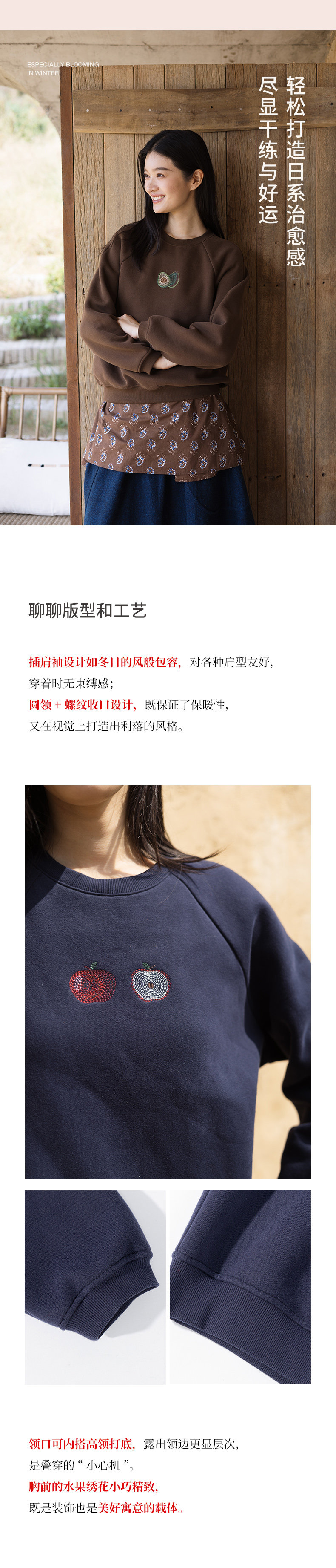 特绽放742朵/吉祥话卫衣·水果绣花加绒加厚棉混纺圆领长袖卫衣女