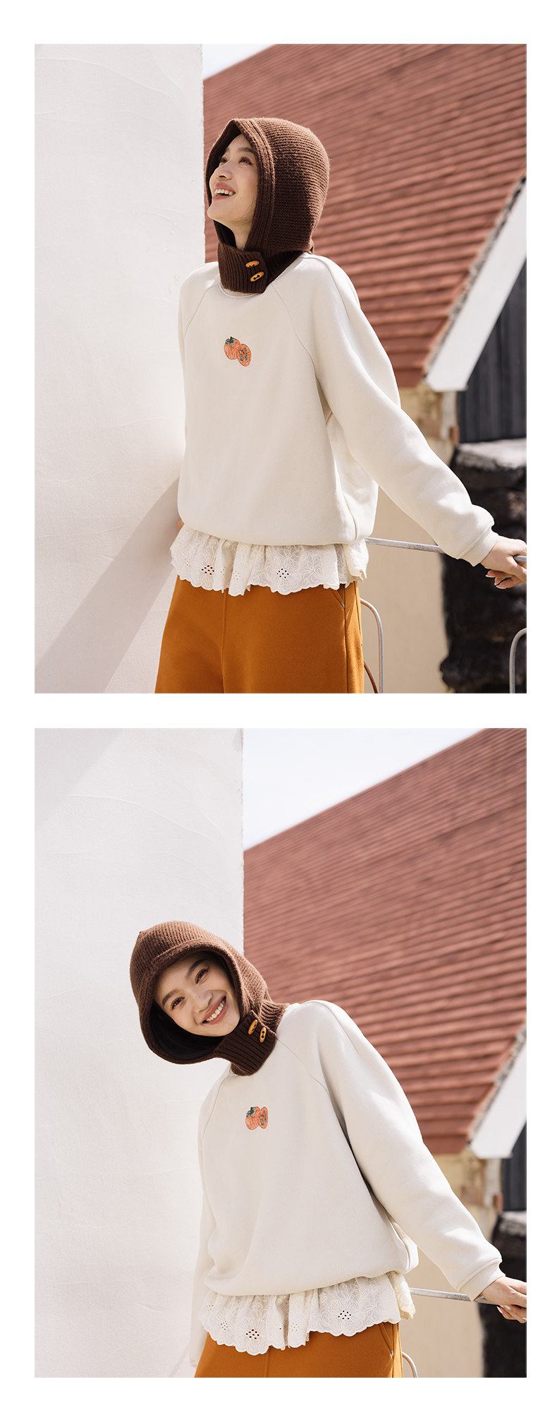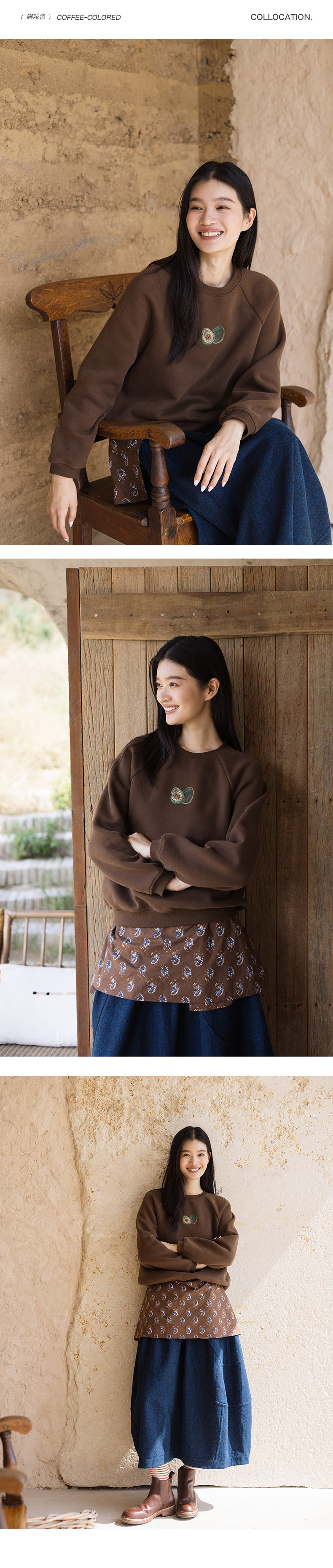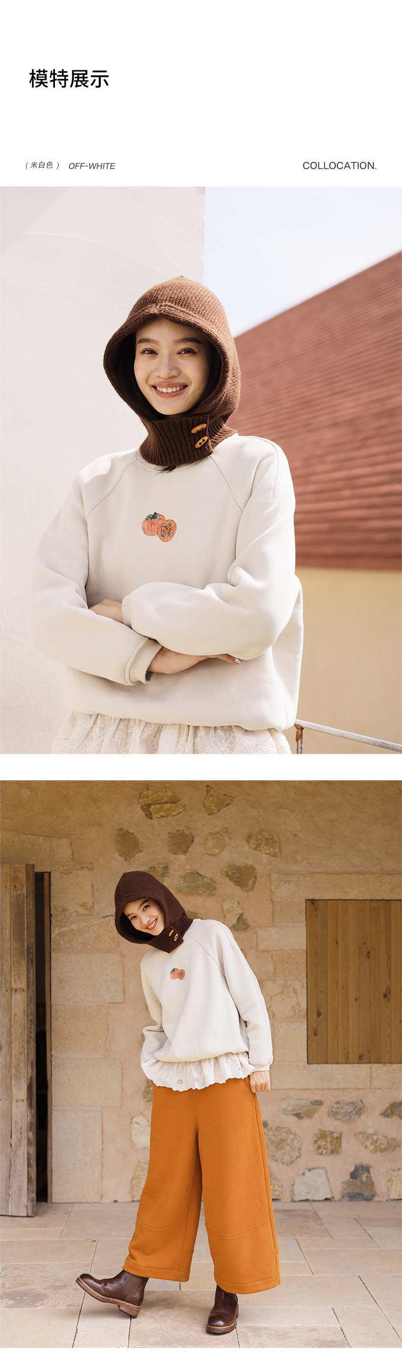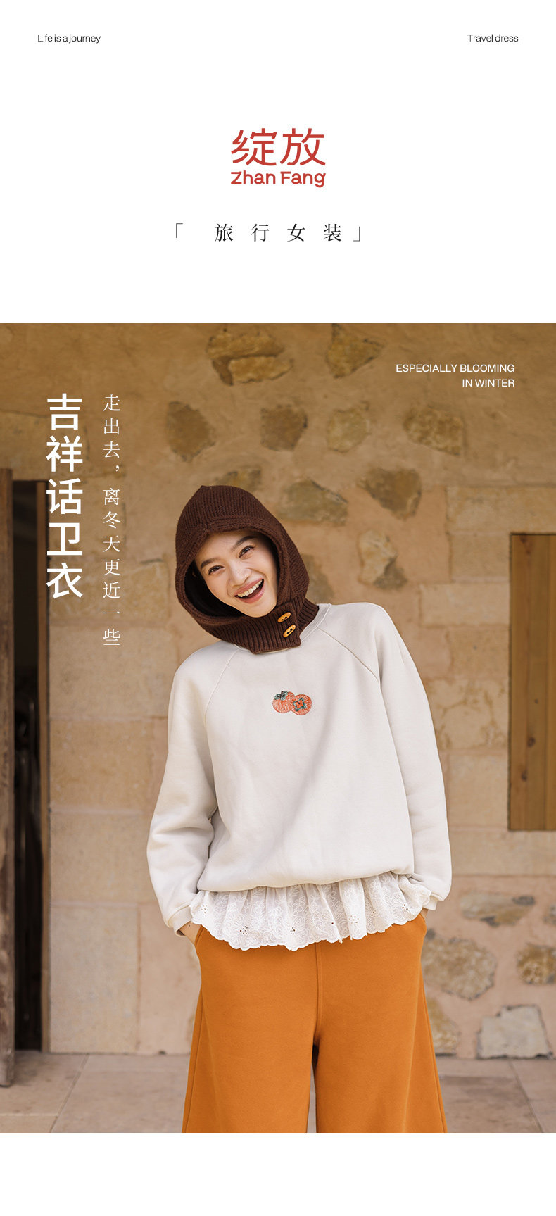 特绽放742朵/吉祥话卫衣·水果绣花加绒加厚棉混纺圆领长袖卫衣女