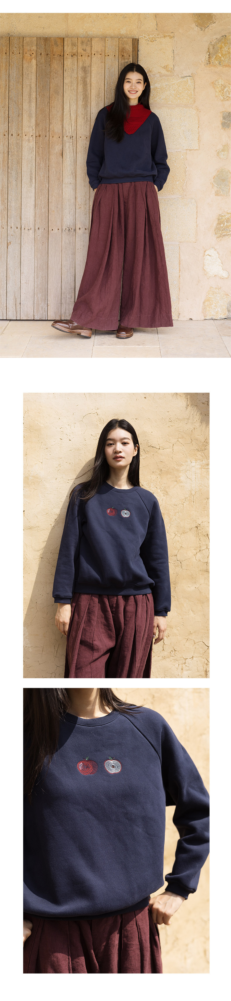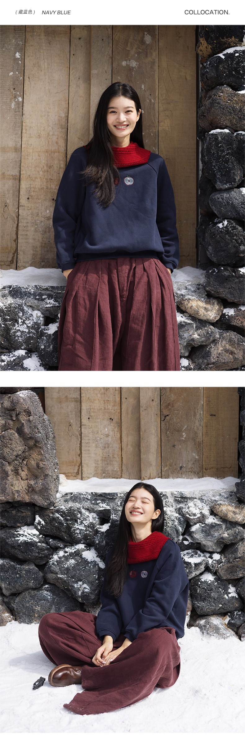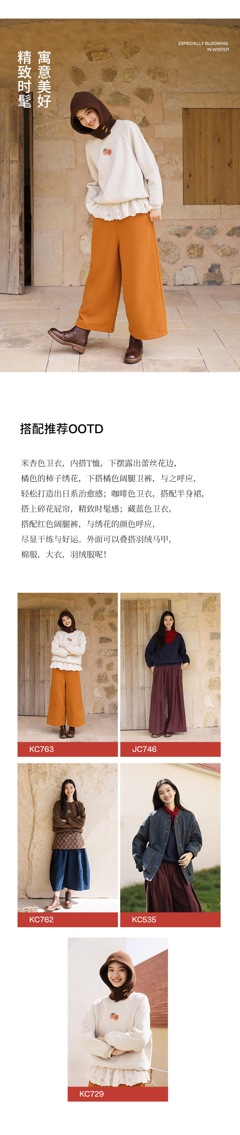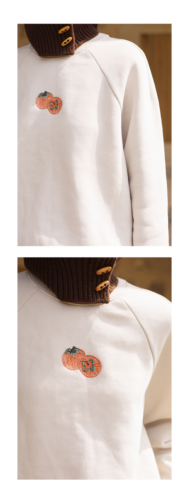 特绽放742朵/吉祥话卫衣·水果绣花加绒加厚棉混纺圆领长袖卫衣女