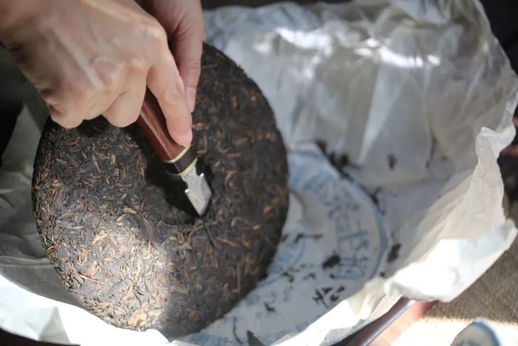 饼型饱满圆整,压制松紧适中,撬茶较为容易。