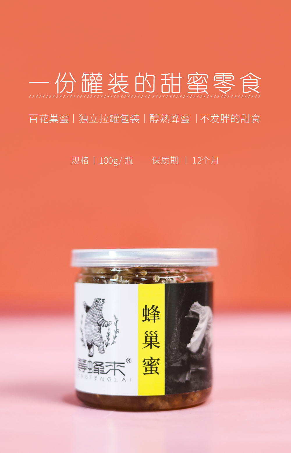 【蜂巢蜜】等蜂来蜂巢蜜100g/罐*2,嚼着吃的巢蜜,一份罐装的天然零食