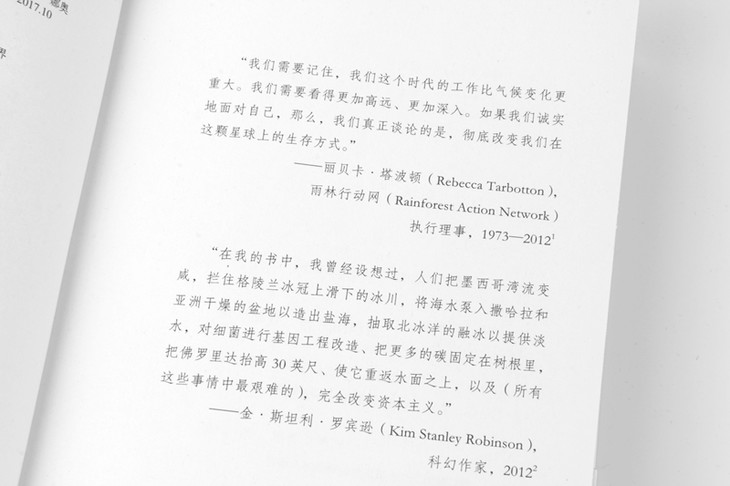 克莱恩认为,要人性化地应对气候危机,首先应当修复我们彼此之间以及与自然之间的关系。这并不是一种严峻的惩罚,而应当被视作一种礼物,一种实现经济与文化转变的催化剂,以此治愈长期以来的历史创伤。她记录了已经开启这一过程的鼓舞人心的运动:大大小小的社区拒绝更多化石燃料的榨取,并且正在致力于建设下一个基于再生的经济体。