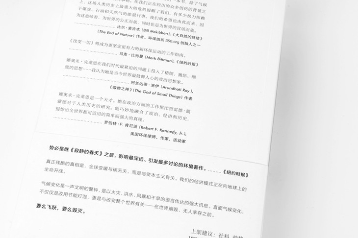 关于为什么气候危机要求我们放弃 “自由市场”的核心意识形态,重构全球经济,乃至重塑我们的政治体系,这本书给出了睿智的解答。