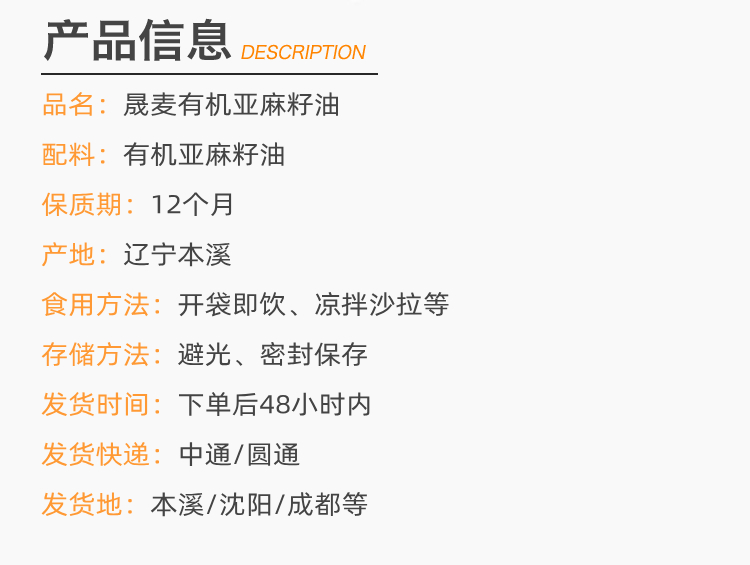 晟麦 有机亚麻籽油 5ml*21袋/盒