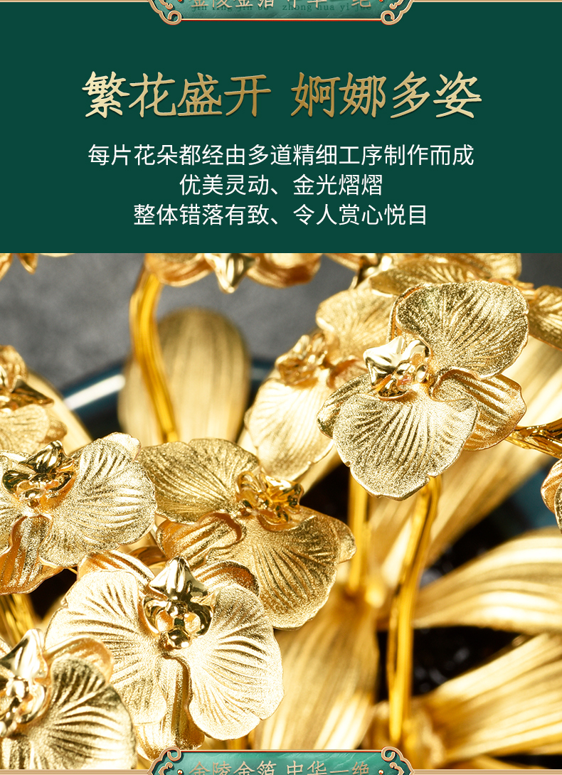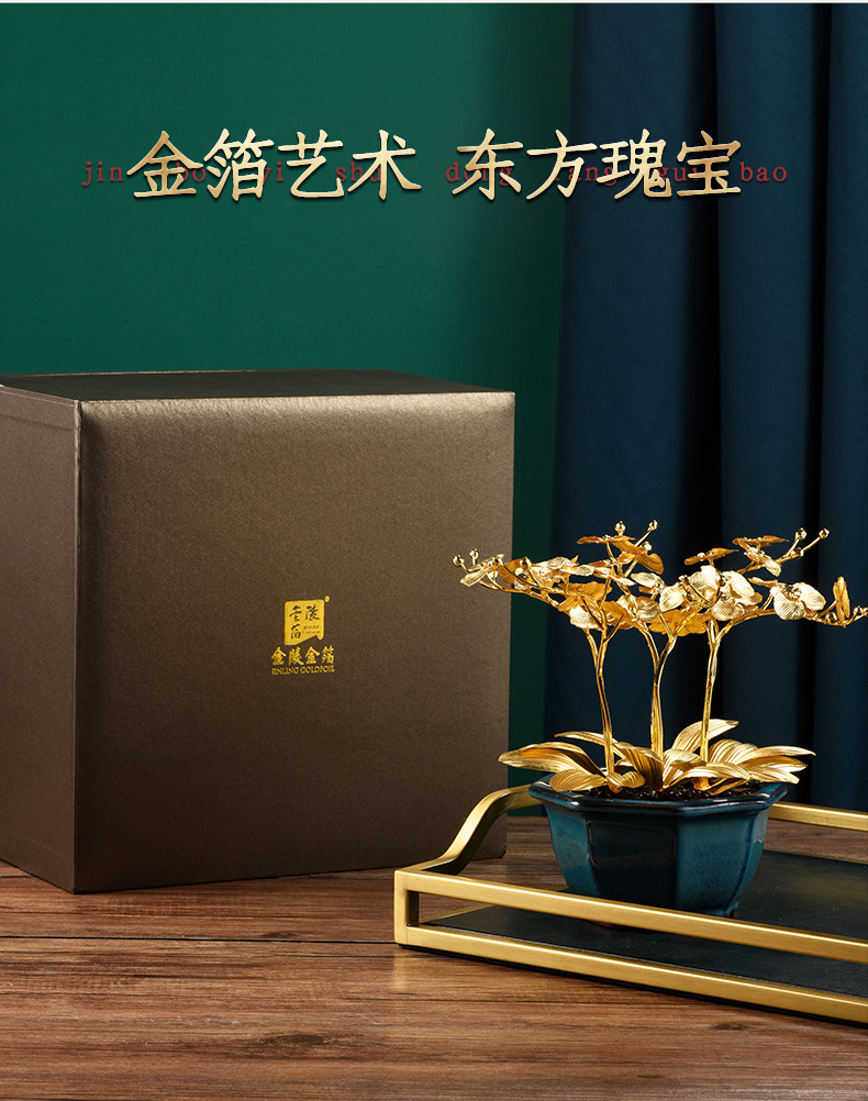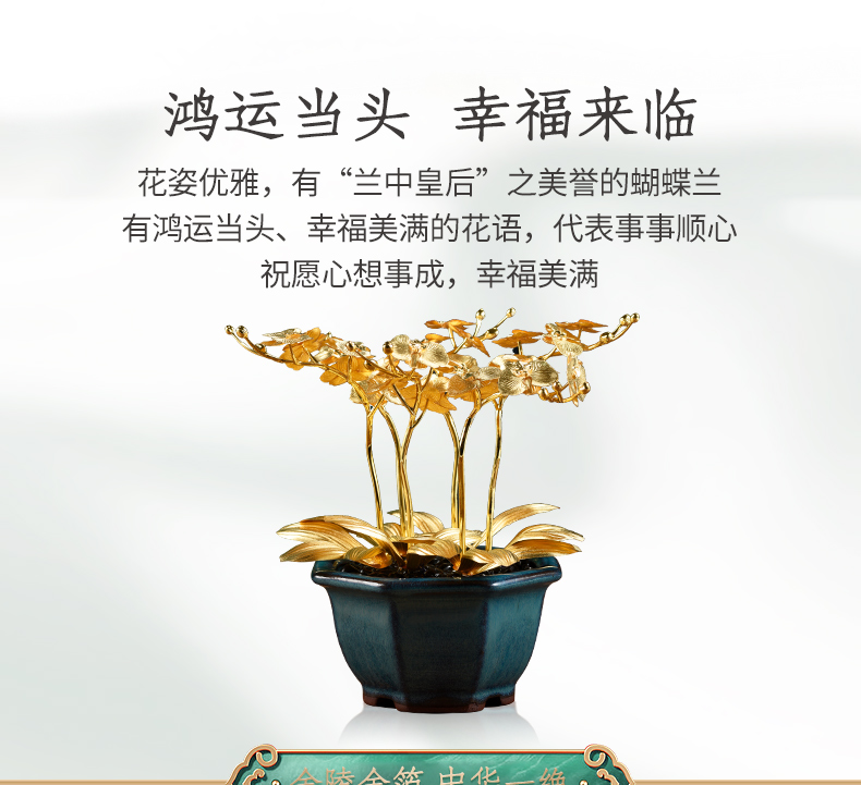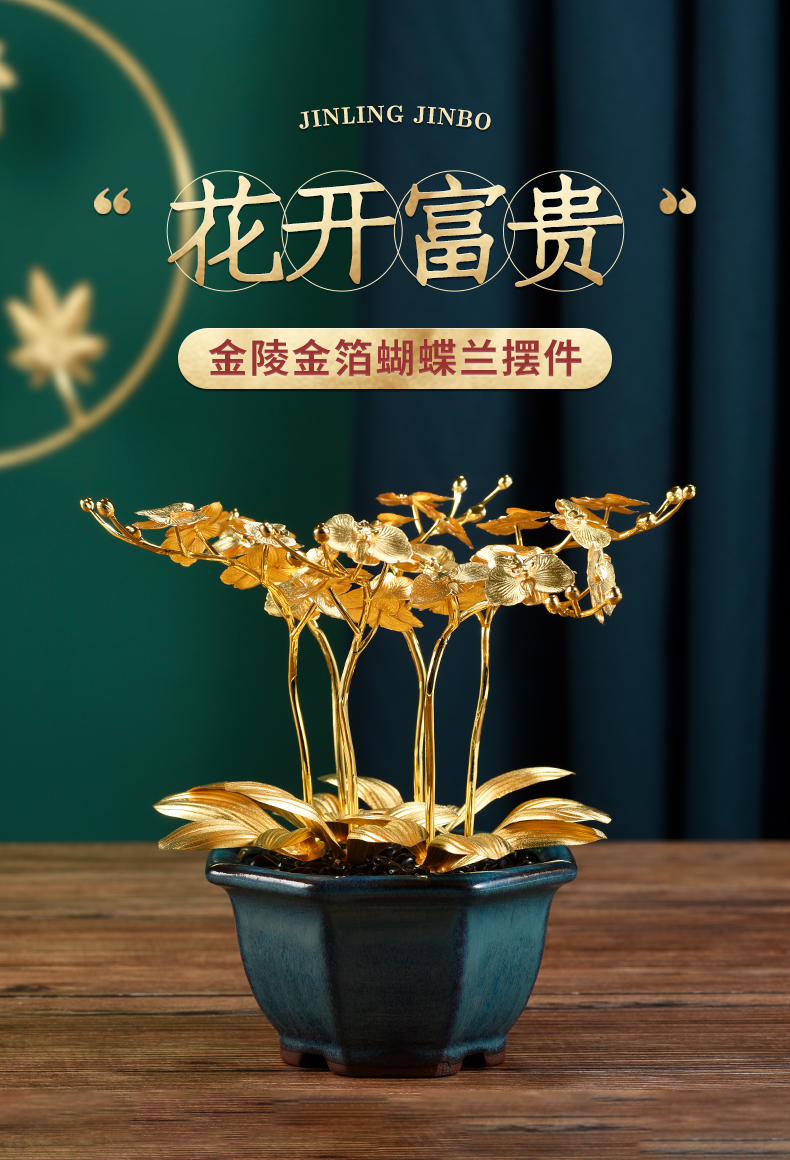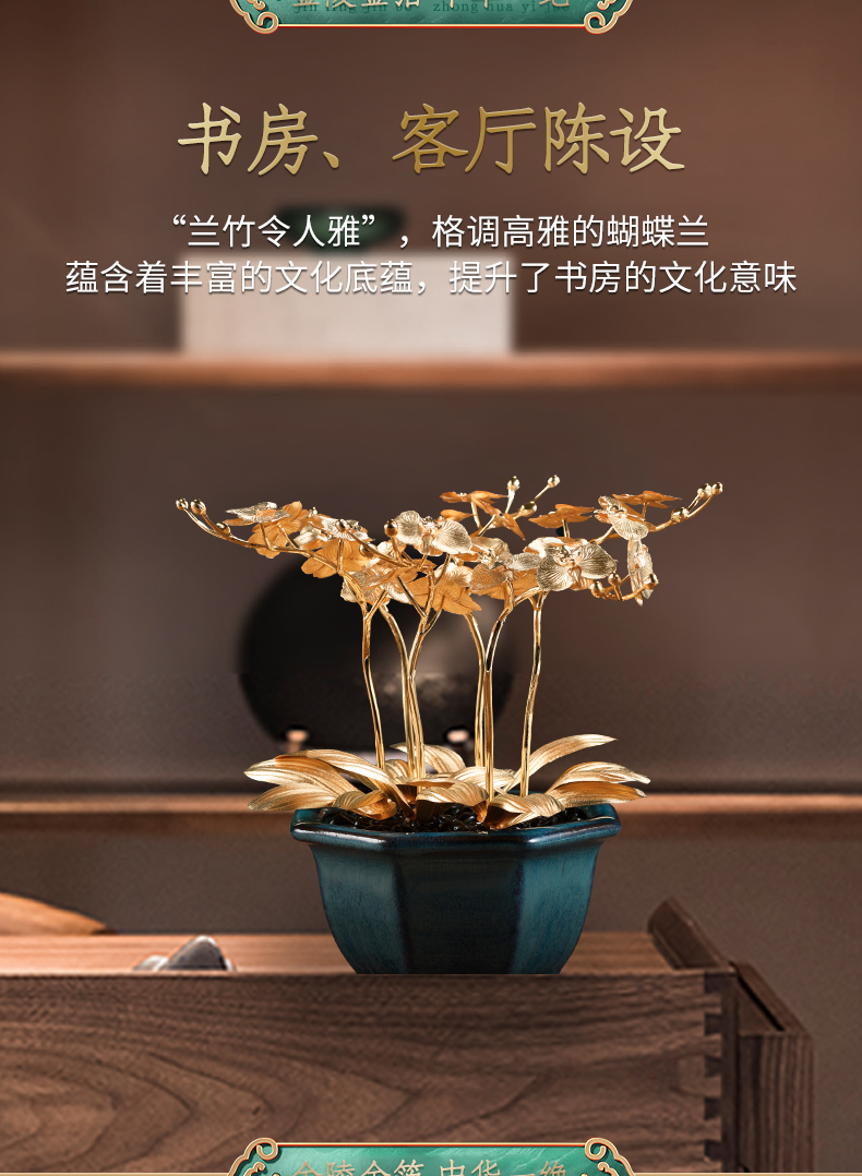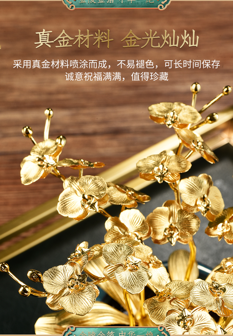 金箔蝴蝶兰盆景书桌玄关摆件送朋友高升新家乔迁礼物家居饰品