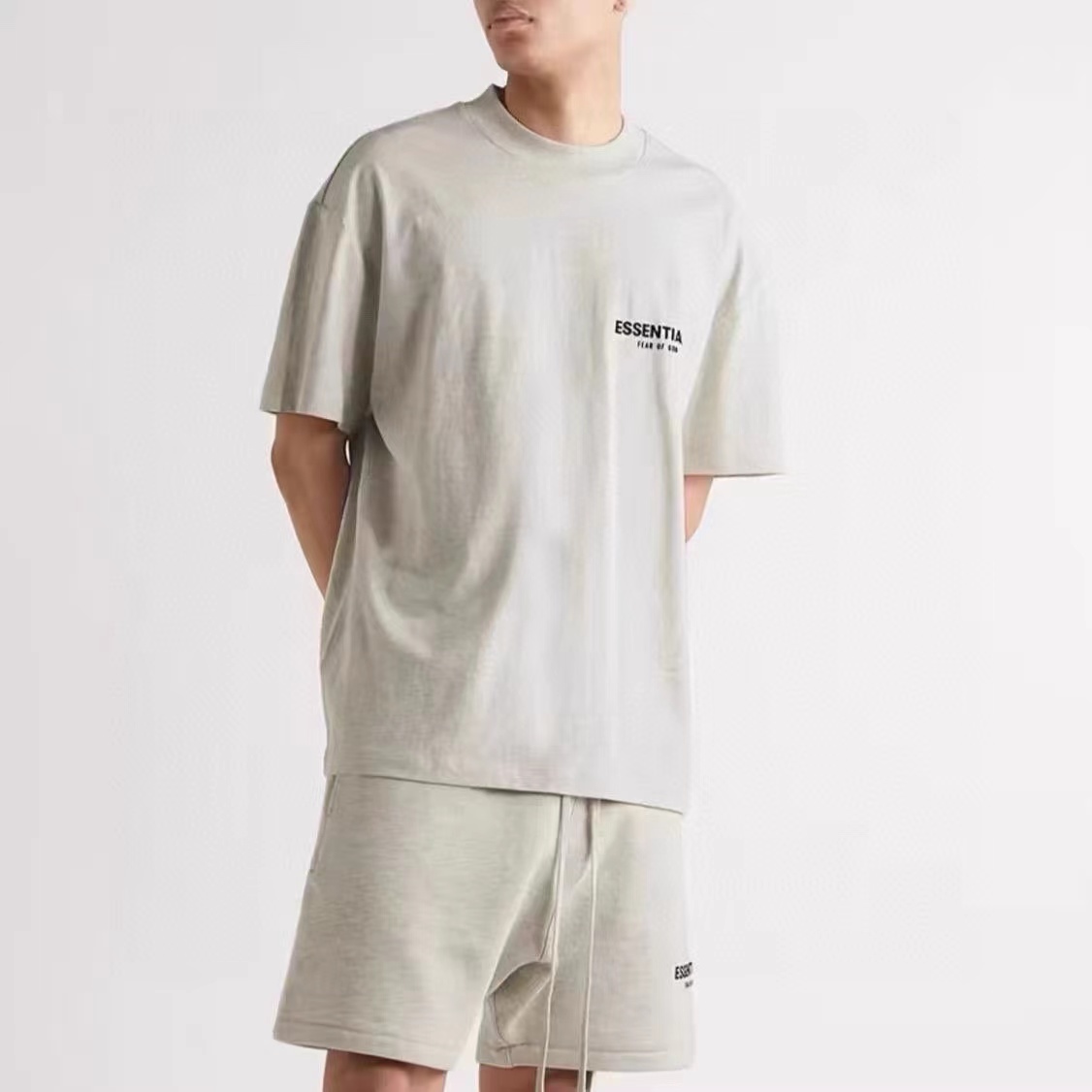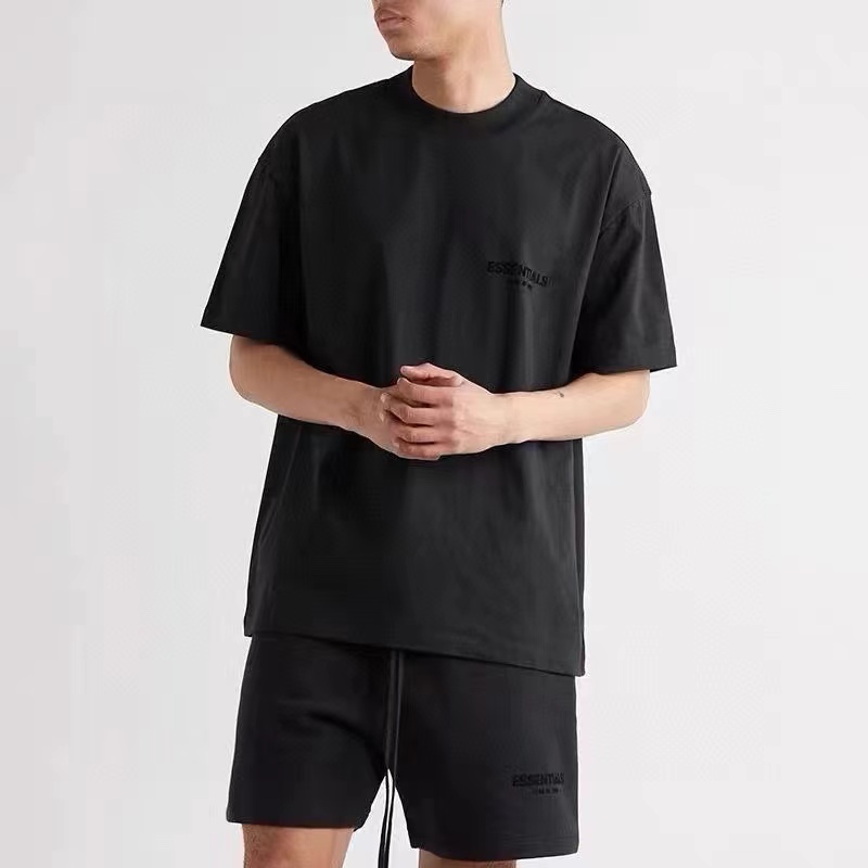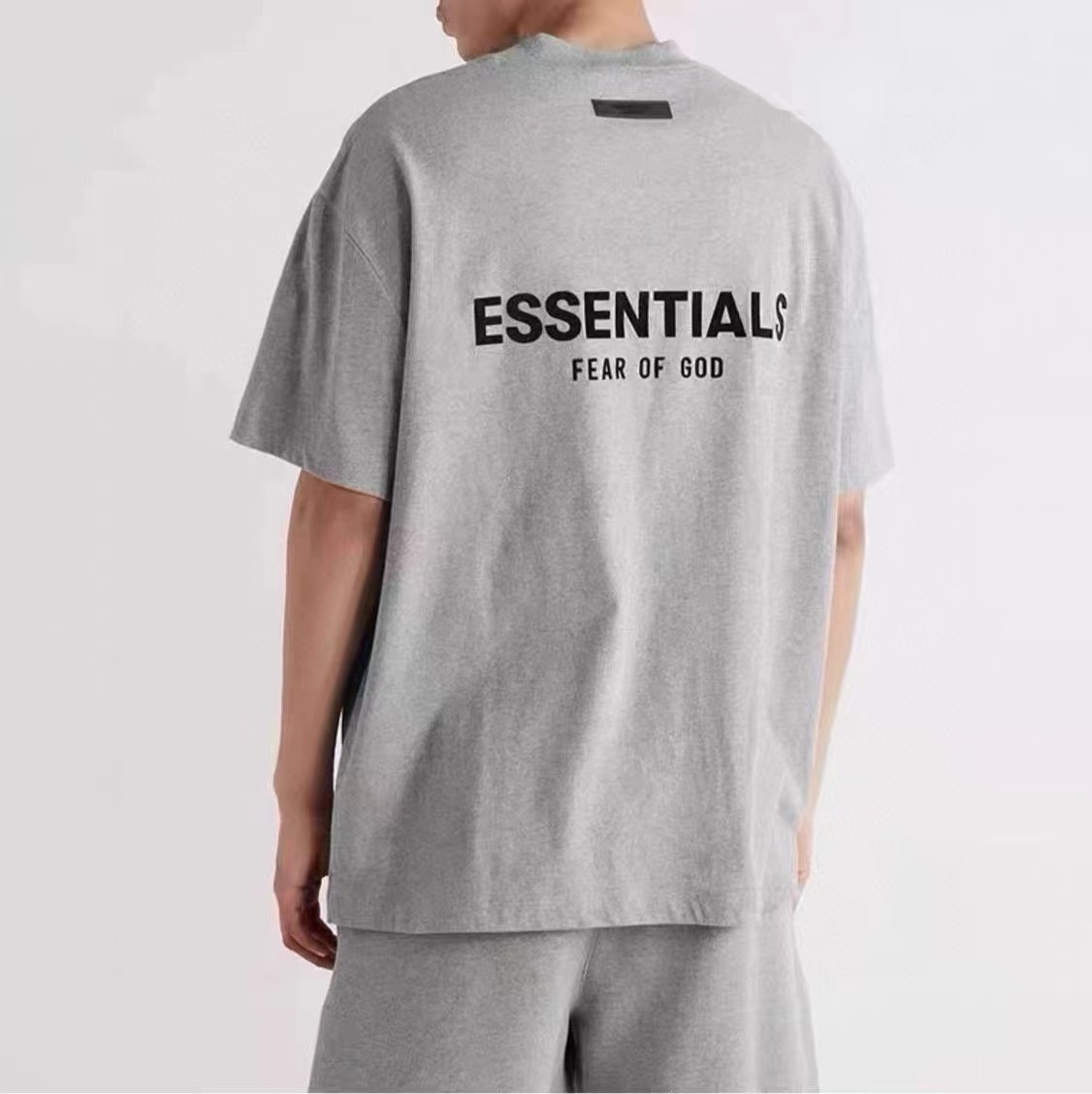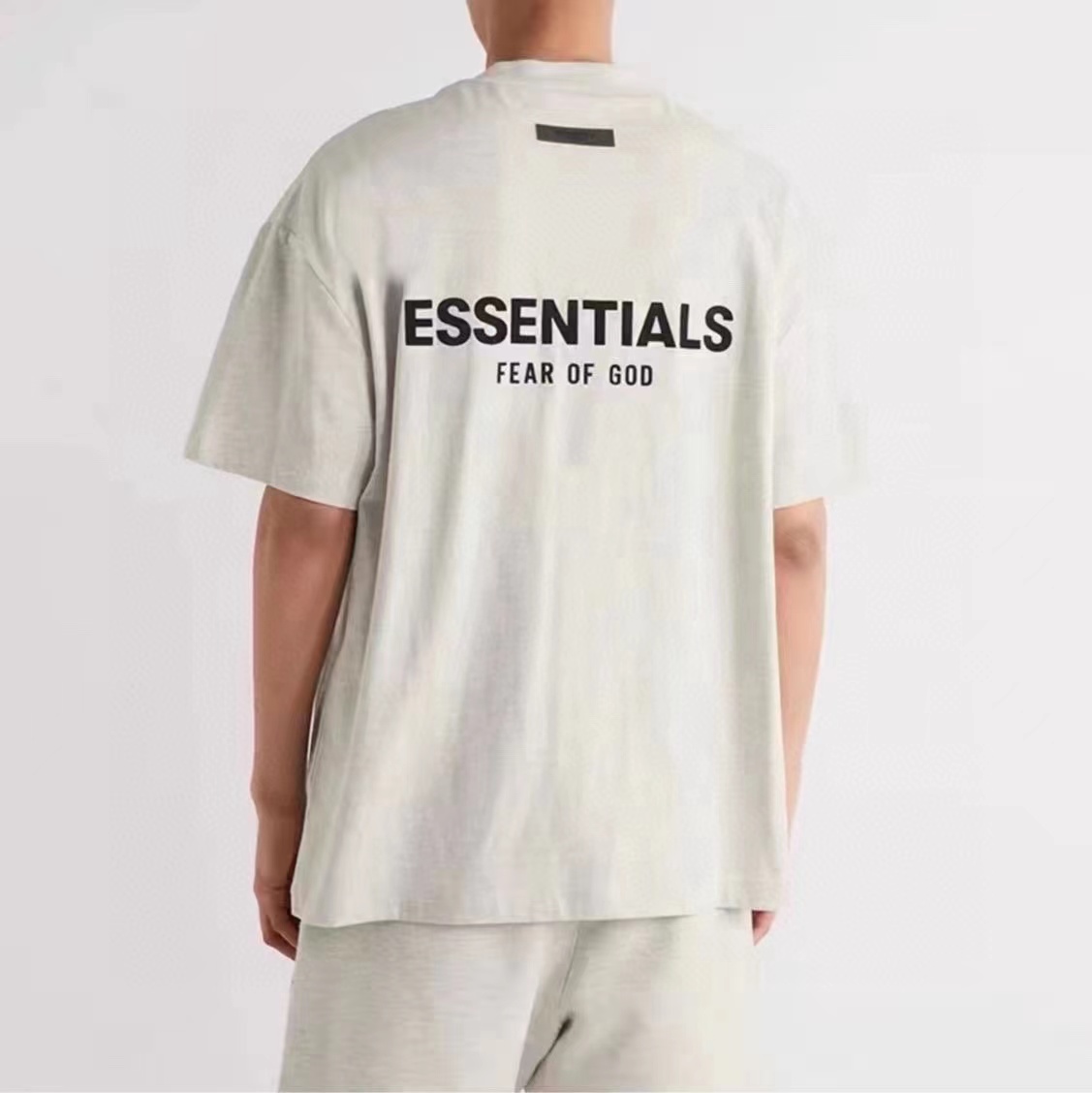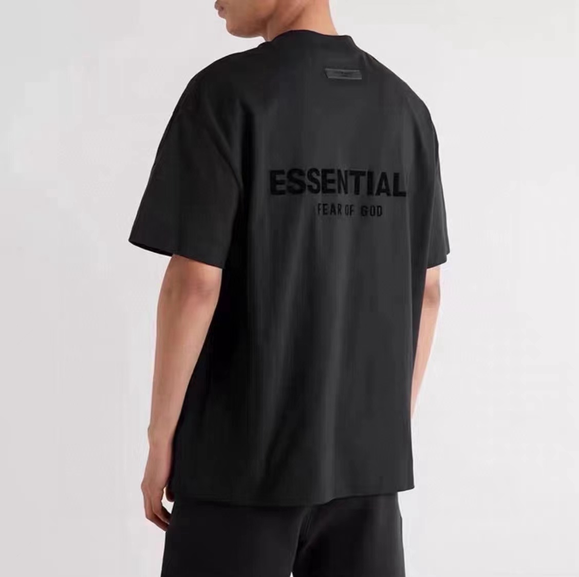 前后植绒小标 logo 字母印花短袖T恤 采用240g 18支双纱棉面料 经过水洗刷毛处理 手感柔软舒适后背PVC材质皮标胶牌 二本针加固定染螺纹全新双层领标设计 表面字母立体触感