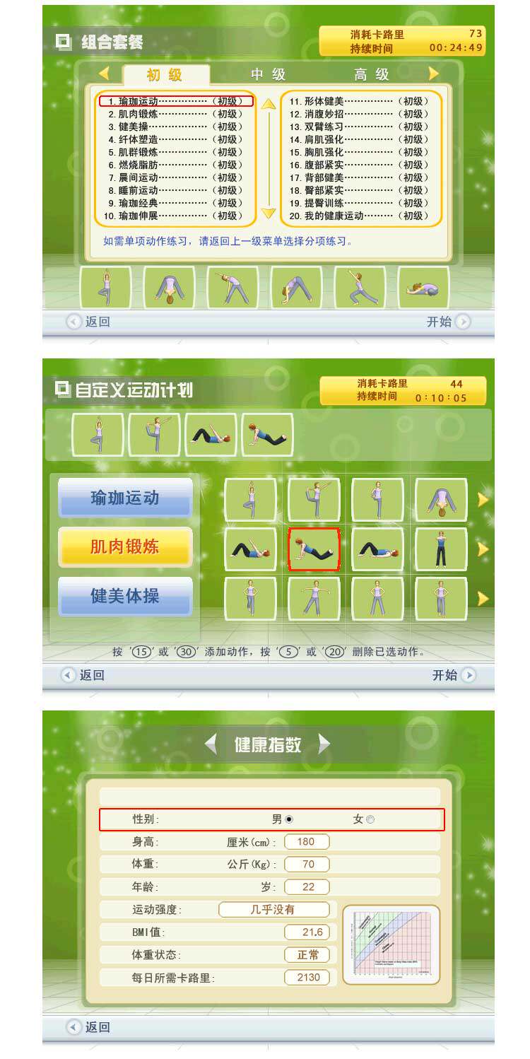产品因配置的内存大小不同,内置的舞曲多少不同,14首是512内存,310首是2G内存,以后在增加舞曲还会有4G的哦。其他游戏和瑜伽教程都是一样的,差别只是电视使用的时候的舞曲多少。