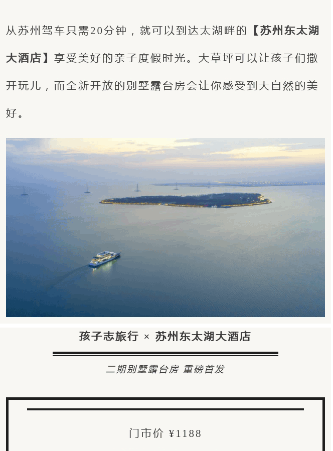 孩子志旅行 | 苏州东太湖大酒店 超值特惠4.9折 低至588元!新春出游必囤~ 2大1小乐享“小马尔代夫,55㎡私密别墅露台房,40000㎡苏式园林,自助早餐,儿童乐园,周末寒暑不加价~