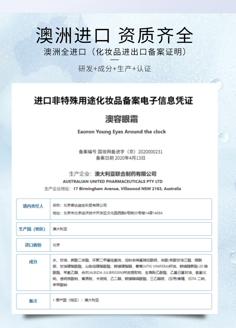 EAORON澳容 青春眼霜 淡化细纹 水润保湿
