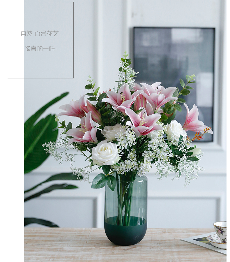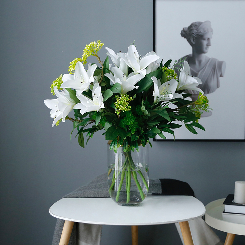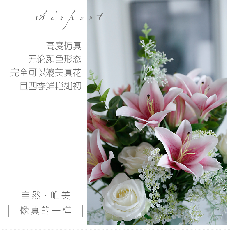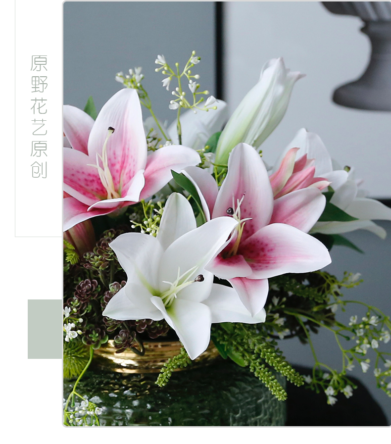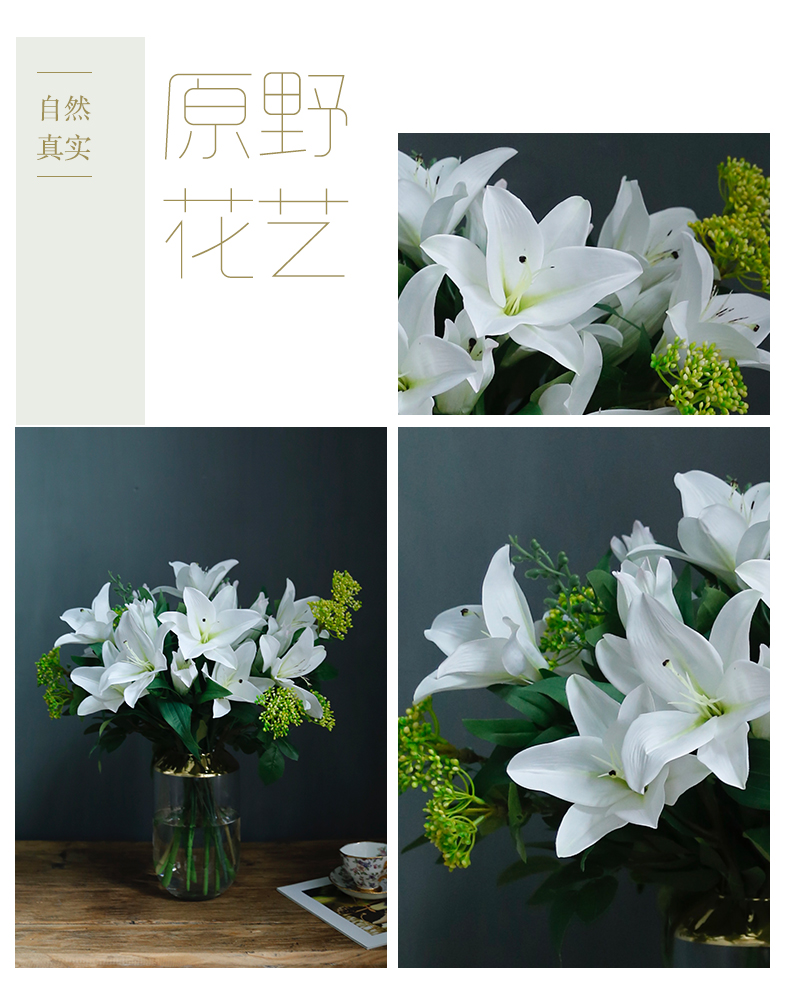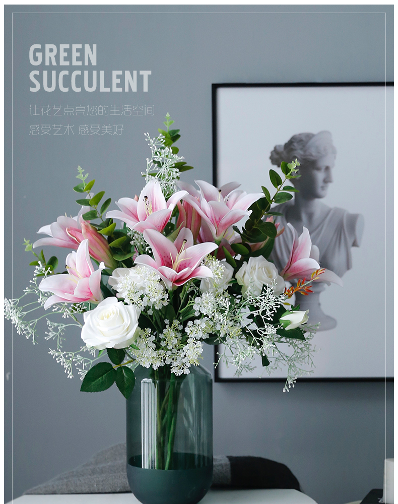 白百合花仿真花假花绢花北欧高档轻奢酒店客厅茶几摆设装饰花摆件