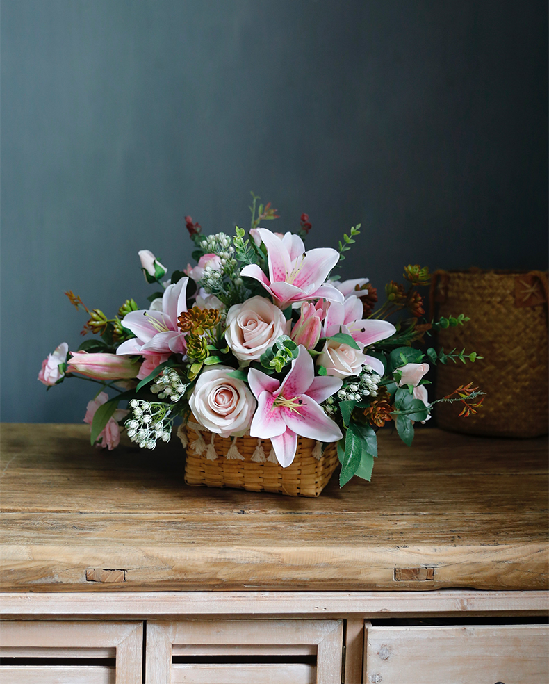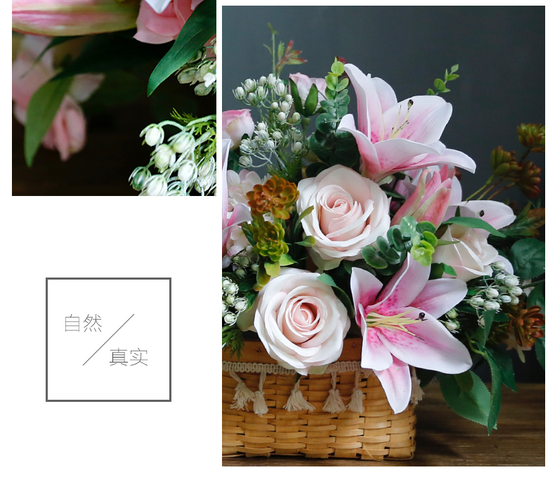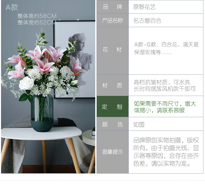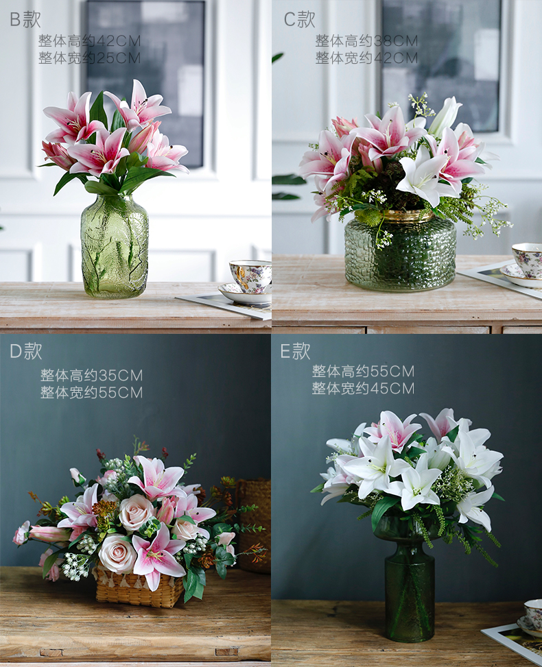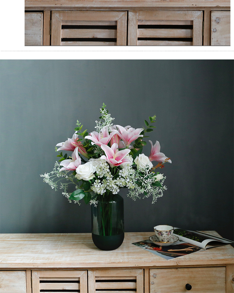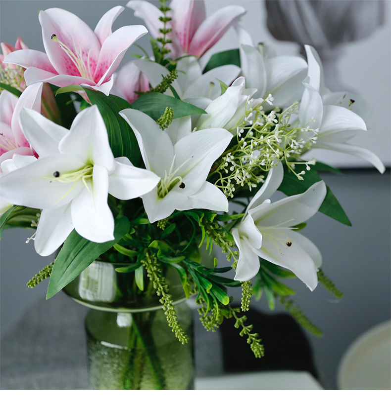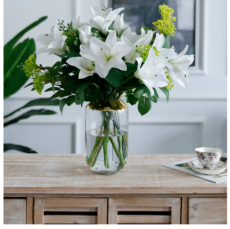 白百合花仿真花假花绢花北欧高档轻奢酒店客厅茶几摆设装饰花摆件