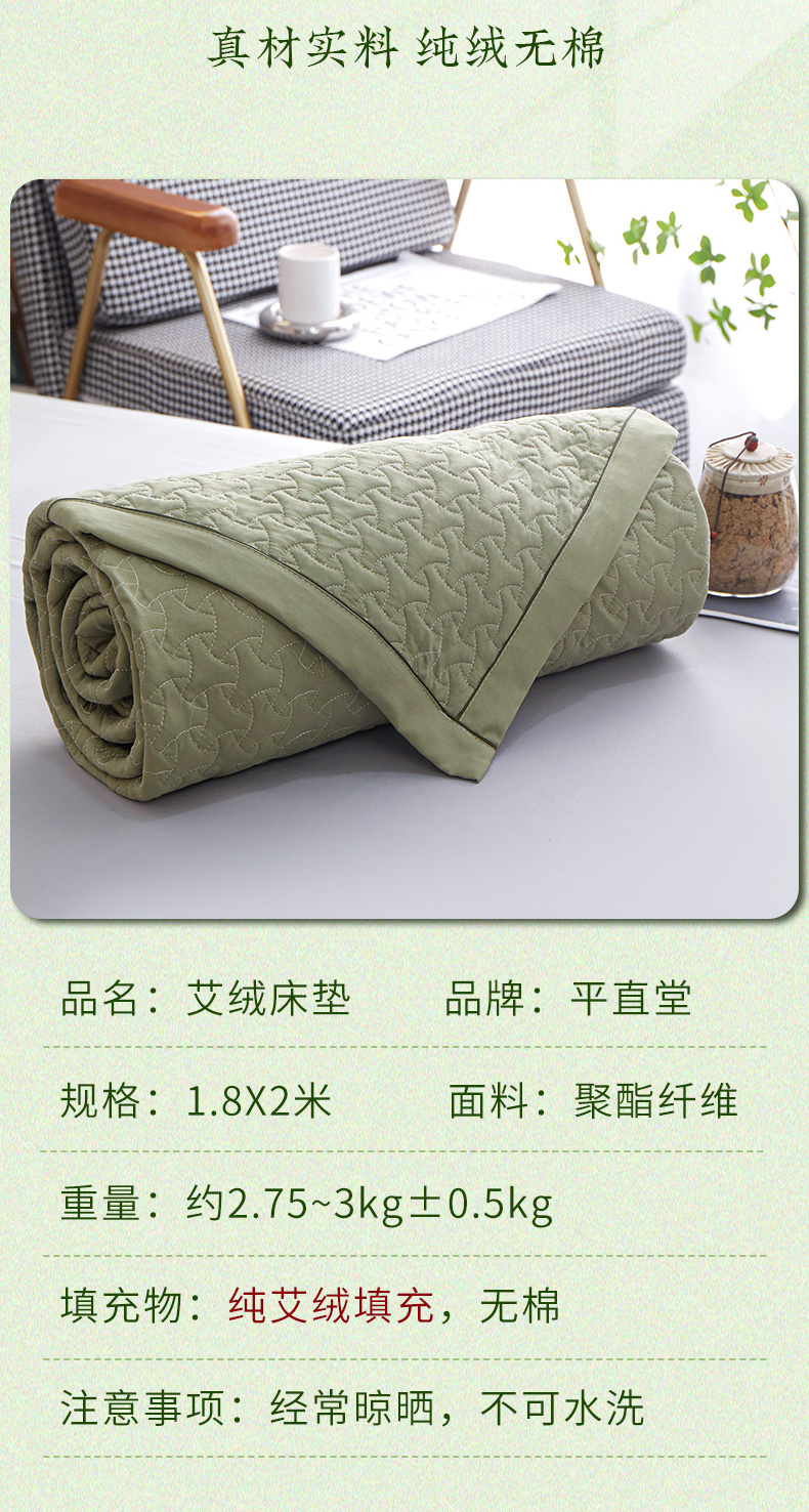 [屁侠推荐]平直堂·艾绒逐湿寒养身床垫 纯艾绒填充(拍一赠2枕头,赠品分开发货,约3-5天发出)