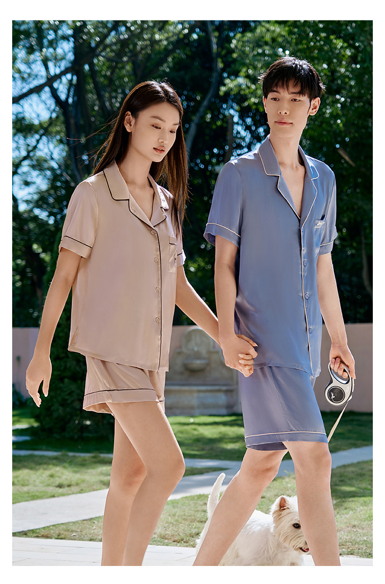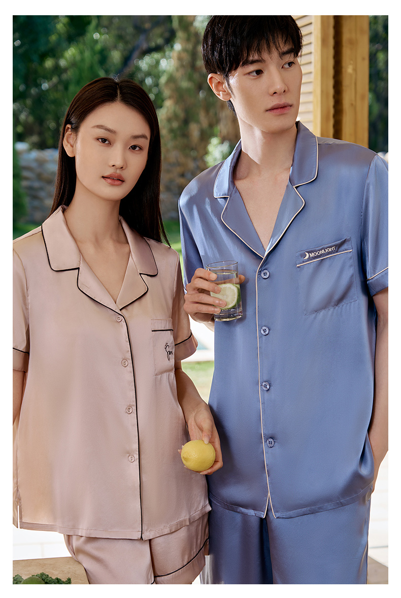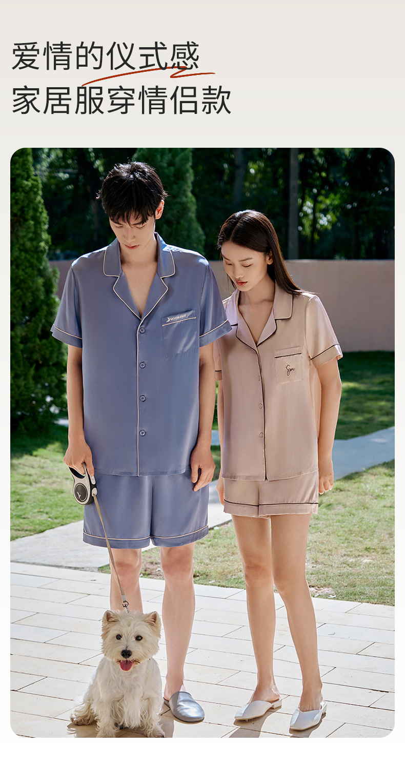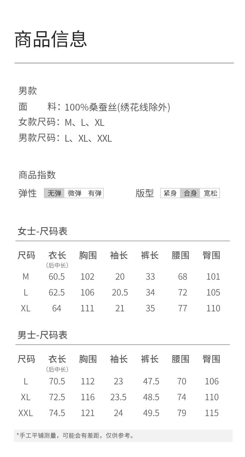 礼物】100%桑蚕丝情侣刺绣真丝睡衣宽松舒适衣裤套家居服金三塔(限价款) YSFBA408+YSMBB402
