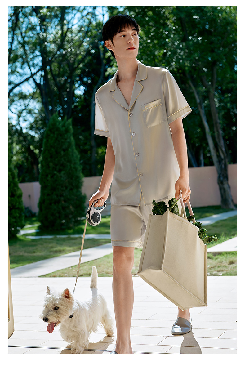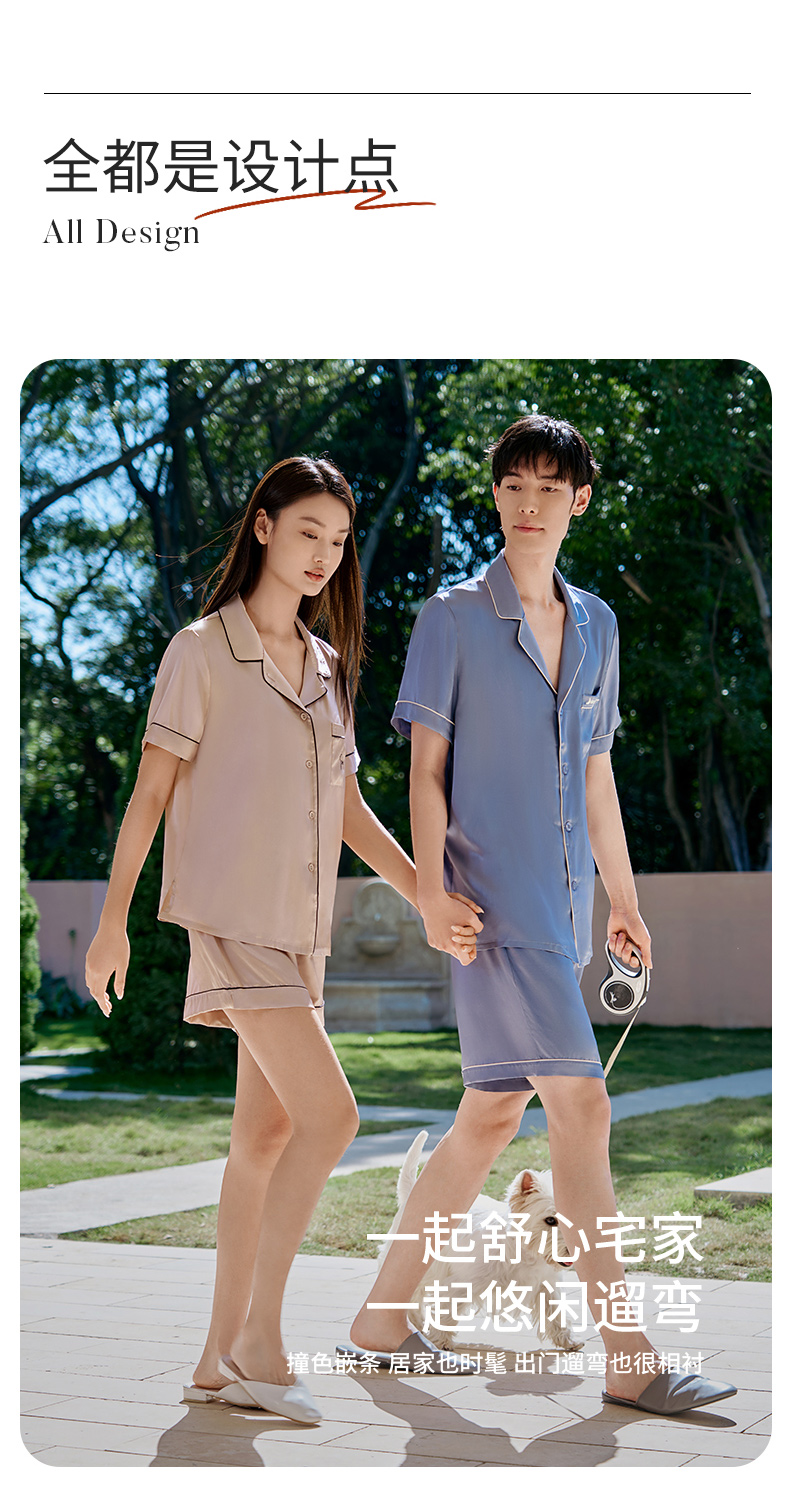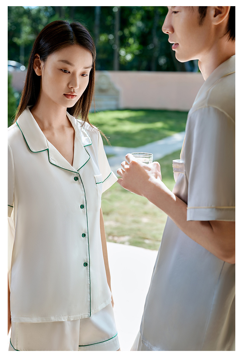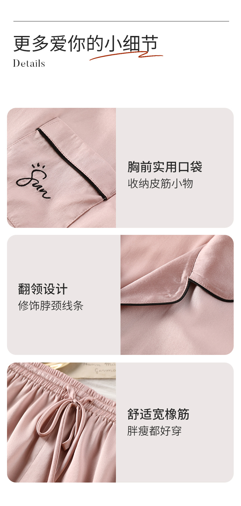 礼物】100%桑蚕丝情侣刺绣真丝睡衣宽松舒适衣裤套家居服金三塔(限价款) YSFBA408+YSMBB402