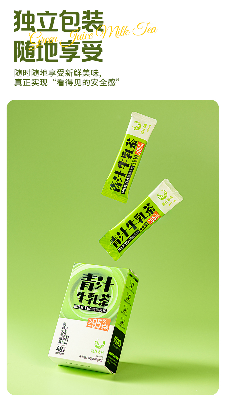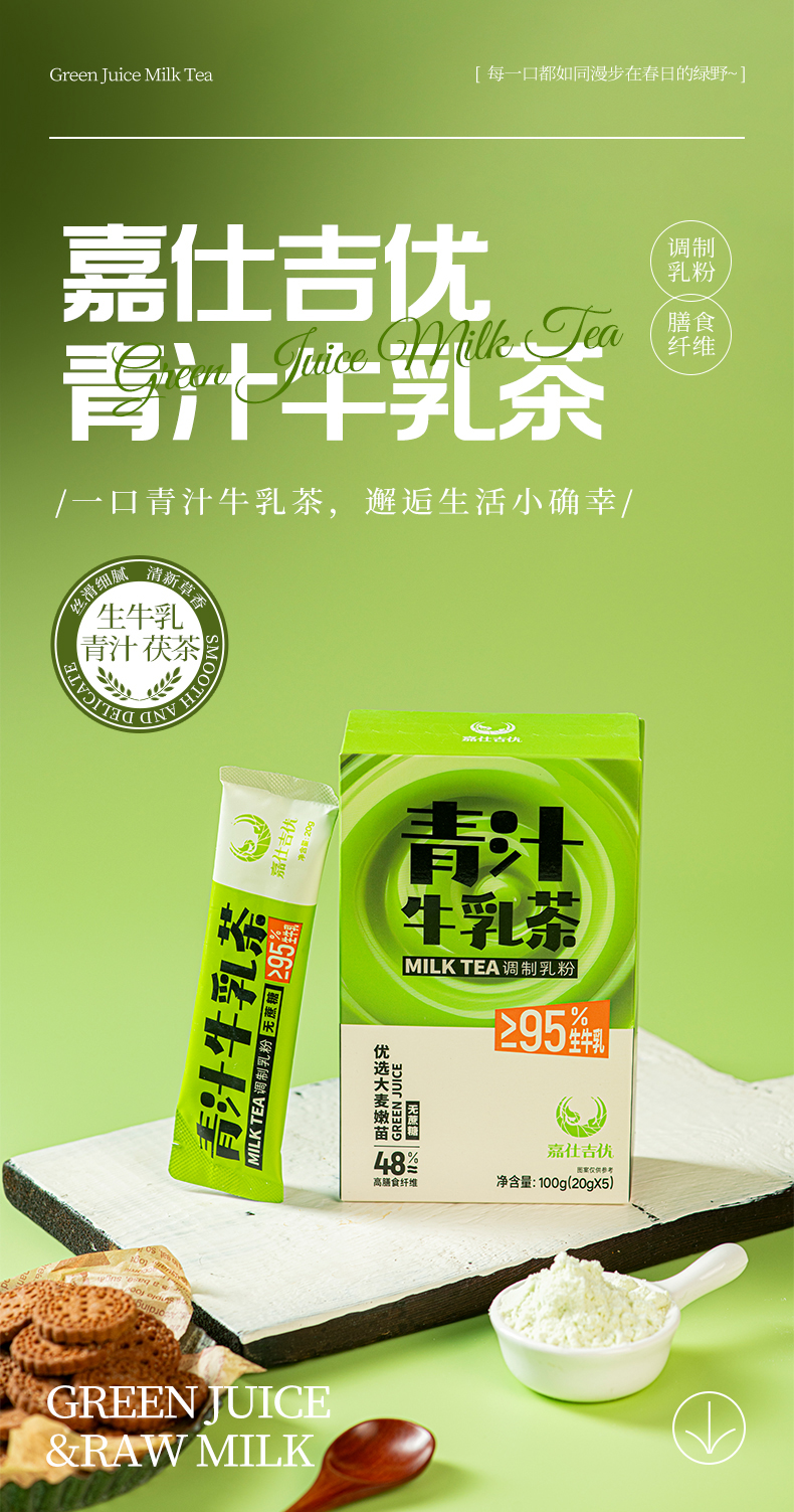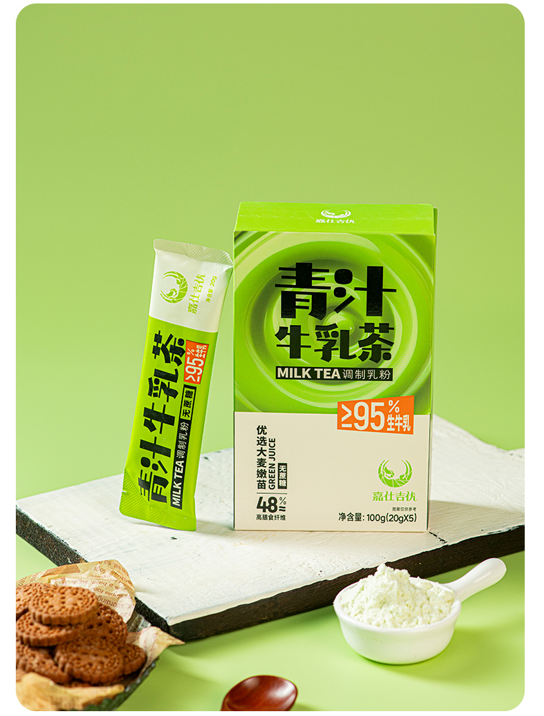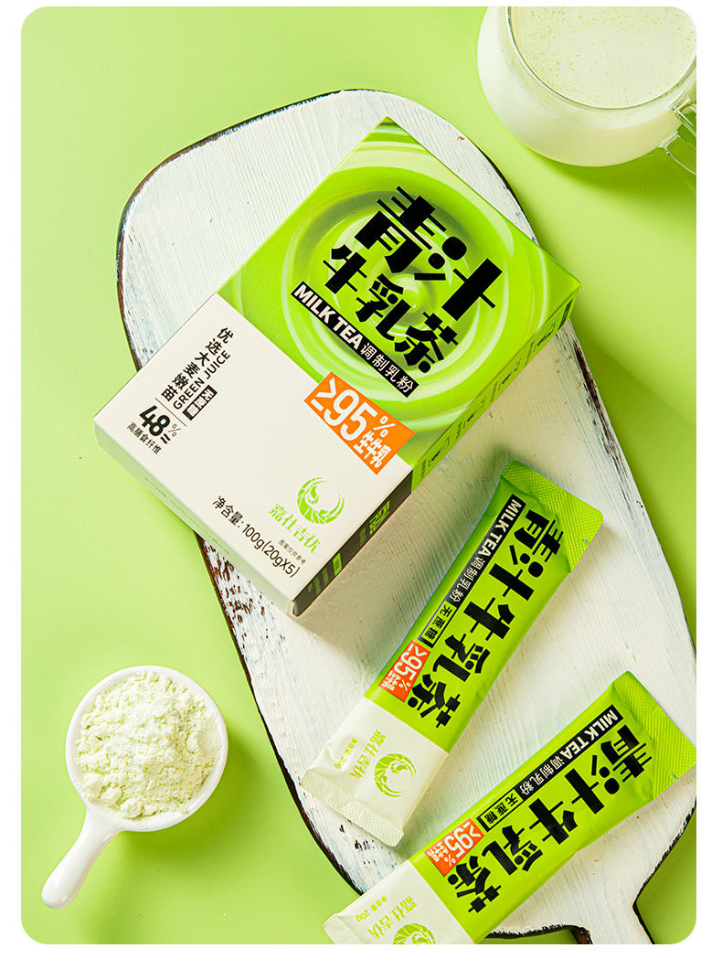 【青汁牛乳茶】95%高原生牛乳+青汁+茯茶,以高原生牛乳为基,大麦嫩苗产出的大麦苗粉,保证新鲜纯粹