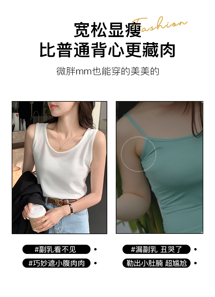 夏季薄款女士打底背心女柔棉舒适宽松内搭外穿外穿防走光背心女华夫格百搭背心