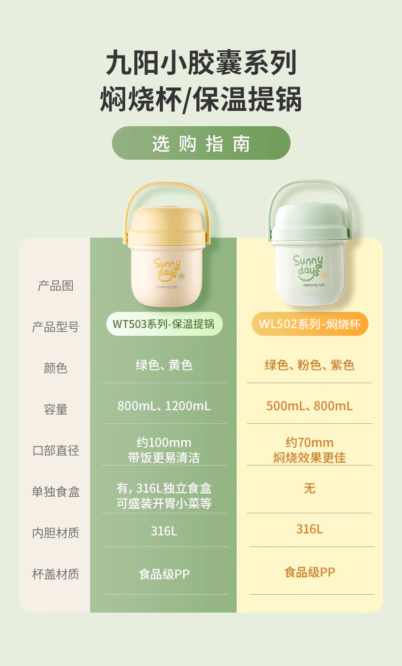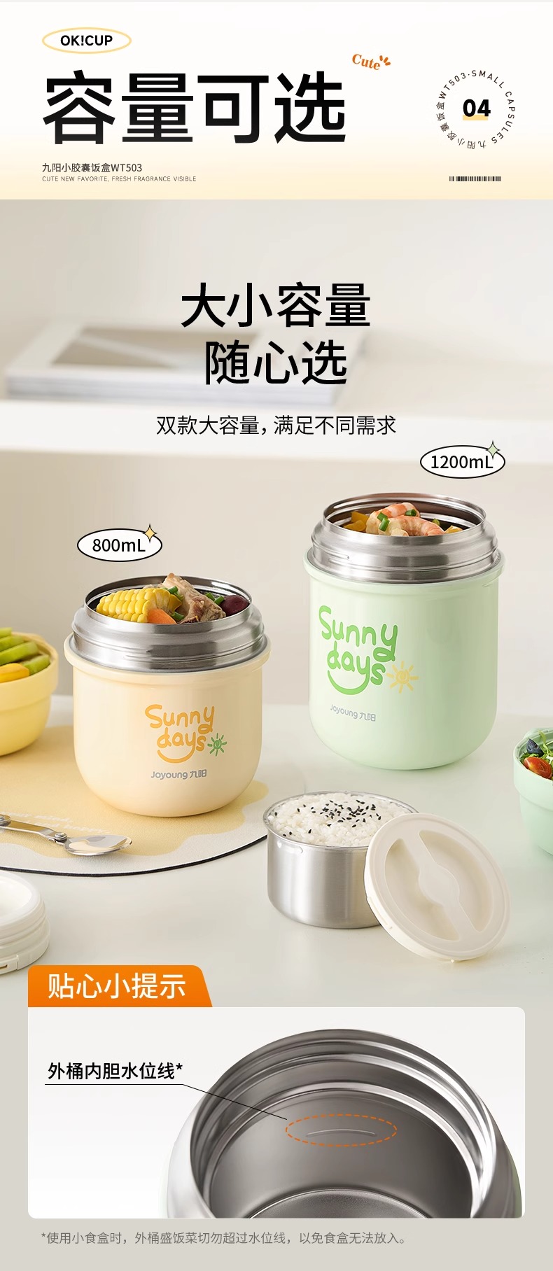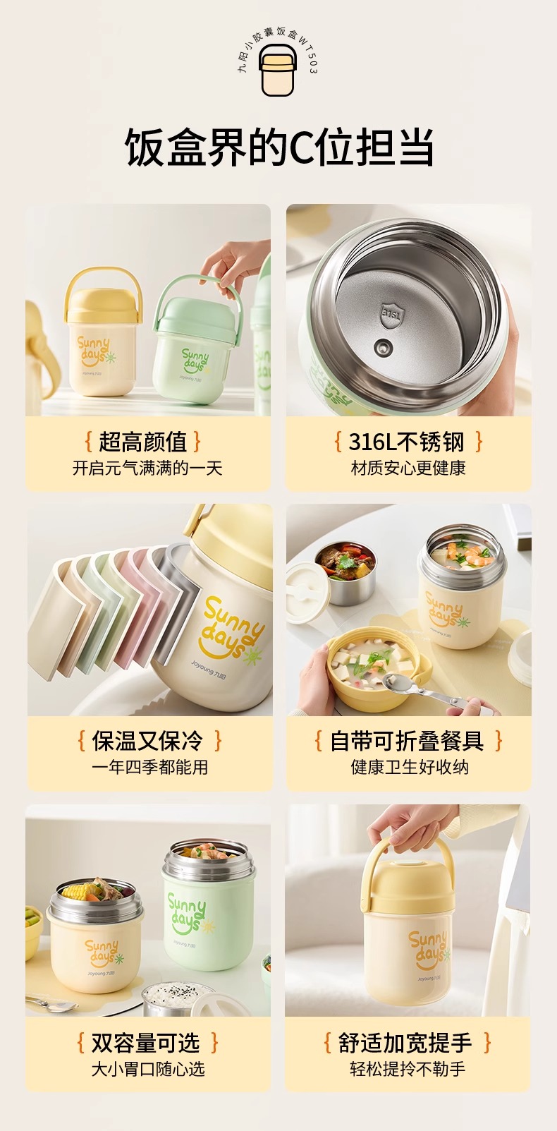 九阳小胶囊保温饭盒焖烧杯保温桶上班族带饭便当盒不锈钢保温提锅