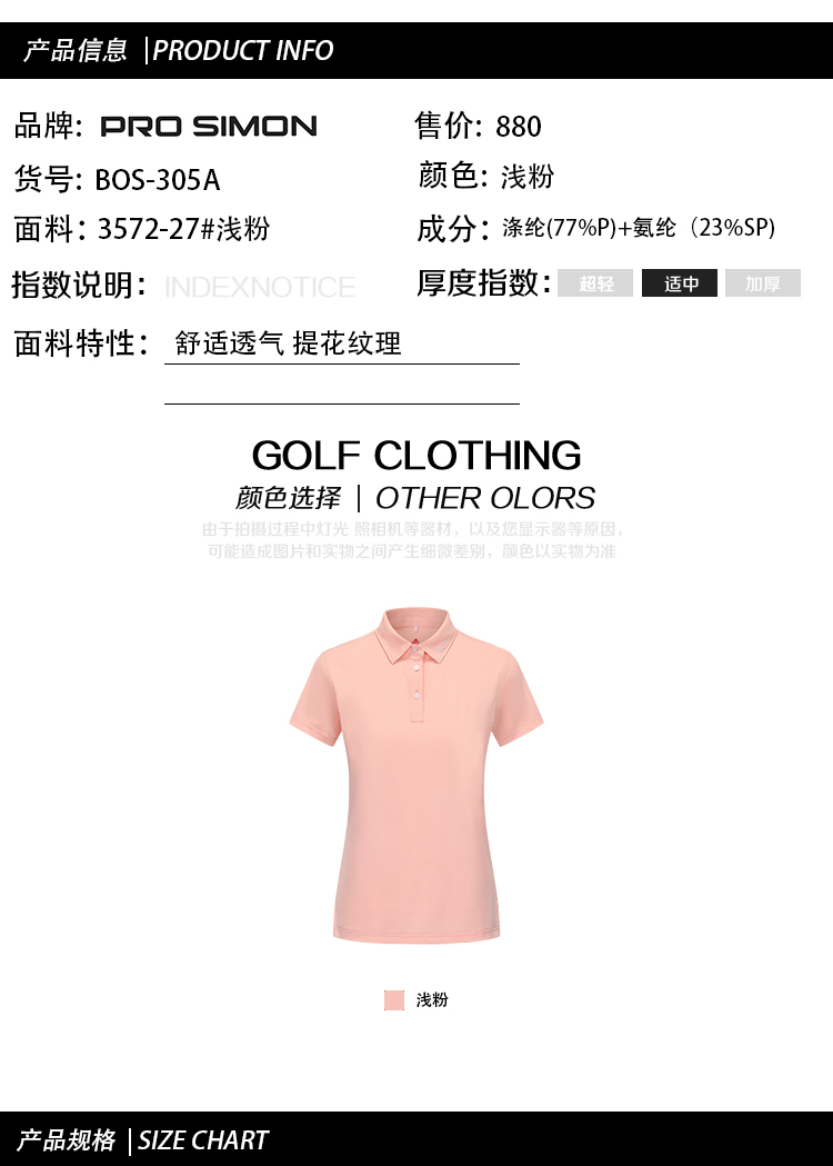 BOS-305A【基础款】(PROSIMON高尔夫春夏女款简约风短袖POLO衫)