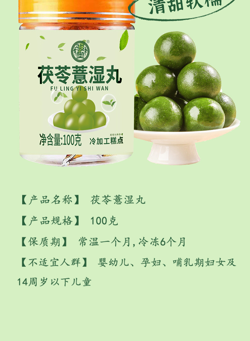 茯苓薏湿丸 清甜软糯色泽亮丽薏湿丸远离油腻零食小吃