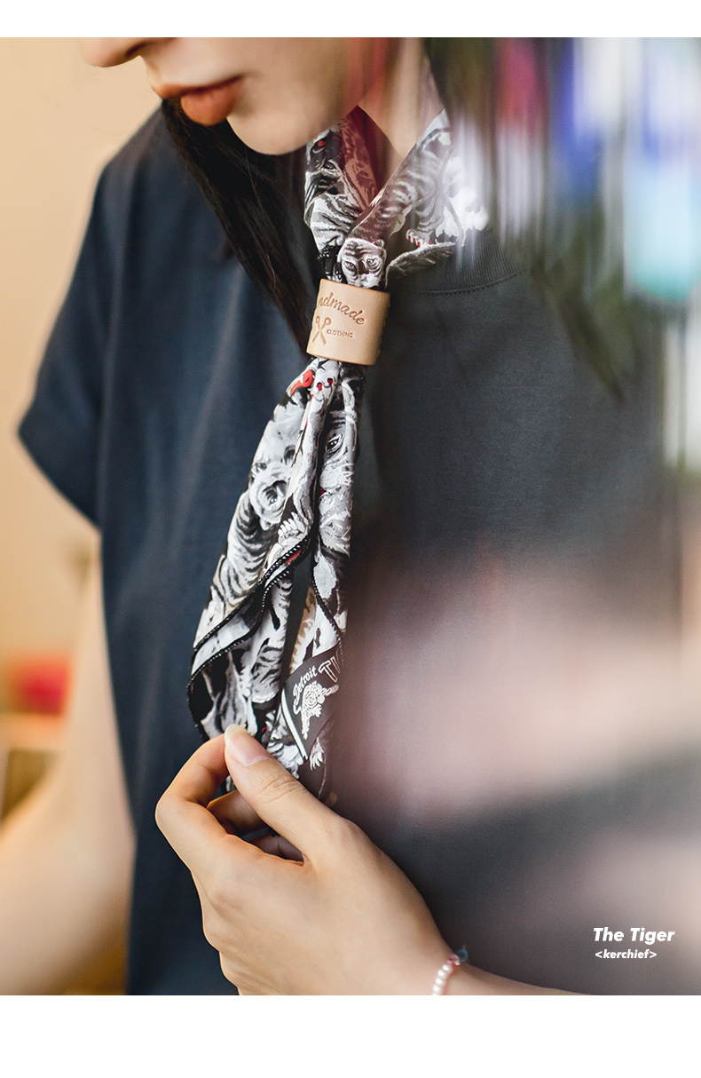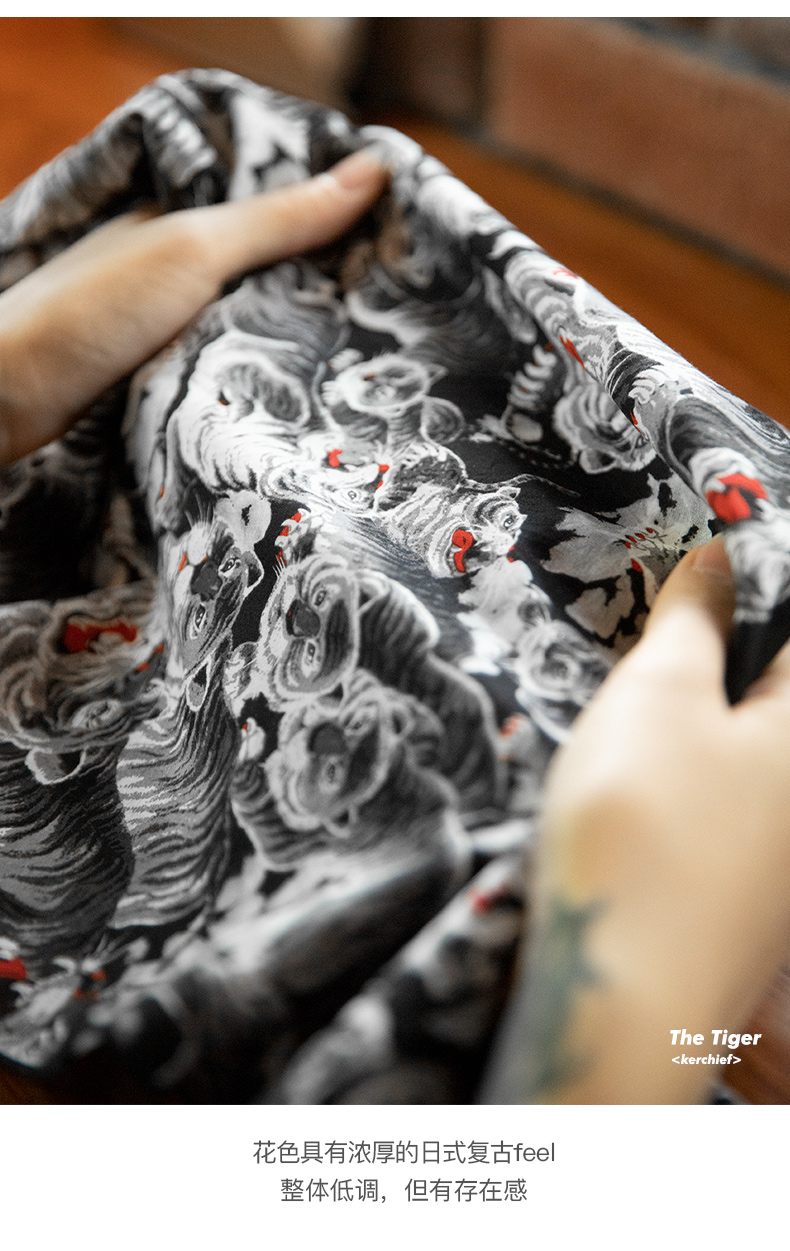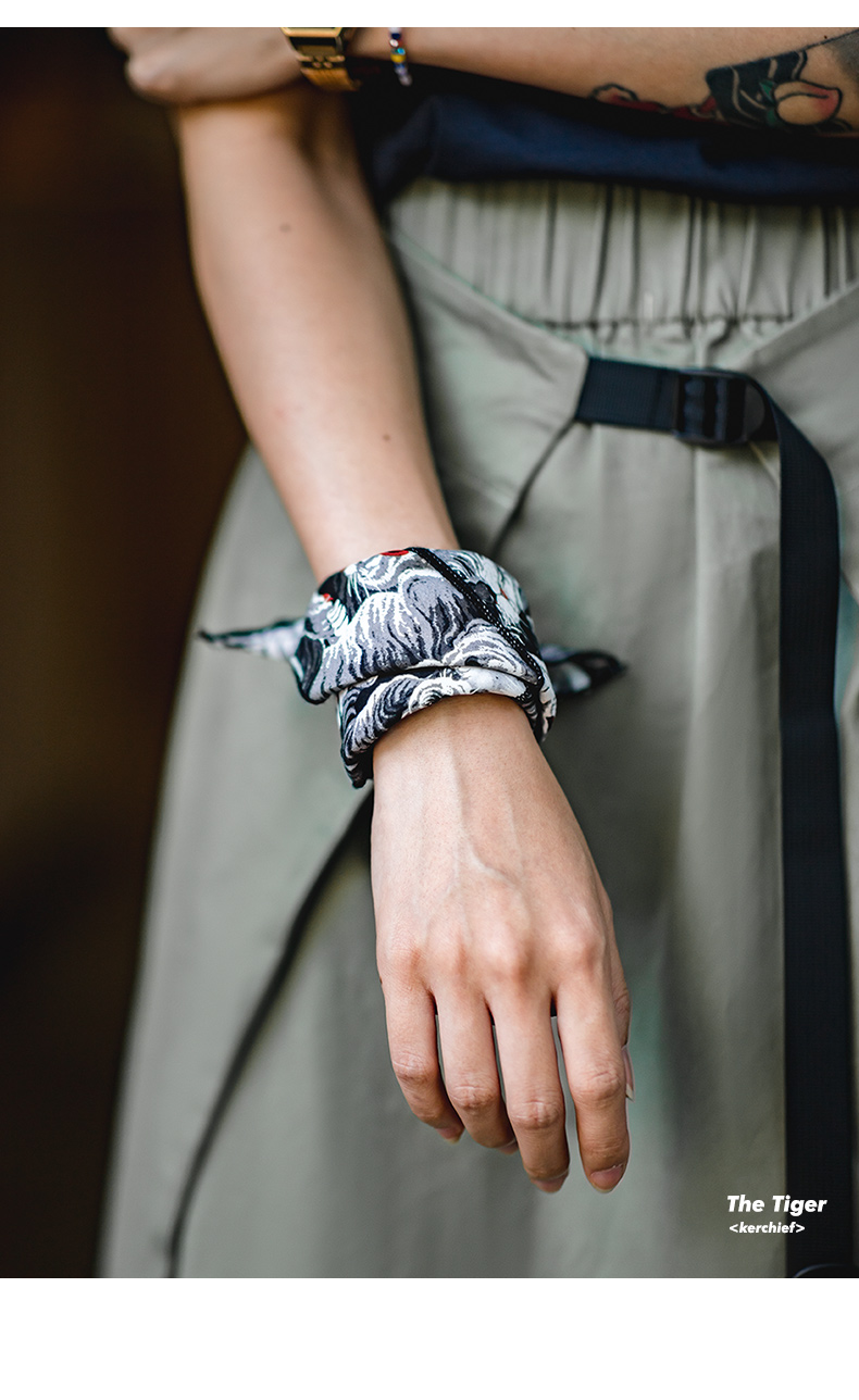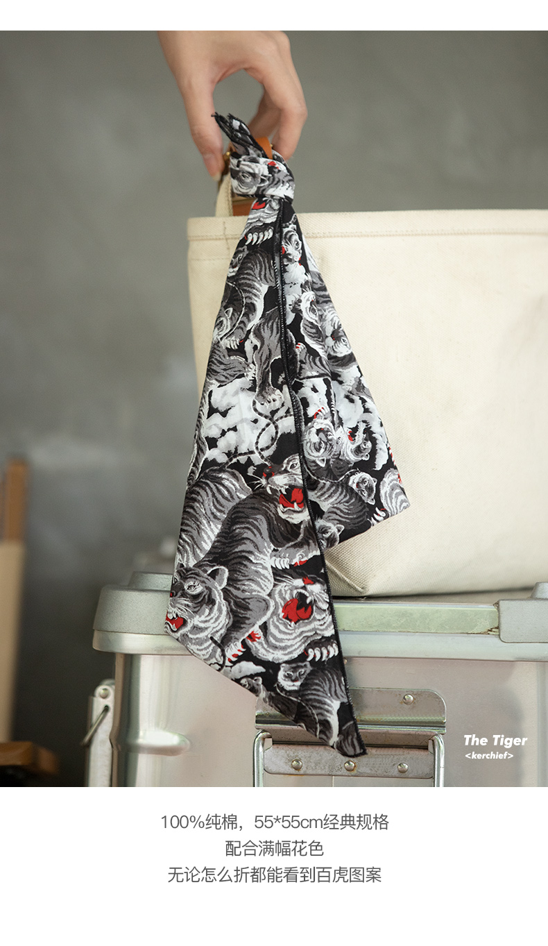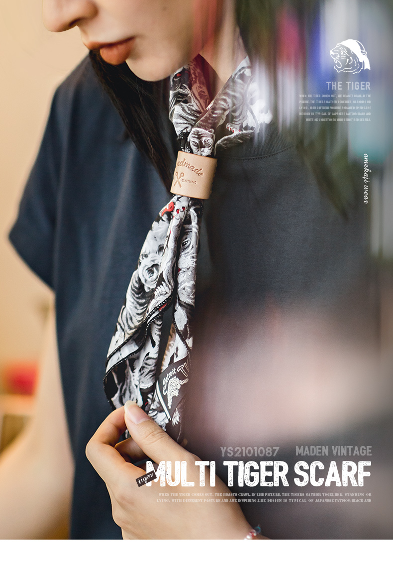 马登日系复古百虎图方巾扣腕带阿美咔叽头巾领巾装饰包带发带女