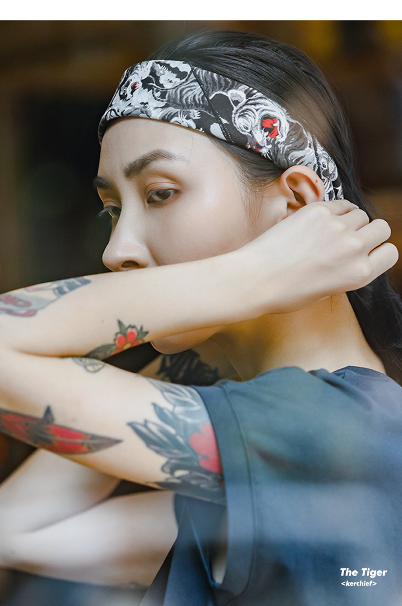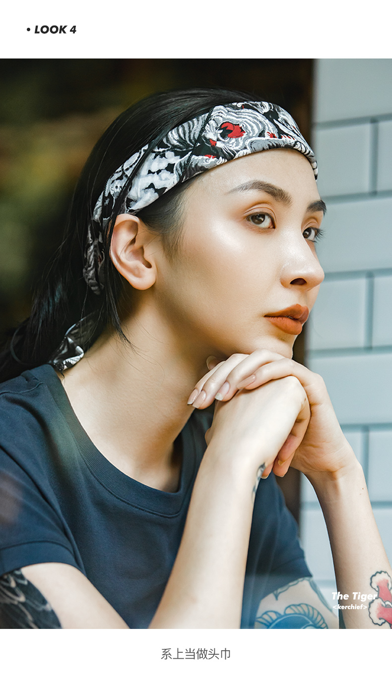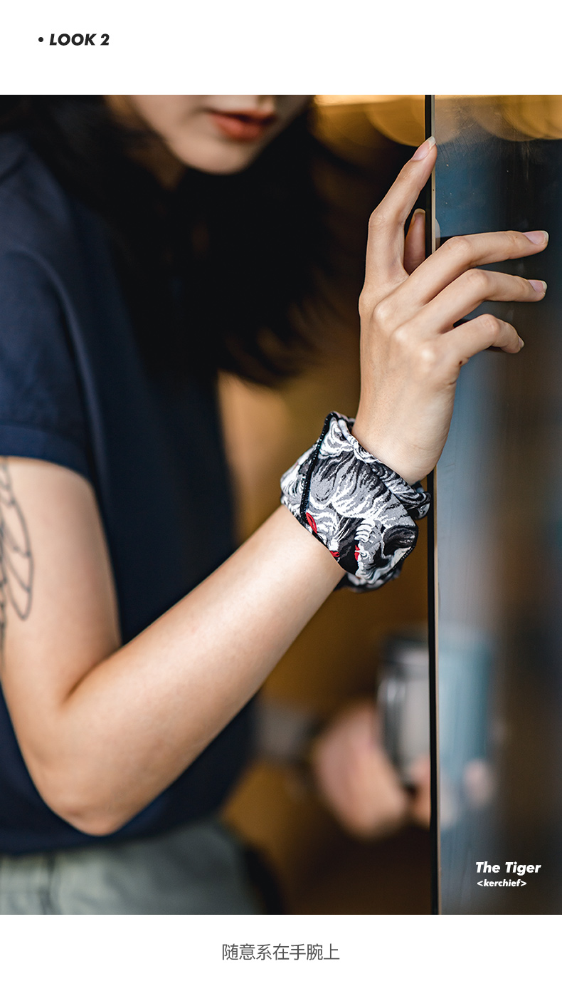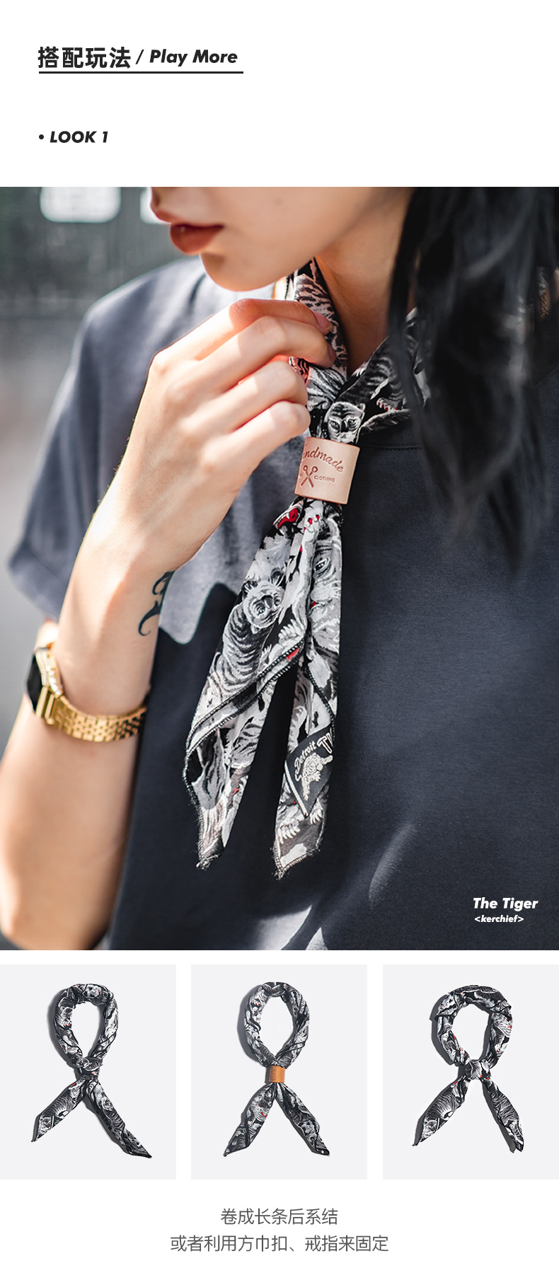 马登日系复古百虎图方巾扣腕带阿美咔叽头巾领巾装饰包带发带女