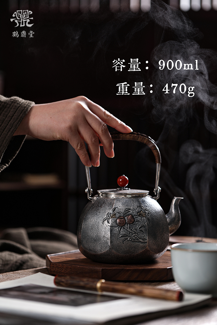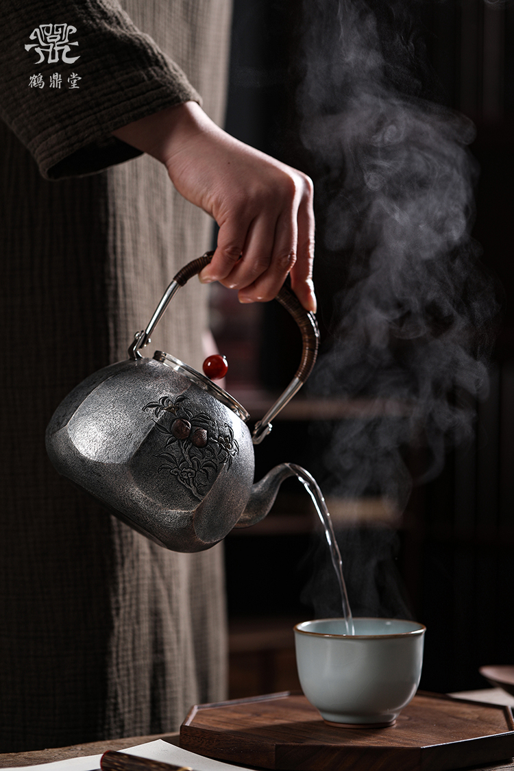 鹤鼎堂银壶于野系列蝃蝀麻纹汤沸(缺货)(缺货)
