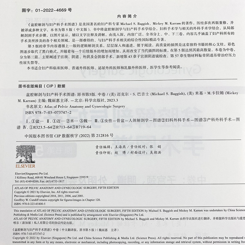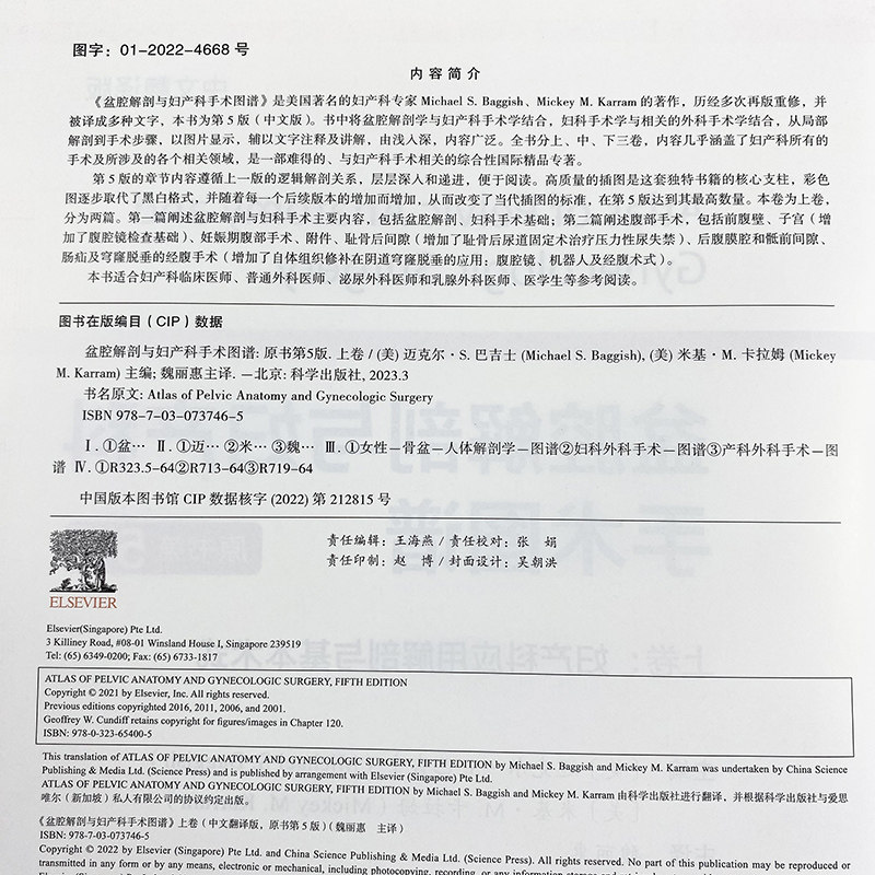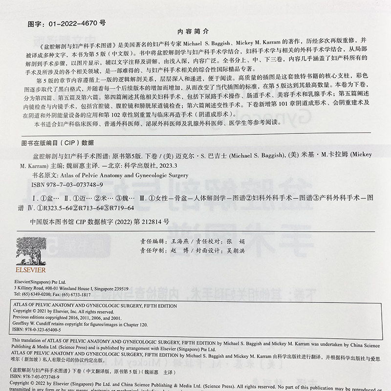 《盆腔解剖与妇产科手术图谱》是美国著名的妇产科专家 Michael S. Baggish、Mickey M. Karram 的著作,历经多次再版重修,并被译成多种文字,本书为第5版(中文版)。书中将盆腔解剖学与妇产科手术学结合,妇科手术学与相关的外科手术学结合,从局部解剖到手术步骤,以图片显示,辅以文字注释及讲解,由浅入深,内容广泛。全书分上、中、下三卷,内容几乎涵盖了妇产科所有的手术及所涉及的各个相关领域,是一部难得的、与妇产科手术相关的综合性国际精品专著。第5版的章节内容遵循上一版的逻辑解剖关系,层层深入和递进,便于阅读。高质量的插图是这套独特书籍的核心支柱,彩色图逐步取代了黑白格式。