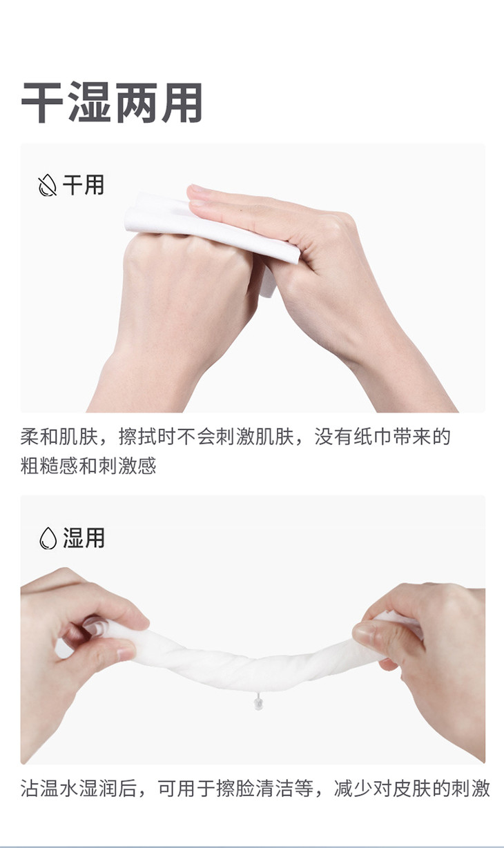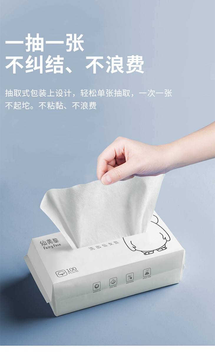 【敏感肌放心用】仙美黎 洗脸巾纯棉卸妆巾抽取式干湿两用平纹100抽