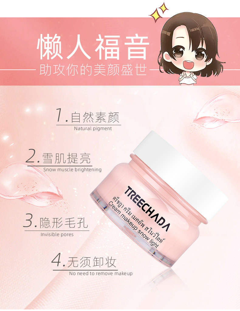 泰国TREECHADA 懒人霜TR素颜霜乳液遮瑕隔离保湿提亮肤色提亮学生裸妆