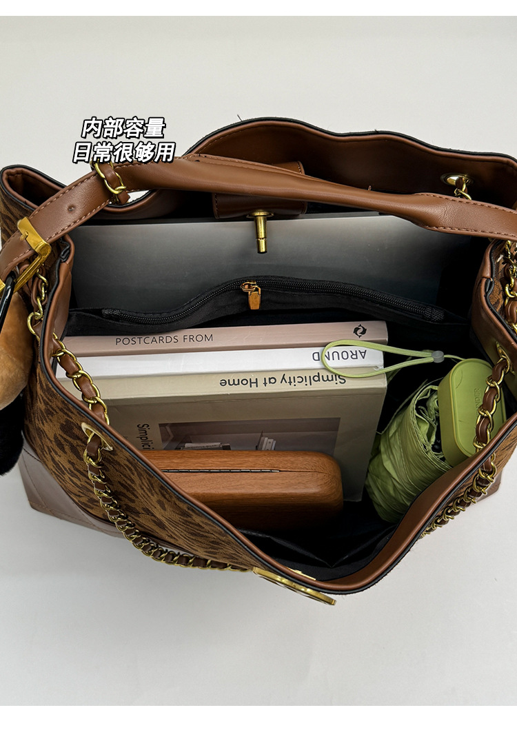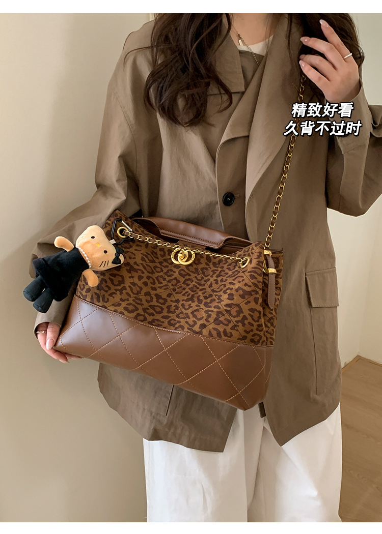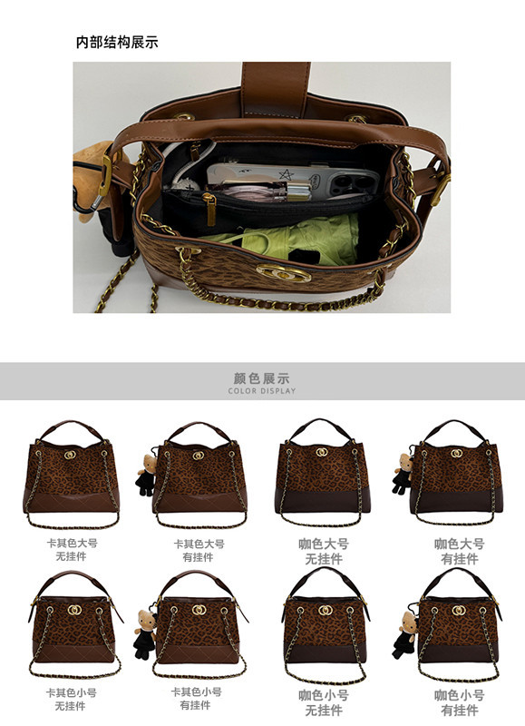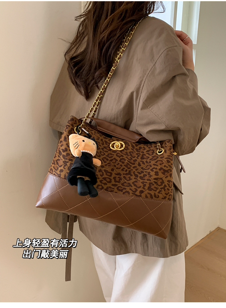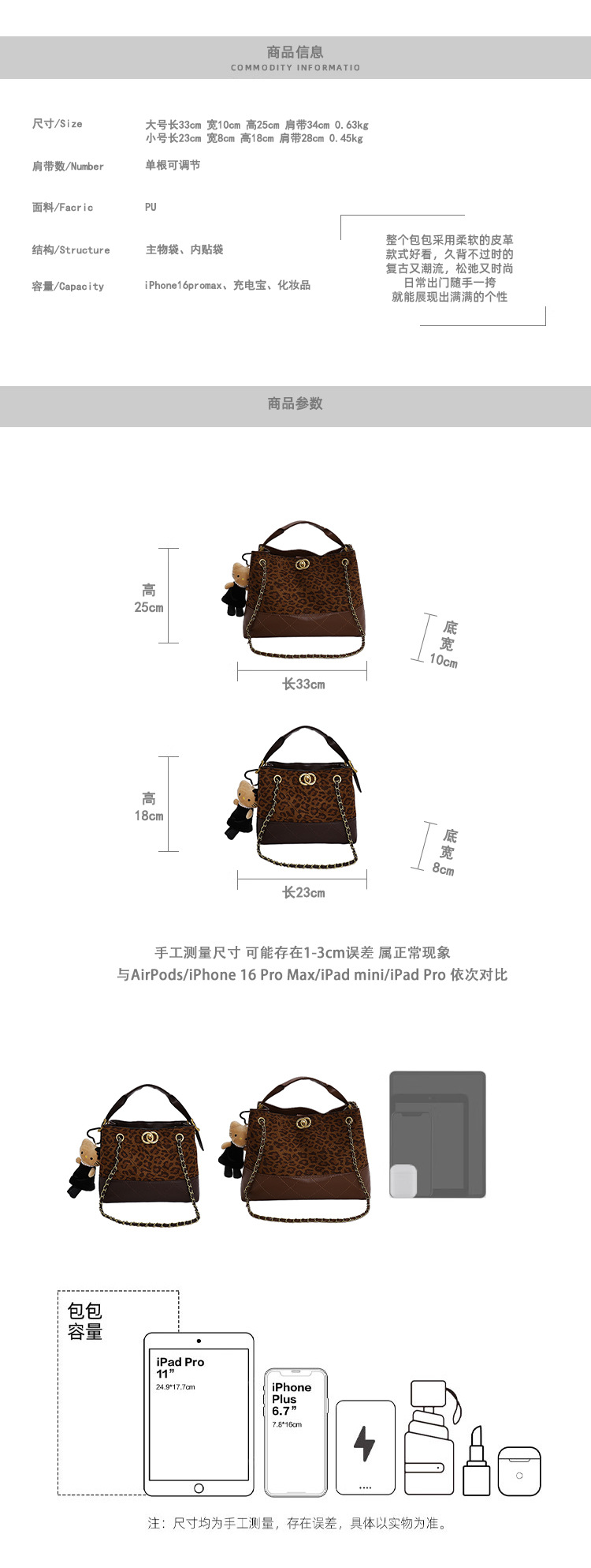 【原创爆款❗️豹纹单肩托特包】复古潮流松弛又时尚,日常出门随手一挎,采用柔软的皮革款,久背不过时,2026新款撞色复古链条单肩腋下包手提斜挎单肩包包QQ