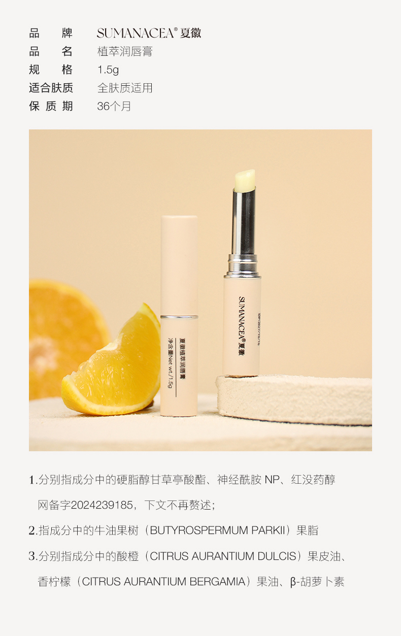 【夏徽-植萃润唇膏】真正的纯净植萃配方 涂一次唇膏=敷十次唇膜 多重植萃润养体系,滋润度高!