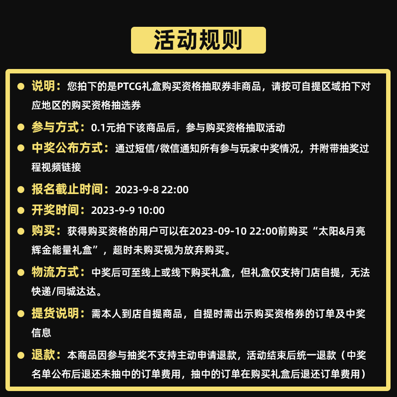 【福州地区专拍·购买资格抽选券】宝可梦 PTCG 集换式卡牌 太阳&月亮 辉金能量礼盒购买资格抽取券