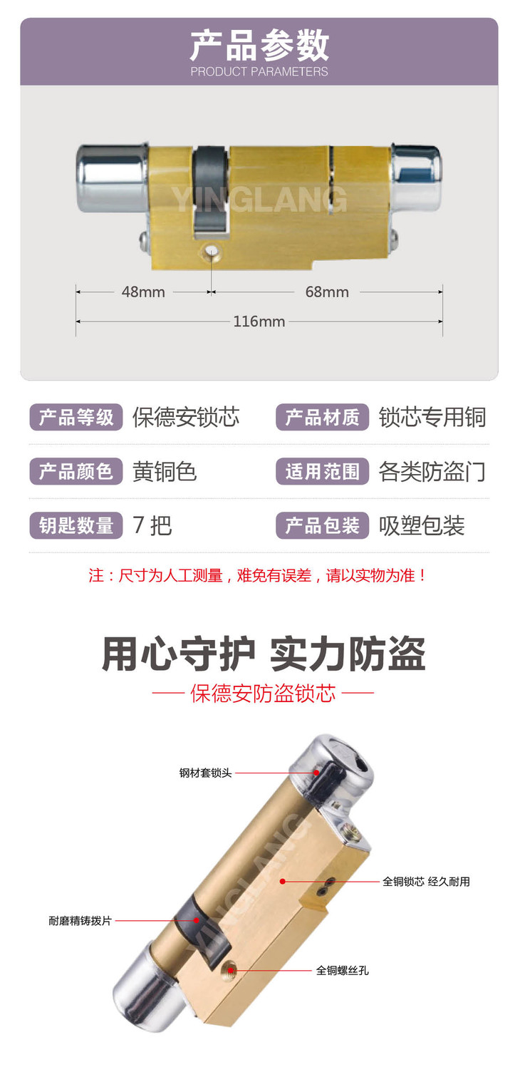 〖B129〗适用保德安锁芯B23型48+68=116偏