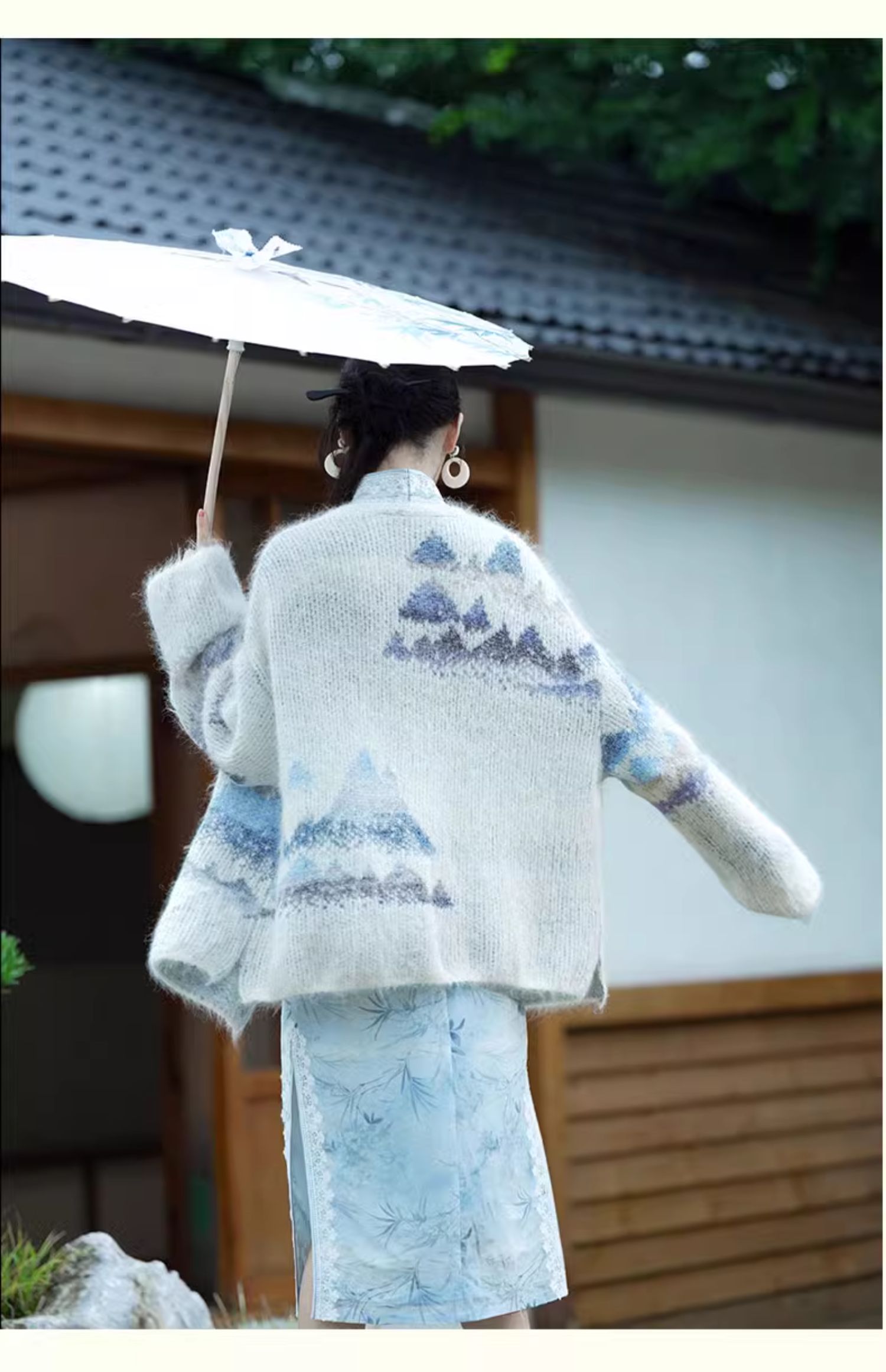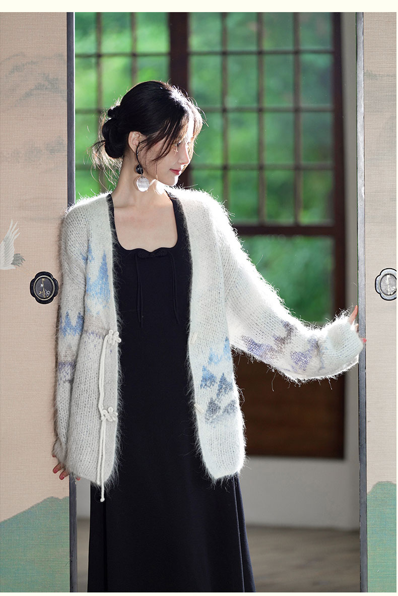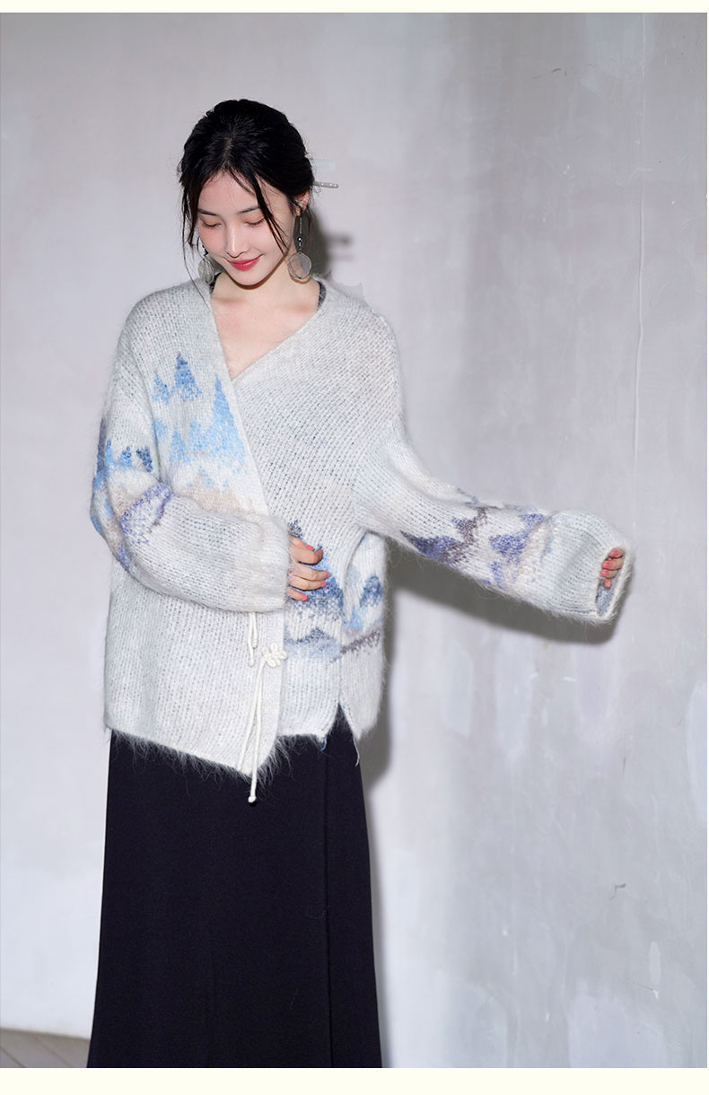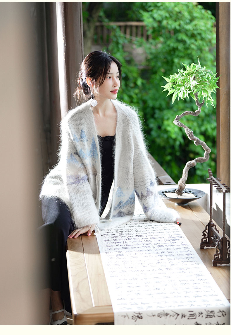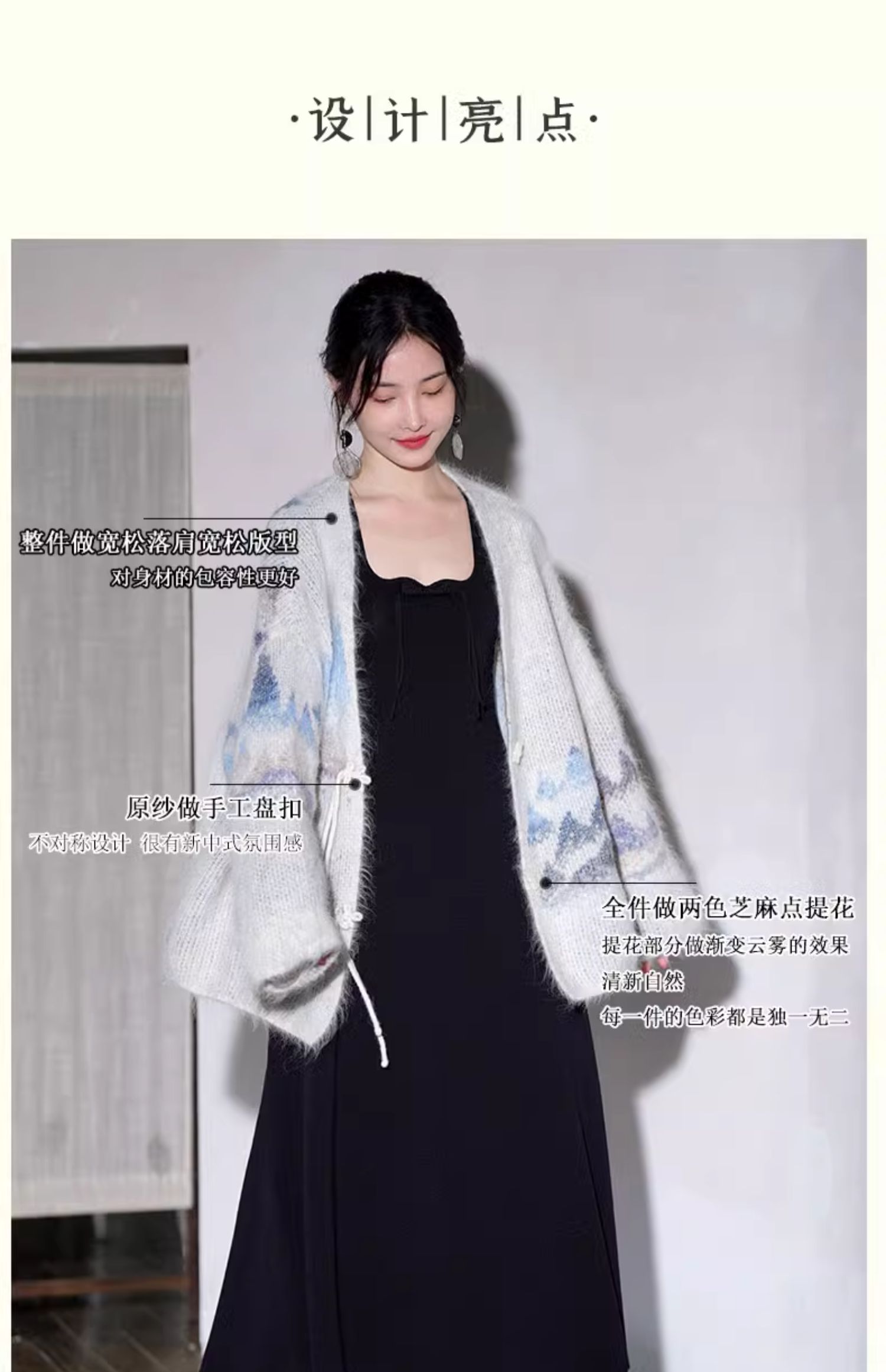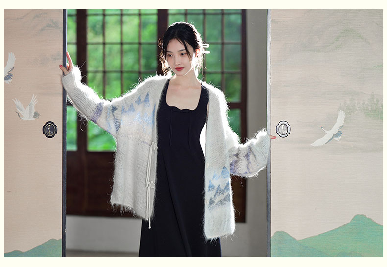 E.Beauty/逸·红颜雪影25年秋新羊驼毛落肩宽松版暖感宽松毛衣