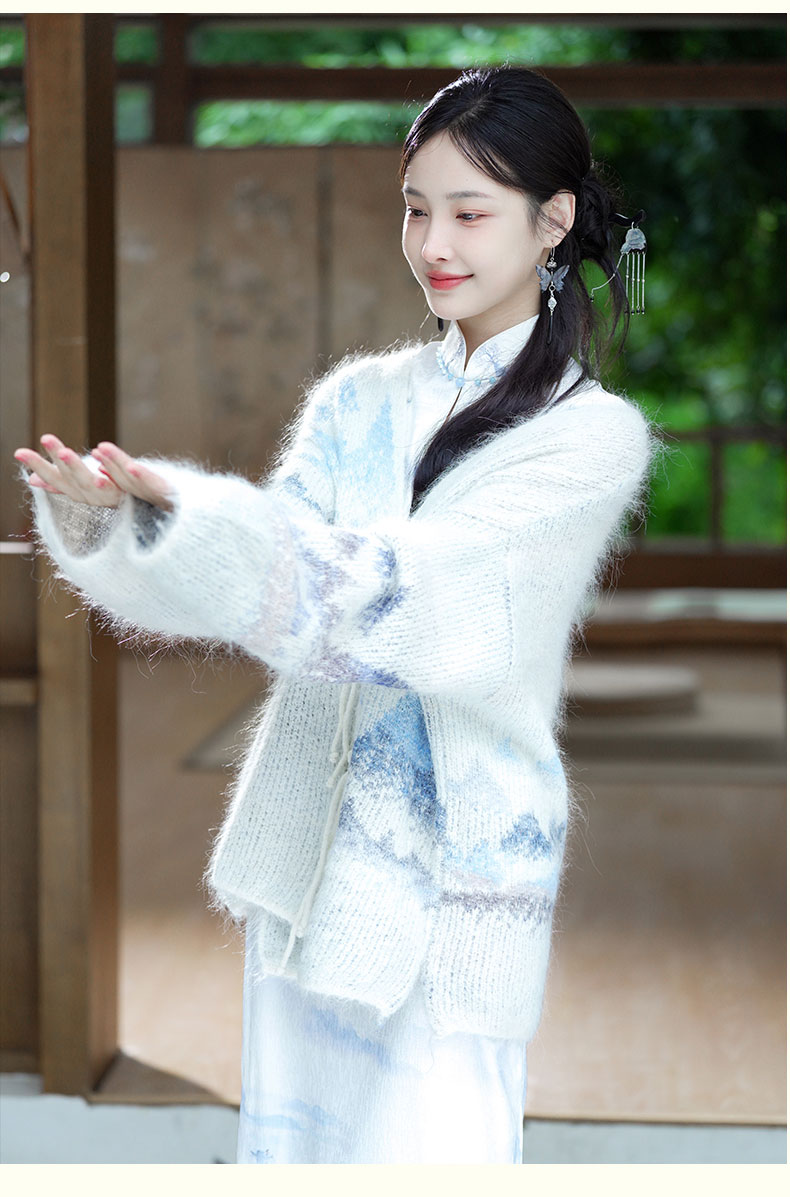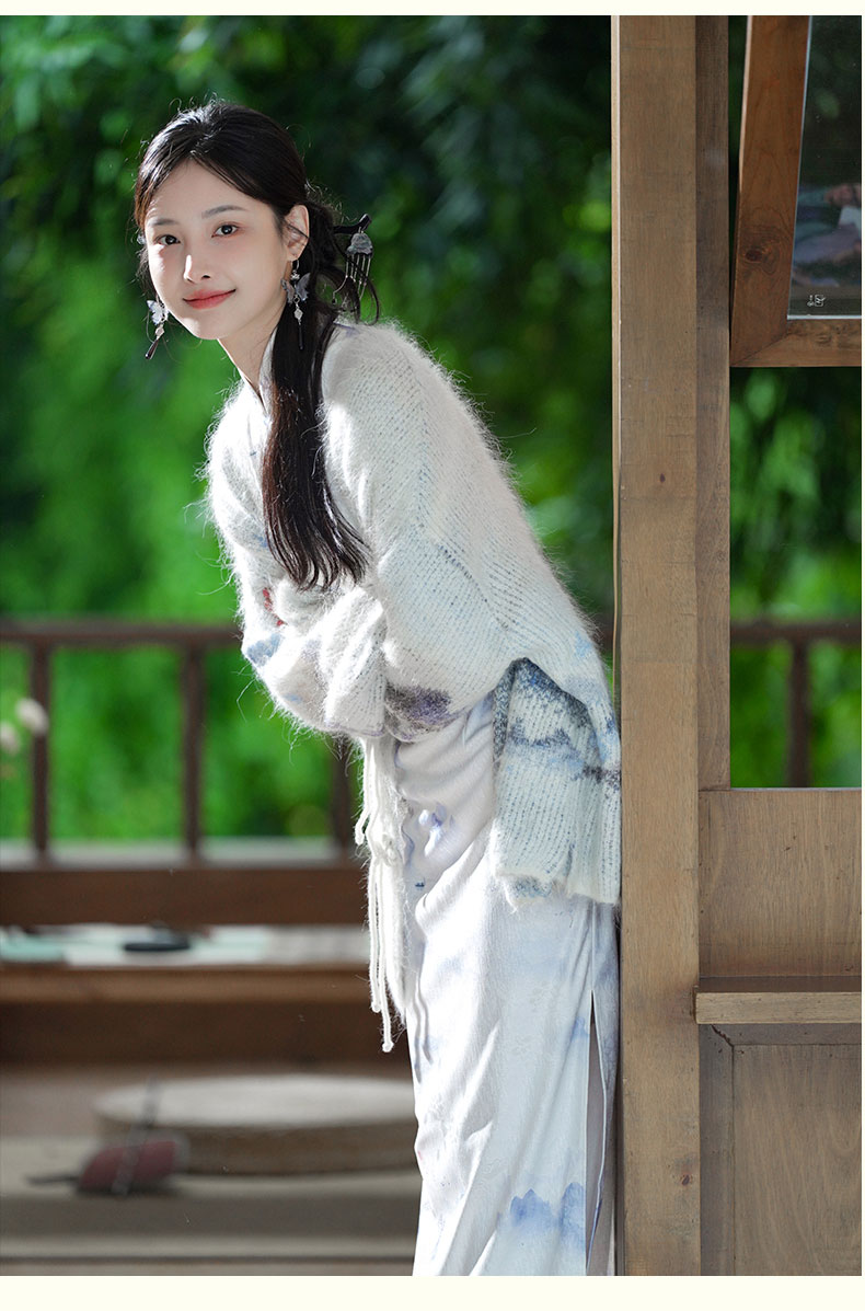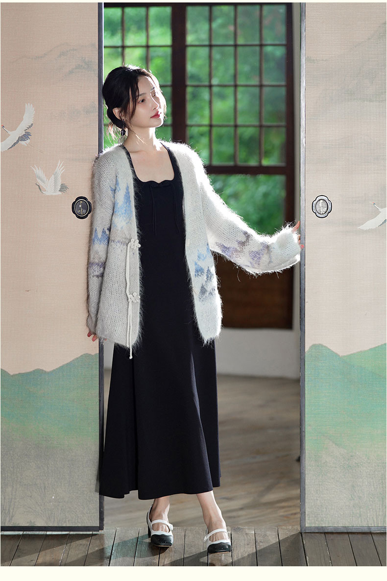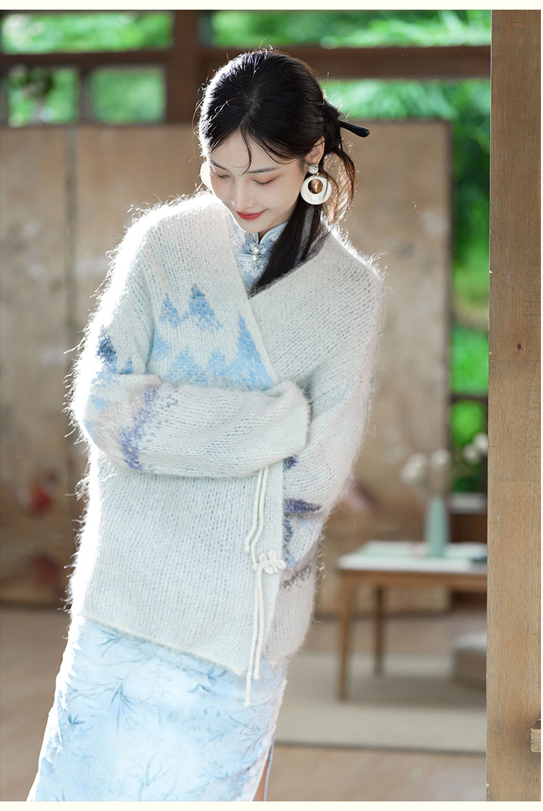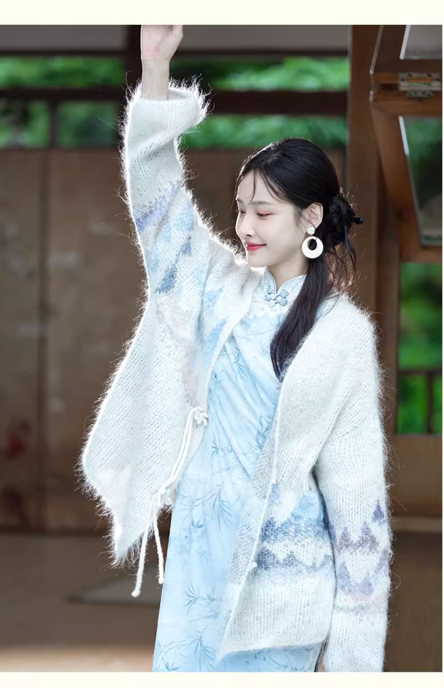 E.Beauty/逸·红颜雪影25年秋新羊驼毛落肩宽松版暖感宽松毛衣