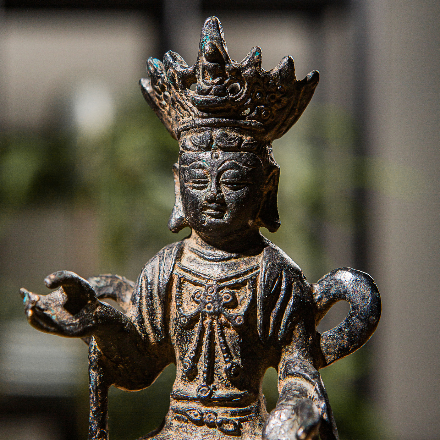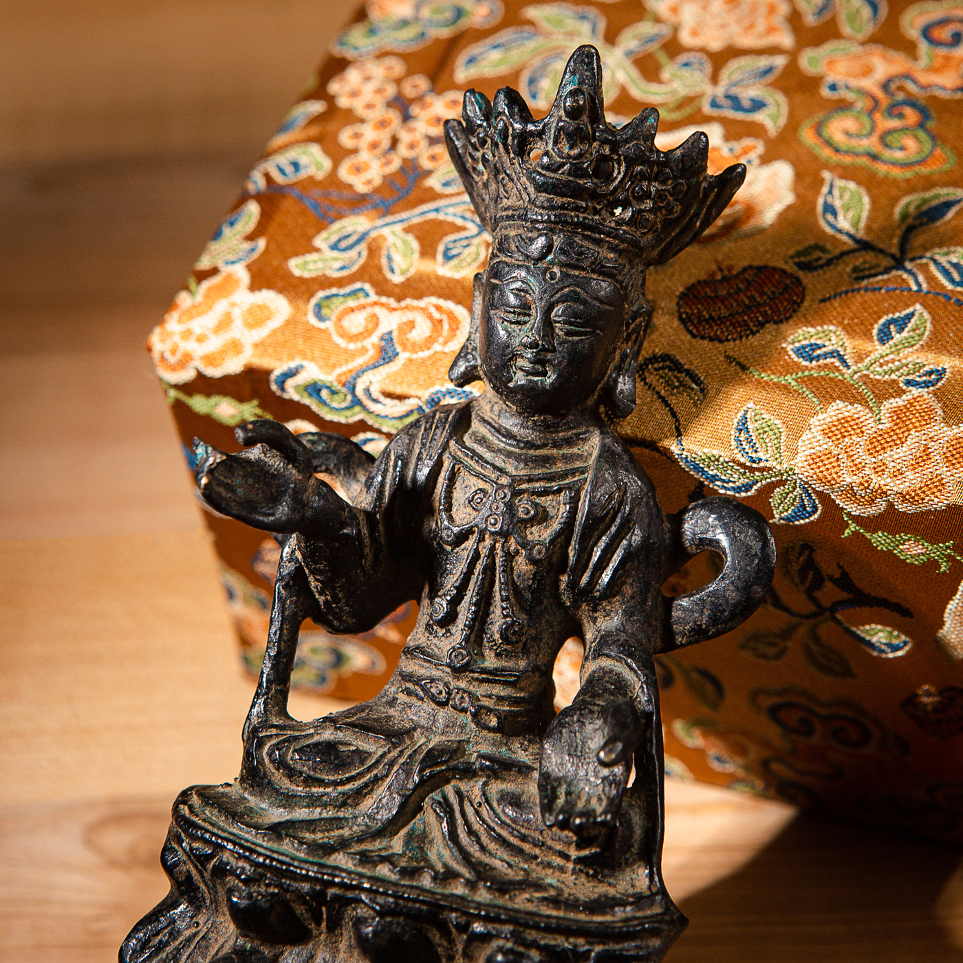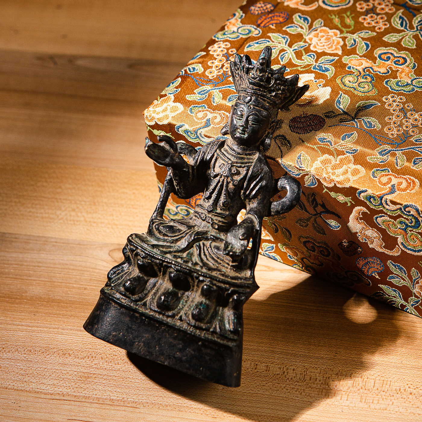 清代铜菩萨像,铜胎厚实,包浆自然,佛像开脸祥和,宝冠繁复,衣纹流畅,每一处细节都透露着庄重与雅致,可遇不遇求。