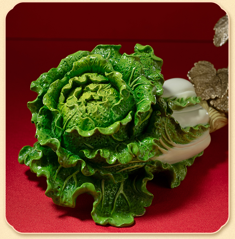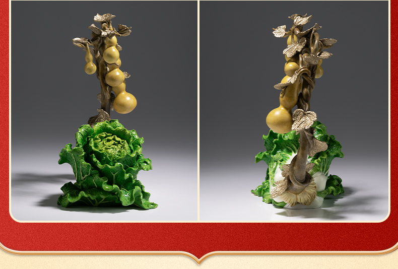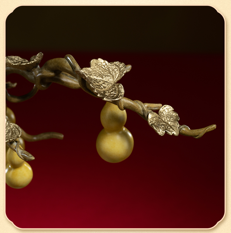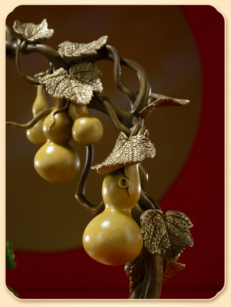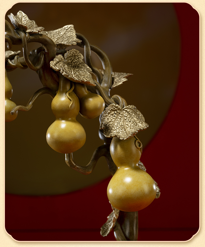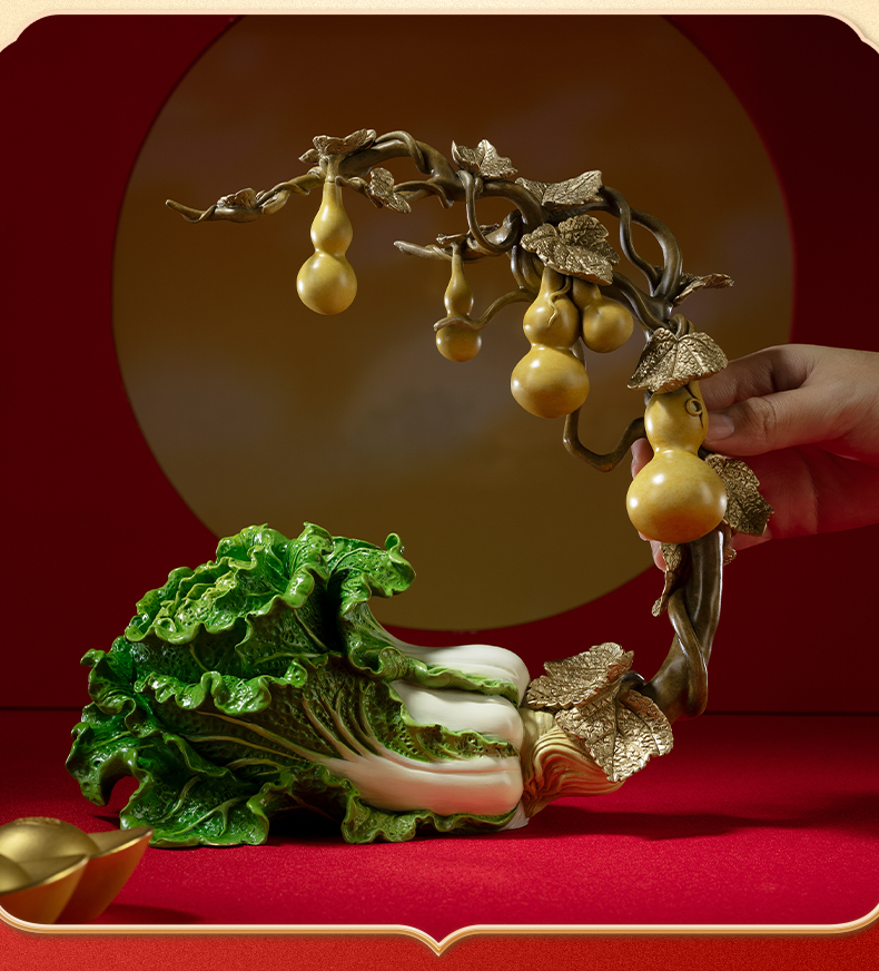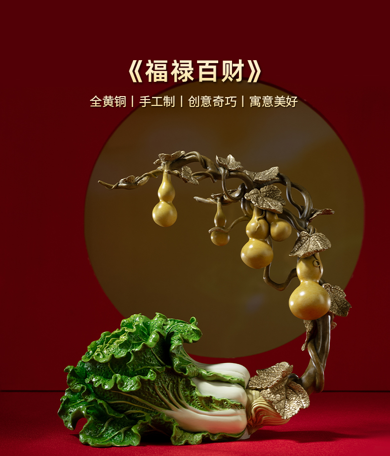 铜师傅《福禄百财》桌面电视柜铜葫芦白菜摆件 家居装饰工艺品