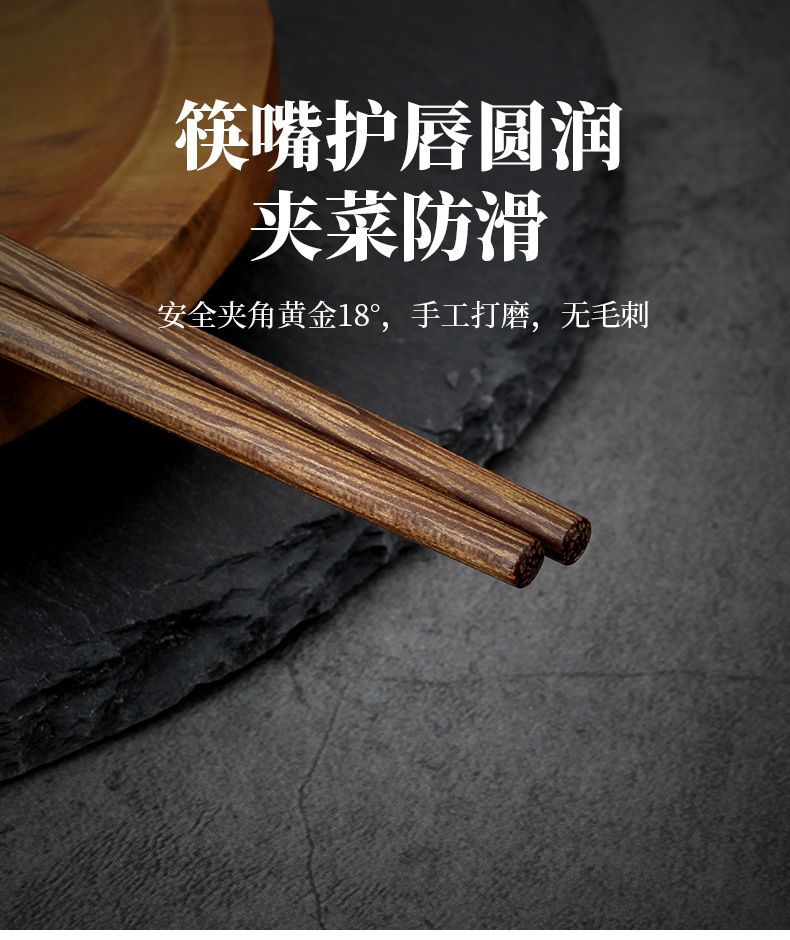 鸡翅木筷子家用红檀木无漆无蜡抗菌防霉木质实木家庭装防滑快子
