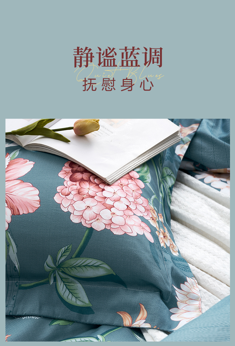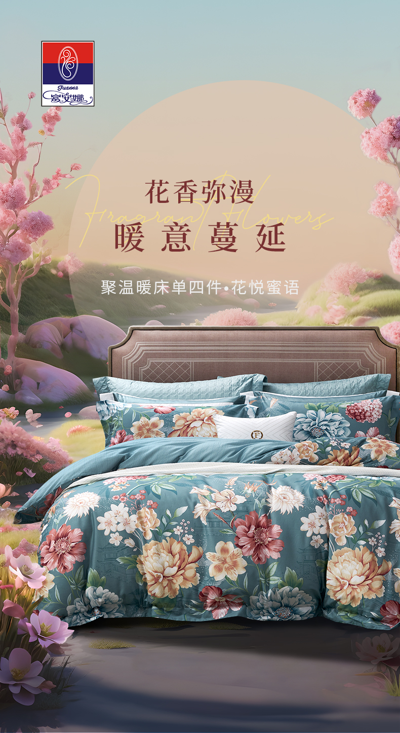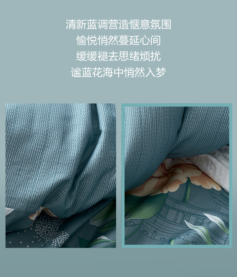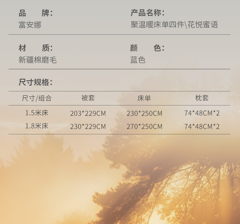 【6楼】富安娜聚温暖床单四件\花悦蜜语,蓝,零售价2380/2580元