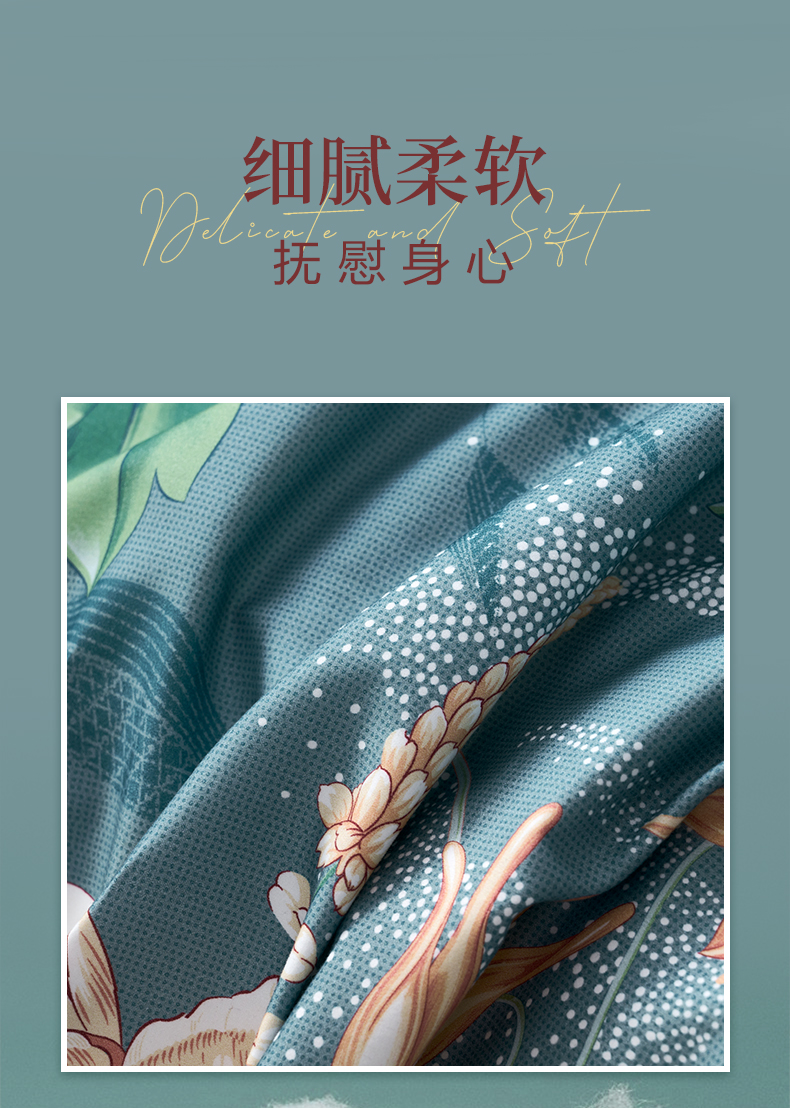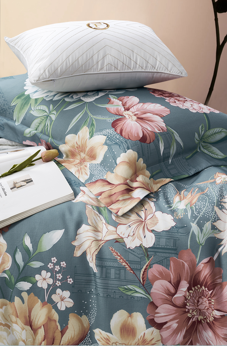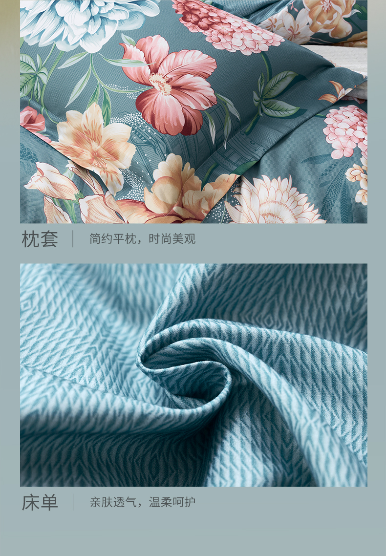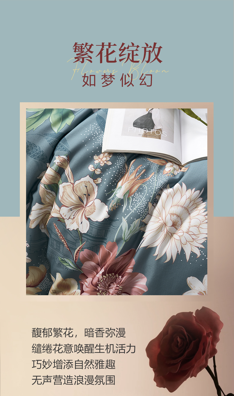 【6楼】富安娜聚温暖床单四件\花悦蜜语,蓝,零售价2380/2580元