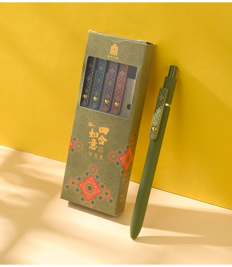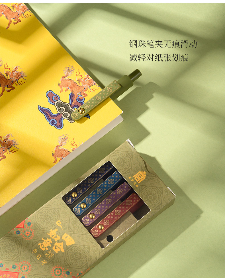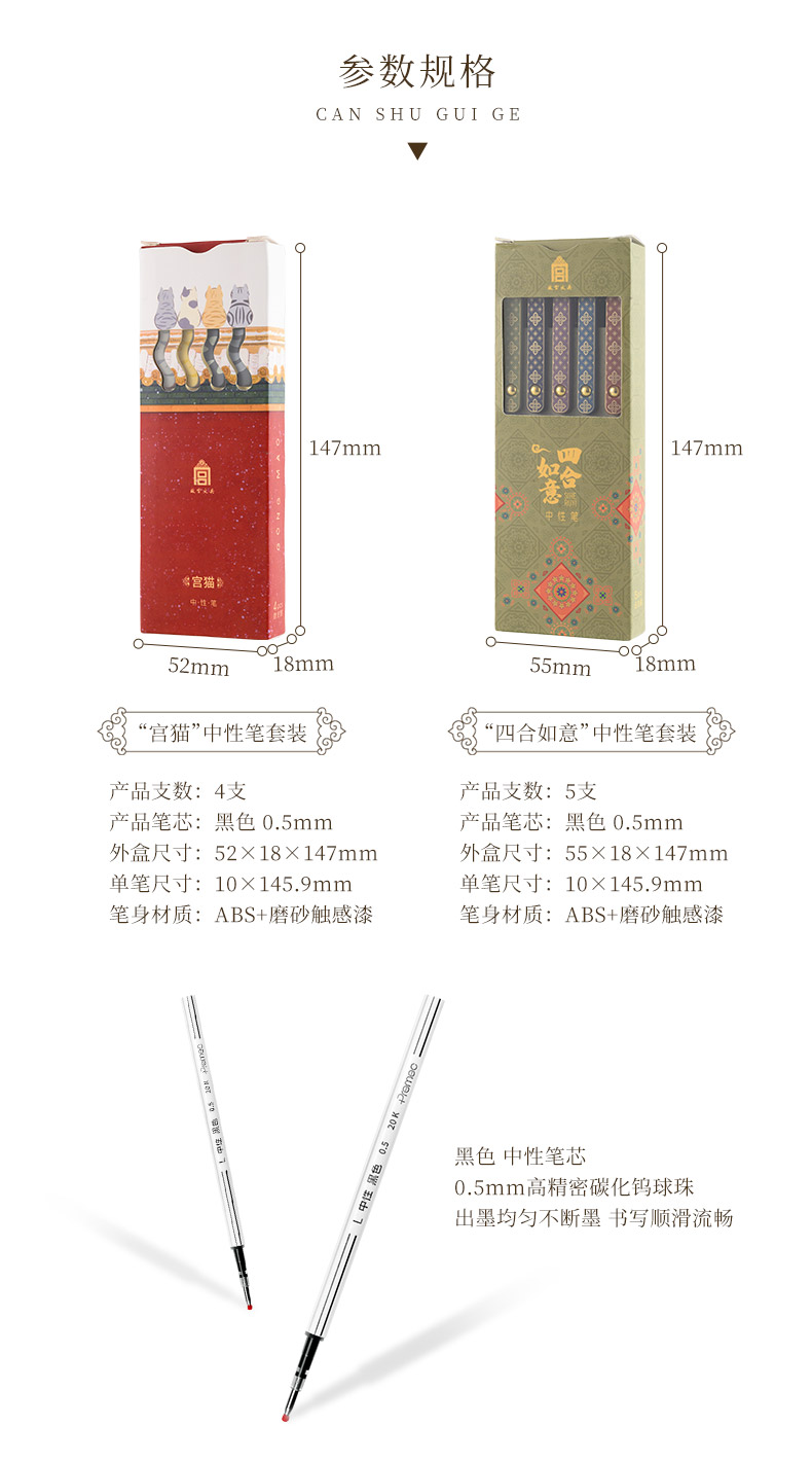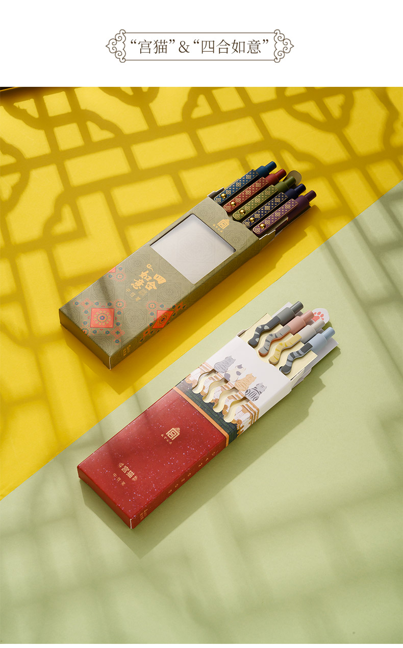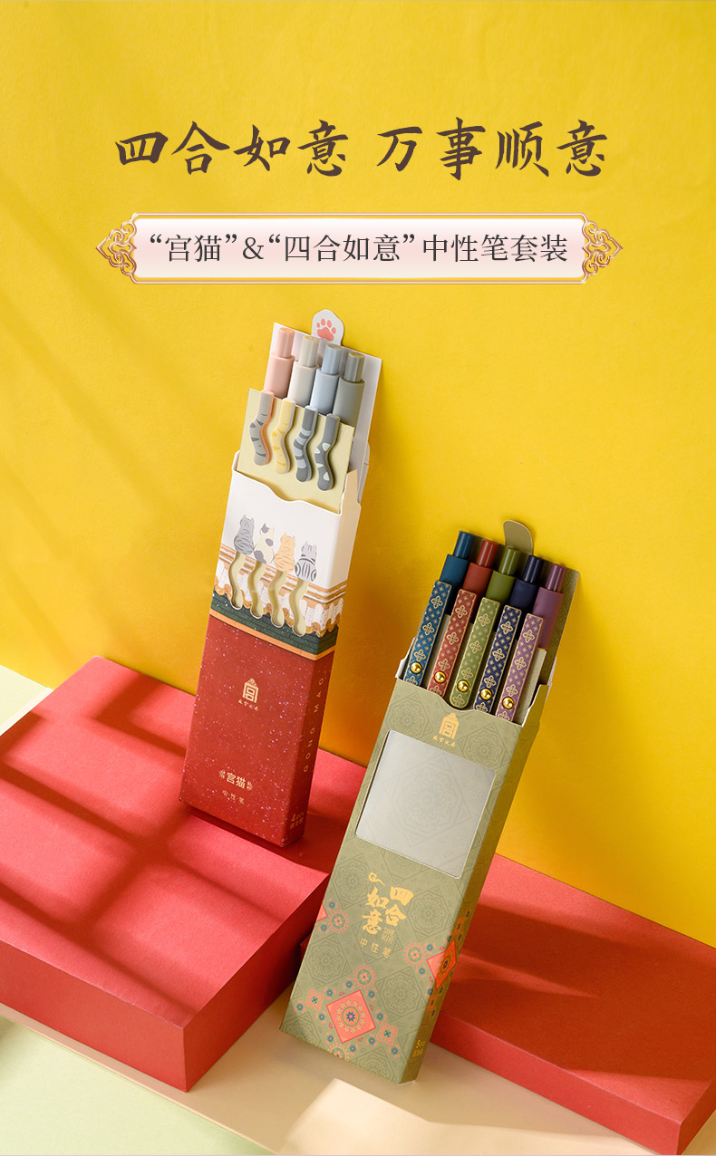 故宫文具宫猫四合如意中性笔学生办公考试书写专用子弹头圆珠笔国潮创意书写直排式速干
