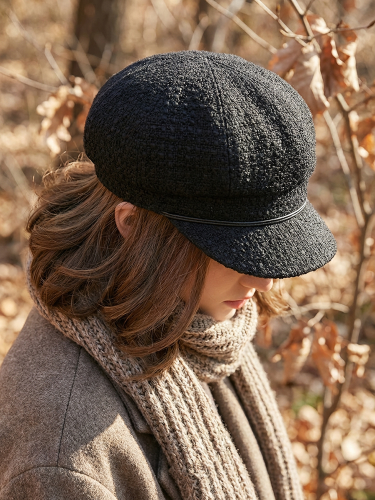 北京仓|CA4LA-DIDO T-粗花呢 报童帽(黑色)[日本设计师]